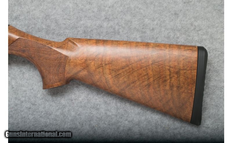 Description: Unfired in box! SOLD Caliber Info: 12 gauge Chambers: 3 Metal Condition: Excellent Wood Condition: Excellent Bore Condition: Clean and bright Barrels: 26 Triggers: Smooth; gold plated Stock: Checkered walnut with pistol grip Stock Dimensions: LOP - 14 3/8 inches Fore End: Checkered walnut Butt Pad: Black rubber pad Weight: 6 lbs. 2 oz. Sights: Fiber-optic front; silver mid bead Chokes: Choke tubes Extras: Hard case; box; (3) chokes and all accessories. Item Location: Sun Prairie, WI |