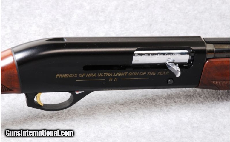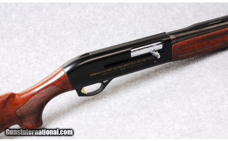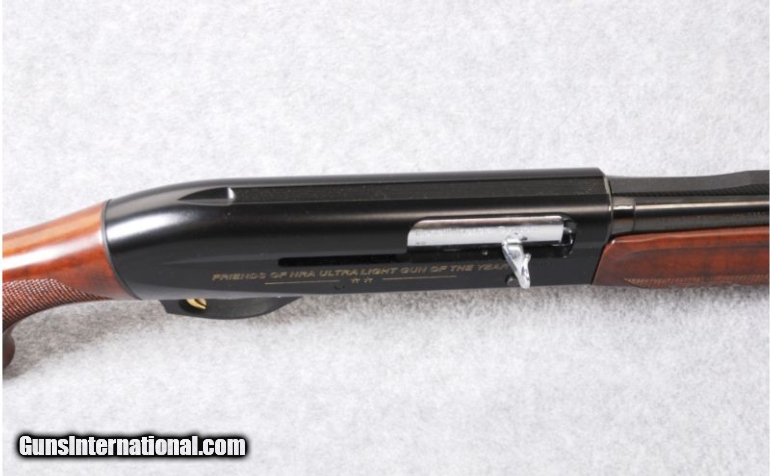 Description: SOLD Caliber Info: 12 gauge. Chambers: 3" chambers. Metal Condition: Blue-black receiver with "Friends of the NRA Ultra-light Gun of the Year". Bore Condition: Excellent. Barrels: Blue-black barrel with a graphite vent rib. Triggers: Gold. Stock: Imitation walnut with a checkered pistol grip. Stock Dimensions: LOP: 14 1/2", DAC: 1 1/2", DAH: 2 1/8". Fore End: Checkered fore end with finger grooves. Butt Pad: Soft rubber recoil pad. Weight: 6 lbs 3 oz. Sights: Red fiber optic front sight and metal center bead. Chokes: Screw-ins. Extras: Comes with a Benelli case with accessories. Item Location: Kansas City, KS |