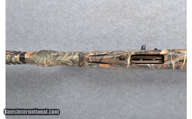Description: Entire gun is in AVANTAGE MAX-4 HD Camo. SOLD Caliber Info: 12 GA Chambers: 2 3/4 inch and 3 inch. Metal Condition: Very good. A few small spots of camo gone. Bore Condition: Very clean, bright and shiny. Barrels: 27.5 inches with a ventilated rib in camo. Stock: Textured polymer pistol grip in camo. Black rubber comb. Stock Dimensions: LOP 14 1/8 inches. Fore End: Textured polymer in camo. Butt Pad: Black rubber pad. Weight: 7 lbs. 0 oz. Sights: Red high visibility front. Metal middle bead. Chokes: Tubes. Item Location: Richfield, WI |