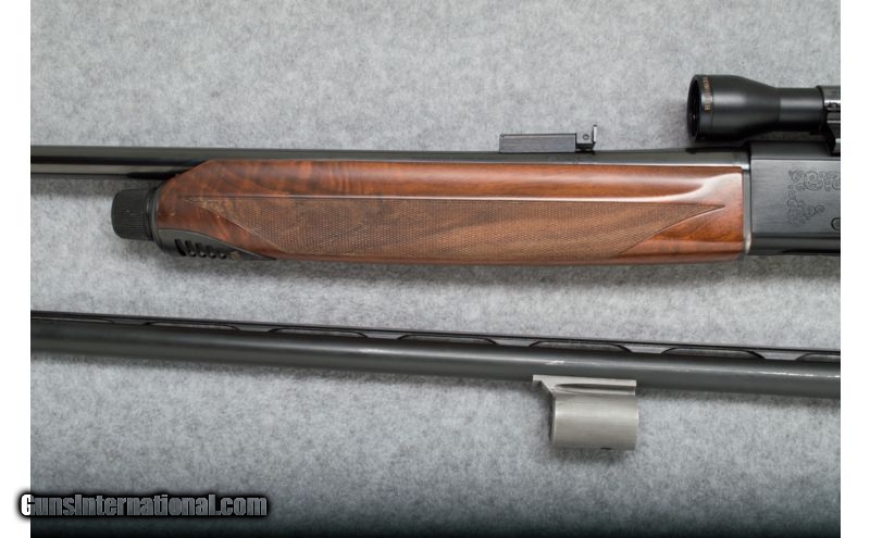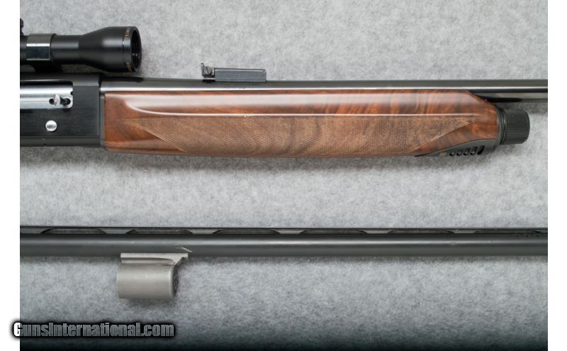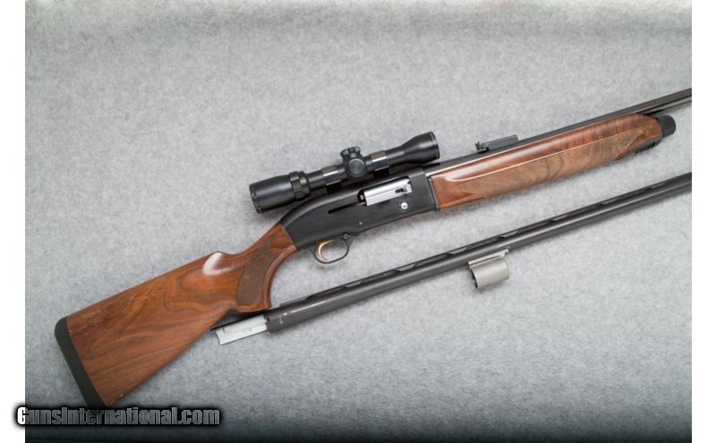 Description: SOLD Caliber Info: 12 gauge Chambers: 3 Metal Condition: Very good; some blueing wear on vent rib barrel Wood Condition: Good; some scratches and handling marks Bore Condition: Clean and bright Barrels: (1) 24" Hastings rifled barrel; (1) 30" Vent rib barrel with chokes Triggers: Smooth; gold plated Stock: Checkered walnut with pistol grip Stock Dimensions: LOP - 14 5/8 inches Fore End: Checkered walnut Butt Pad: Black rubber pad Weight: 8 lbs. 4 oz. (with scope) Sights: Hastings barrel - fully adjustable; Vent rib barrel - White Bradley front Chokes: Choke tubes Extras: Bushnell Banner 1-4 x 32mm scope with mounts. (3) choke tubes with wrench. Item Location: Sun Prairie, WI |