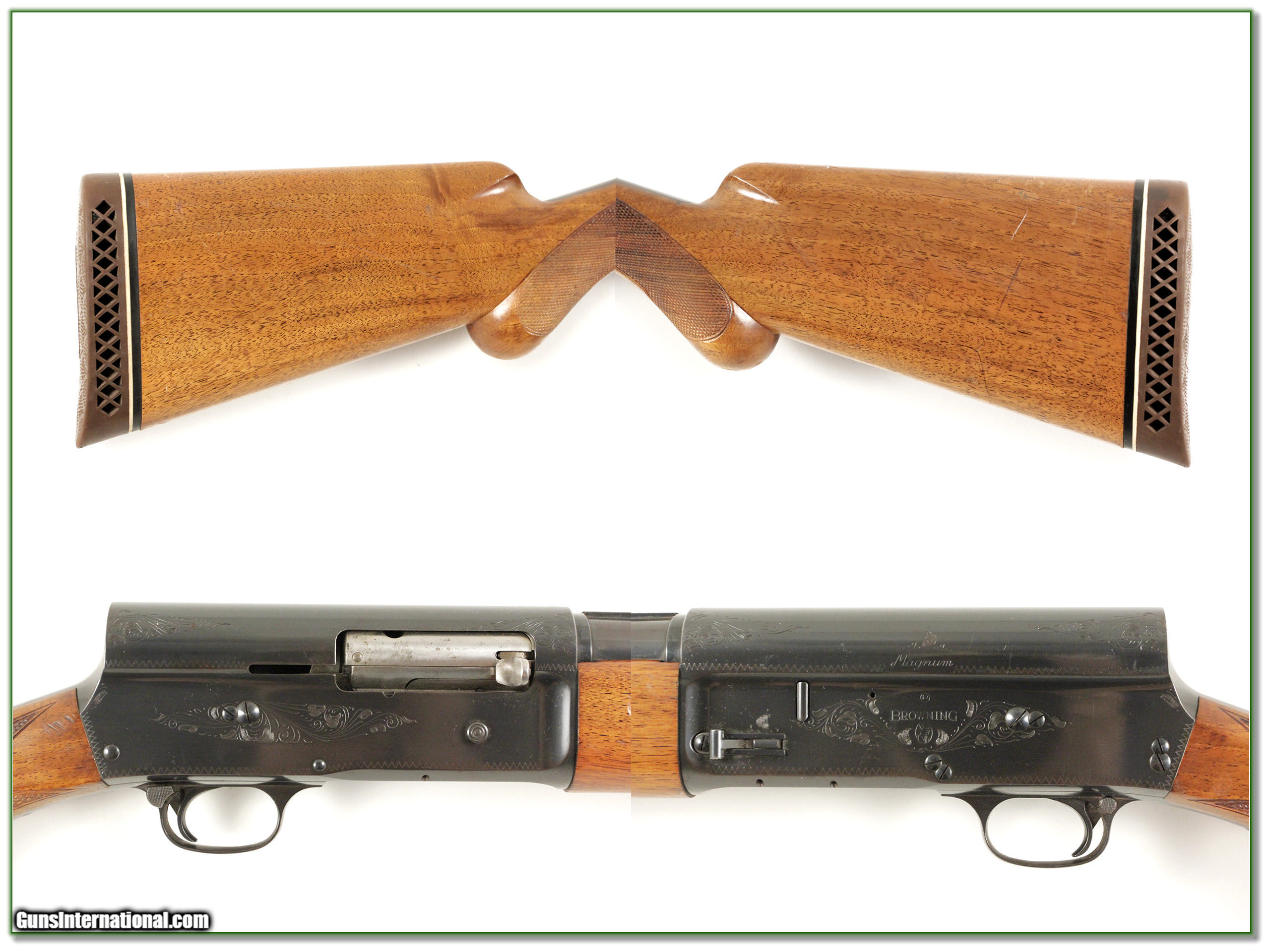 Description: This is a 1965 Belgium made Browning Magnum 12. It has a round knob with blond wood. The barrel is a 30in Vent Rib full. The blue is very nicewiht only light marks but no rear carry wear. The honey colored wood has marks from field use as seen and it will make a classic hunting gun. They just don’t make them like this anymore! Shipping and insurance is $35 or $15 more if you want it shipped in a new Plano hard case. Please email me with any questions or larger pictures. (Consign your quality firearms with Shooting Investments for only 10%! Let me know if you have any you would like to sell!) 17-0904 Payment: Payment is by Money Order, Cashiers Check or Personal Check. I can now also accept MasterCard and Visa with a 3% convenience fee. PayPal can be used for some items but never firearms. Please let us know if you would like to pay via PayPal. Shipping: The shipping charge will be listed in each description. It is $35 for most guns. Some heavy guns or those insured for over $2000 will be higher. Shipments to Alaska and Hawaii are higher because air shipment is required. Most firearms are shipped within 5 days of receipt of payment. We prefer shipping at the beginning of the week to avoid firearms in transit over weekends. We package all shipments carefully and insure them for the full purchase price, rounded up to the next $100. In the unlikely event that damage occurs, it is important that you save all packaging material for the claims process. Optics are shipped Priority Mail and most other non-firearm shipments are shipped First Class. Returns: Our return policy is simple. If for any reason you are not pleased with your purchase, you may return your item for a refund. The only exception is ammunition, it cannot be returned. It is important to us that you are happy. Guns cannot be fired or dissembled before returning them and must be returned in the same condition as received. Notification of a return must occur with-in 3 days of receipt at your dealer. Shipping, convenience and dealer fees are not refundable and are the responsibility of the buyer. Lay-a-way: If needed, we offer a 60 day lay-a-way option on most firearms. It is 1/3 now, 1/3 in 30 days and 1/3 in 60 days. Lay-a-way firearm sales are final. Consigning your firearms with Shooting Investments: We will help you get top dollar for your firearms. While most local guns shops charge 20% or more, our fee is only 10% with a minimum of $50. At your local gun shop it might take months to sell. Selling on-line provides instant access to thousands of interested buyers. You won’t find any other on-line dealer willing to sell your firearms for only 10% or listing every gun on 4 separate s. Selling through an House typically costs the seller 15% and the buyer an addition 15% (so 30%) and you have to wait several months to sell and longer to receive funds. If properly priced, we will sell your firearms in a week or two. Send us an email or give us a call and we’ll explain how easy it is for you to get top dollar. Trading: We collect guns and usually just trade for guns we want to add to our collections. We often sell guns for others wanting to purchase one of ours. We find this the most fair to both of us. Our Commission is only 10% and we hold the gun you want until yours sells. Please contact us if you want to sell one of yours to buy one of ours. Help for California Buyers: We are happy to ship to California. It is the buyer’s responsibility to make sure any item you buy is legal in your state. We are also happy to help with your purchase of a firearm from someone other than us. If you see a gun you would like to buy but the seller can’t or won’t ship to California we can help. You buy the gun and have it shipped to us. We’ll then ship it to your California dealer. The cost for this service is only $30 + shipping. Let me know if we can help! SOLD |