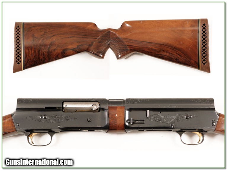 Description: This is an A5 Magnum 12 Gauge. It shoots both 3in and 2 3/4in shells. The wood has much better figure than most. The blue is excellent. The wood has some marks as seen. This is a quality made Japan A5 that you can use yet still expect to increase in value over time. That makes it a Shooting Investment. Shipping and insurance is $30 or $18 more if you want it shipped in a new Plano hard case. Please email me with any questions or larger pictures. (I now consign quality firearms only 10%! Let me know if you have any you would like to sell!) [14-0908] Terms & Conditions Payment: Payment is by Money Order, Cashiers Check or Personal Check. I can now also accept MasterCard and Visa with a 3% convenience fee. PayPal can be used for some items but never firearms. Please let us know if you would like to pay via PayPal. Shipping: The shipping charge will be listed in each description. It is $30 for most guns. Some heavy guns or those insured for over $2000 may be higher. Shipments to Alaska and Hawaii are higher because air shipment is required. Most firearms are shipped within 5 days of receipt of payment. We prefer shipping at the beginning of the week to avoid firearms in transit over weekends. We package all shipments carefully and insure them for the full purchase price, rounded up to the next $100. In the unlikely event that damage occurs, it is important that you save all packaging material for the claims process. Optics are shipped Priority Mail and most other non-firearm shipments are shipped First Class. Returns: Our return policy is simple. If for any reason you are not pleased with your purchase, you may return your item for a refund. The only exception is ammunition, it cannot be returned. It is important to us that you are happy. Guns cannot be fired or dissembled before returning them and must be returned in the same condition as received. Notification of a return must occur with-in 3 days of receipt at your dealer. Shipping, convenience and dealer fees are not refundable and are the responsibility of the buyer. Lay-a-way: If needed, we offer a 60 day lay-a-way option on most firearms. It is 1/3 now, 1/3 in 30 days and 1/3 in 60 days. Lay-a-way firearm sales are final. Consigning your firearms with Shooting Investments: We will help you get top dollar for your firearms. While most local guns shops charge 20% or more, our fee is only 10% with a minimum of $50. At your local gun shop it might take months to sell. Selling on-line provides instant access to thousands of interested buyers. You won’t find any other on-line dealer willing to sell your firearms for only 10% or listing every gun on 4 separate s. Selling through an House typically costs 15% and you have to wait several months to sell and longer to receive funds. If properly priced, we will sell your firearms in a week or two. Send us an email or give us a call and we’ll explain how easy it is for you to get top dollar. Trading: We collect guns and usually just trade for guns we want to add to our collections. We often sell guns for others wanting to purchase one of ours. We find this the most fair to both of us. Our Commission is only 10% and we hold the gun you want until yours sells. Please contact us if you want to sell one of yours to buy one of ours. Help for California Buyers: We are happy to ship to California. It is the buyer’s responsibility to make sure any item you buy is legal in your state. We are also happy to help with your purchase of a firearm from someone other than us. If you see a gun you would like to buy but the seller can’t or won’t ship to California we can help. You buy the gun and have it shipped to us. We’ll then ship it to your California dealer. The cost for this service is only $30 + shipping. Let me know if we can help! SOLD |
