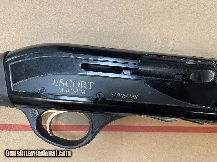 Description: Guns Listing ID: 914339 LSI Escort Supreme Magnum, Semi-Automatic, 20 Gauge, 26\" Barrel, 4+1 Rounds -Firearm in good condition -Has light usage marks -Comes with original box Escort Supreme Magnum Turkish Walnut 12 Gauge 3in Semi-Auto Shotgun - 26in -The Escort Supreme semi-auto is a lightweight shotgun ideally suited to upland game or clay bird shooting. This shotgun features Escort‚‚s FAST loading system as well as the SMART valve system that cycles all types of rounds from heavy 3in magnum loads. An aluminum alloy receiver cuts the carry weight and is milled with a 3/8in dovetail for accessory sights. It has a Turkish walnut stock and forend with sling swivel studs and two adjustment shims for the perfect fit. Escort Supreme Magnum comes with five standard choke tubes in F, M, IM, IC and SK constrictions and the chrome-moly barrel is proofed for steel shot. Chambered in 3in magnum Chrome-moly lined barrel, proofed for steel shot Fiber-optic sight Raised, ventilated rib 3/8in dovetail accessory rail on top of reciever Premium glossy Turkish walnut stock w/ two adjustment shims SMART valve self-regulating gas piston FAST loading system SKU: 682146301533 UPC: BRAND: Escort Shotguns Manufacturer Number: HAS20A02600 Caliber: 20 Gauge Model: Escort Supreme Magnum Unit of Measure: Each Classification: Firear SOLD Manufacturer: ESCORT Model: SUPREME MAGNUM Condition: Used - Non-Certified Barrels: 26 BARREL Gauge Info: 20 GA |
