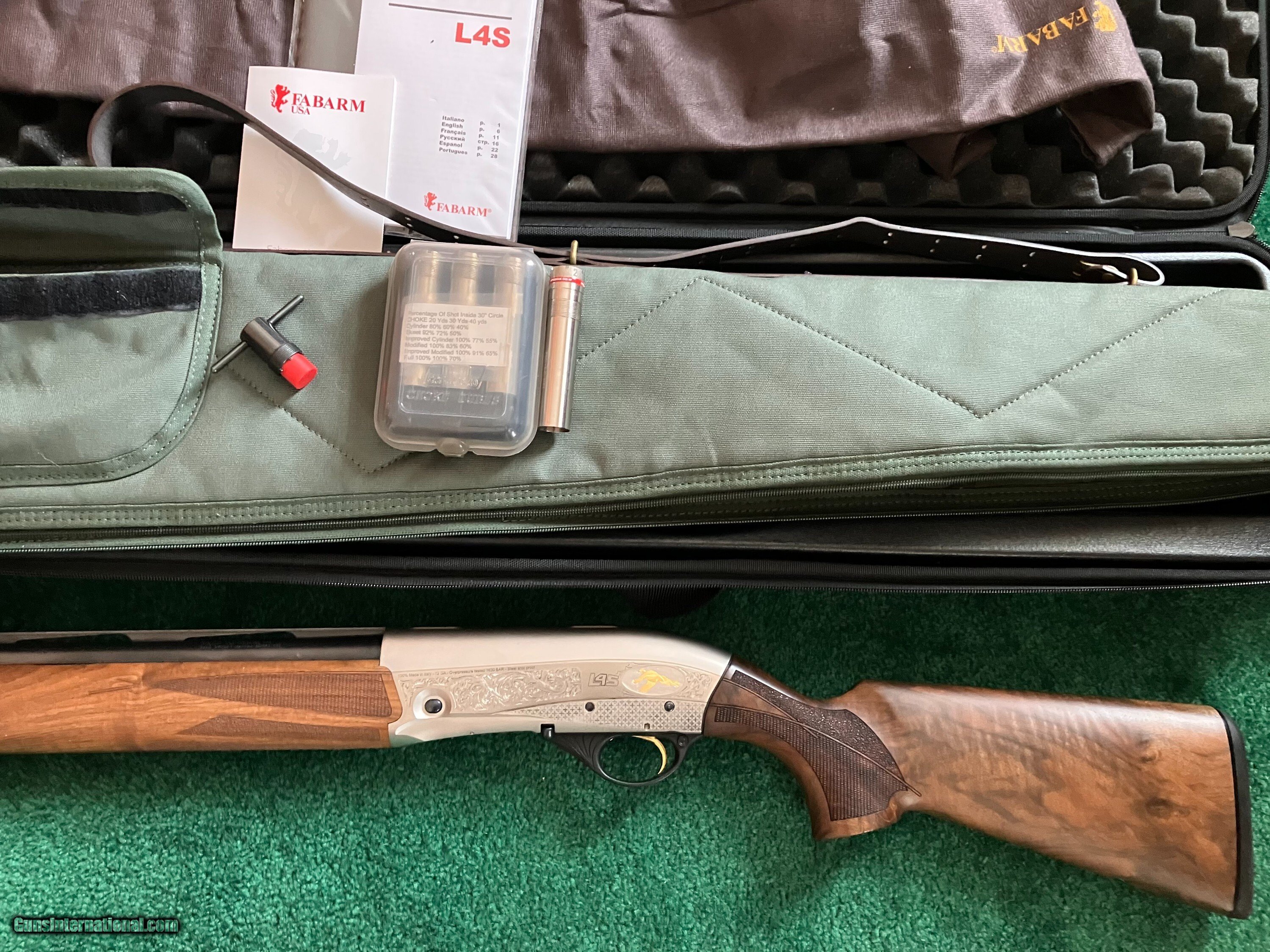 Description: Fabarm Deluxe Hunter 12 Gauge, pulse piston gas operated, 28 ' Tribore Barrel Bores enhance performance while reducing recoil, Barrel proof tested 1630 BAR, 3 inner inner choke tubes std. Pulse Piston allows hunter to use target loads and 3" Magnum loads interchangeably. Grade 2 Turkish Walnut on stock and forend. I will include 2 -EXIS choke tubes imp.cyl. and mod..which I purchased, also will include The Bob Allen olive shotgun case that Ipurchased as shown in picture. The standard case comes with original manuals, 3 standard choke tubes and choke tube tool as shown in picture..The shotgun has seen very limited light use 3 boxes of shells put through at the skeet trap range. Shotgun Gauge: 12 Gauge Manufacturer: Fabarm Model: Deluxe Hunter Gold Engravings Serial Number: FA041534 Barrel Length: 28 Chambers: 3 Condition: Pristine Like New Metal Condition: Like New Wood Condition: Like New Bore Condition: Like New Barrels: Chrome Lined barrel Bores Barrel Type: Tribor Action: Automatic Stock: Like New Rib: Features a Tapered Flat Rib Finish: Mat Finish Weight: 6 lbs. 5 oz. Chokes: 3 included from Mg. 2 Exis additional Case: Bob Allen included Price: $2,995.00 Shipping: $150.00 Contact Seller |