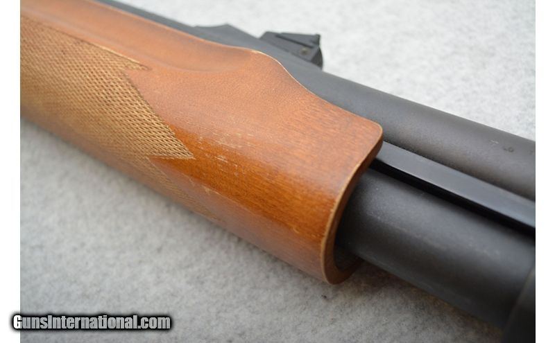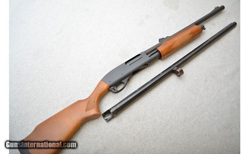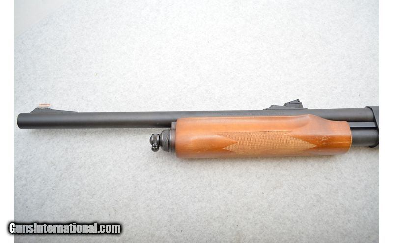 Description: Good shape overall but certainly well-used. While the metal has a few handling marks, the brunt of the damage is found on the furniture. Some of the edges have thinned finish and there are a few scratches on both the pump handle and the stock. 12 Gauge SOLD Chambers: Pump action fed from a tubular magazine chambering up to 3" shells. Metal Condition: Good. Wood Condition: Good. Bore Condition: Bores of both barrels are in excellent condition. Barrels: Comes with a 20" slug barrel and a 28" shot barrel. Triggers: Narrow blued metal with smooth surface. Stock Dimensions: Checkered hardwood with 14" LOP. Fore End: Hardwood with checkered bottom panel. Butt Pad: Remington branded black rubber pad. Weight: 7lbs 4oz Sights: Red front bead and green 2-dot adjustable rear iron sights. Chokes: Shot barrel has a fixed modified choke. Item Location: Green Bay |