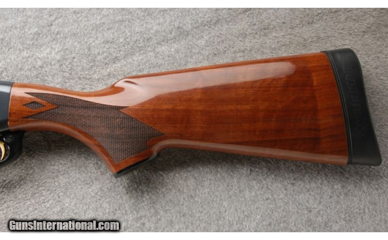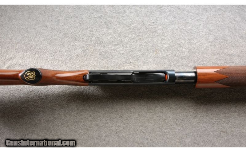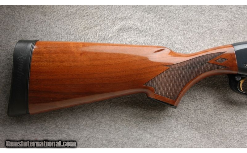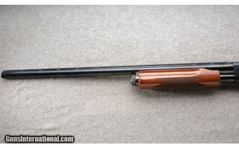 Description: This is a very nice and close to new Remington 870 Wingmaster 12 gauge shotgun. The blue steel is like new with some wear on the mag tube. The walnut stock may have a ding or two if you look long enough. SOLD Caliber Info: 12 Gauge. Chambers: 2 3/4 and 3 inch pump action. Metal Condition: Excellent. Wood Condition: Excellent. Bore Condition: Excellent. Barrels: 28 inch blue with a vent rib. Triggers: Single gold color. Stock: Nice walnut with some figure and nice color contrast along with a checkered pistol grip. Stock Dimensions: 14 Inch LOP. Fore End: Matching checkered walnut with finger rooves. Butt Pad: Remington soft rubber black pad. Weight: 7 Lbs 2 Oz. Sights: Mid and front beads on the vent rib. Chokes: Screw in, comes with a Full, Mod and IC. Extras: Comes with the extra chokes. Item Location: Owatonna, MN |