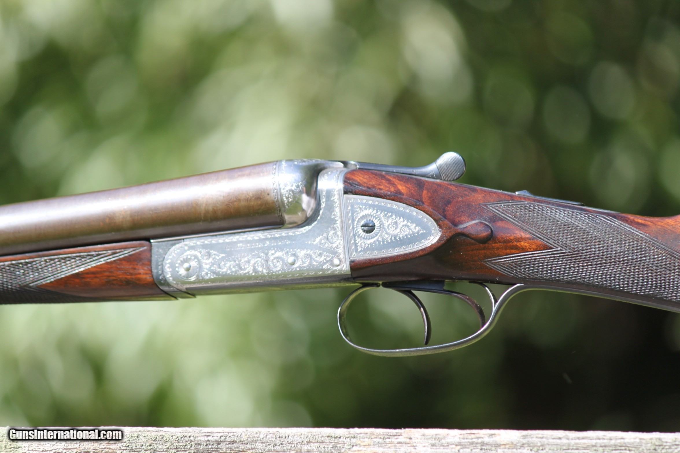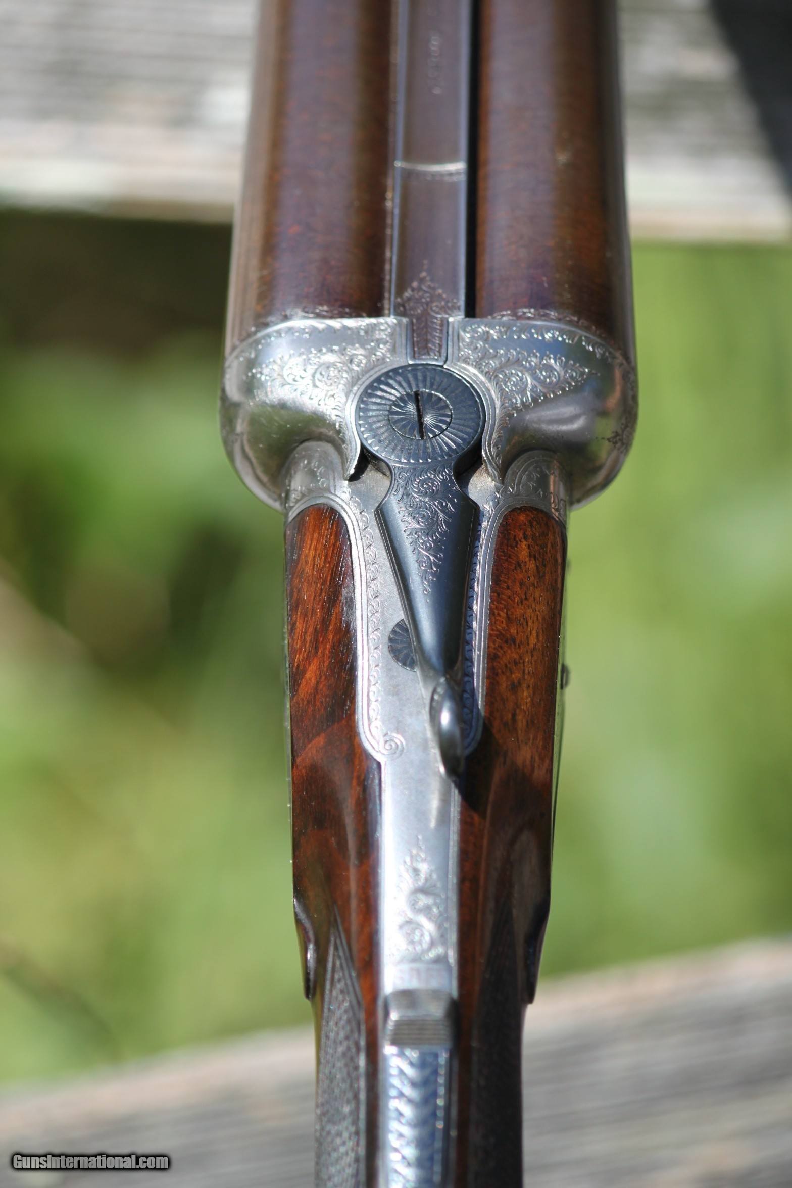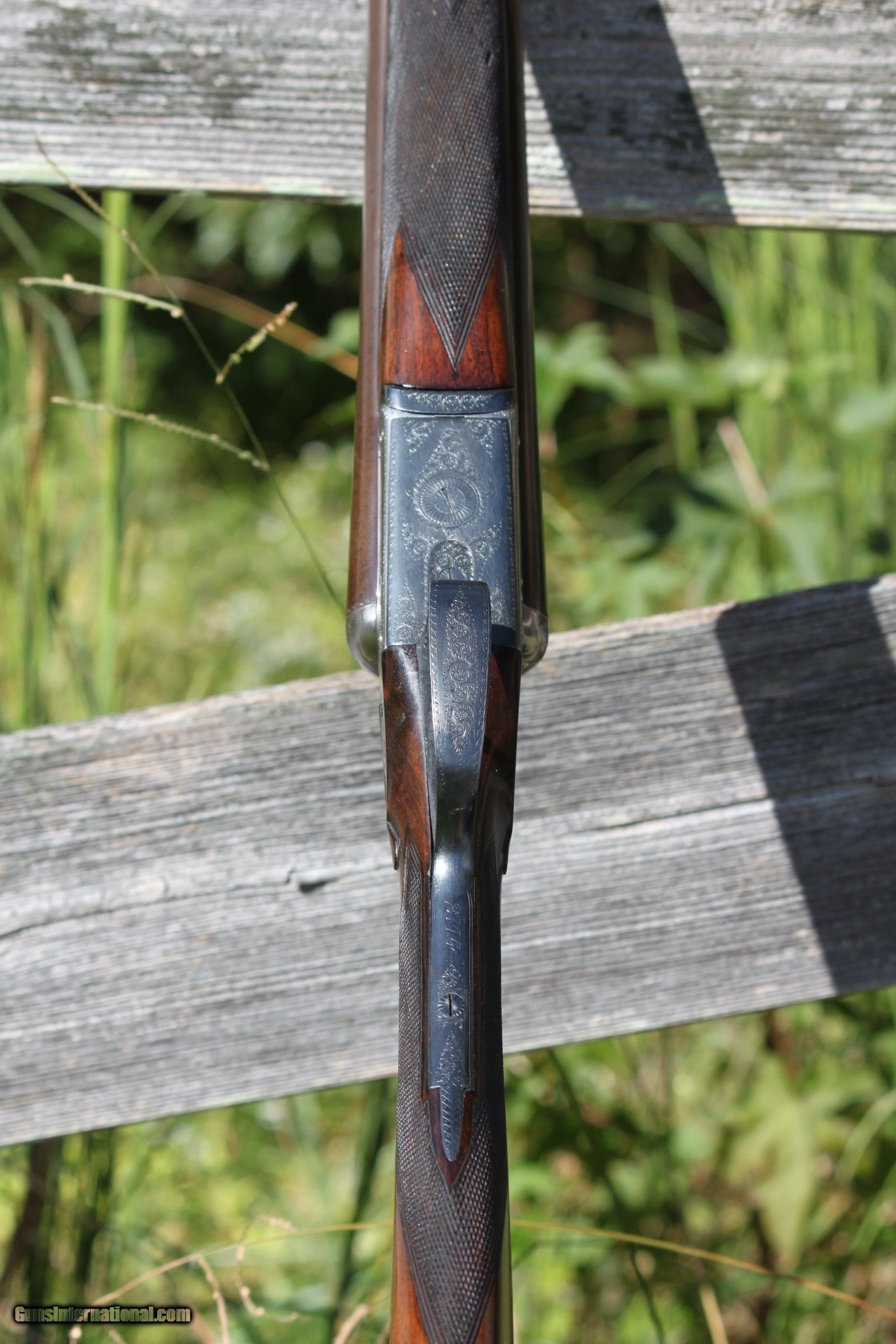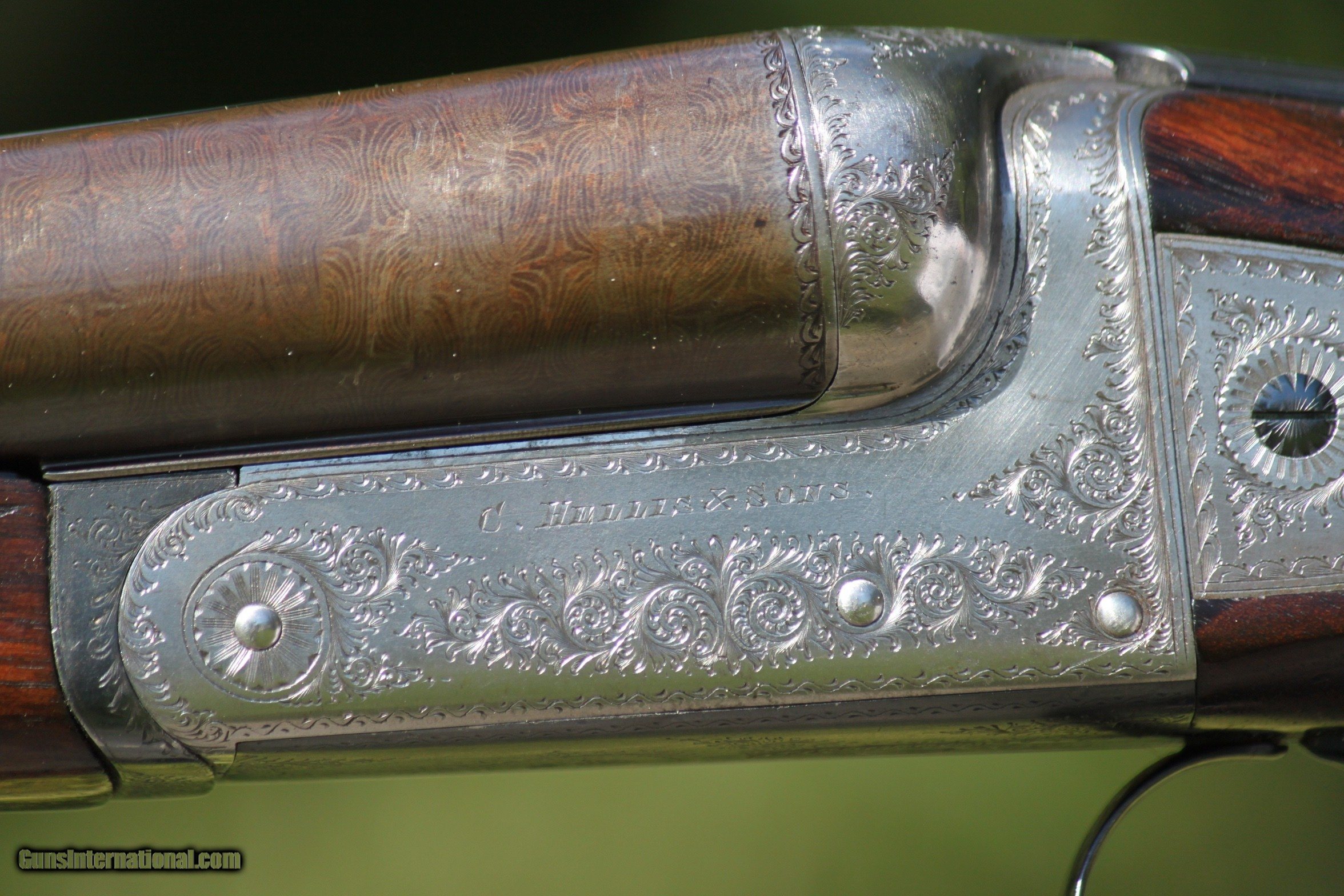 Description: For sale is an outstanding 12 Guage, Side by Side, Windsor Grade, excellent 28" damascus barreled, Sideplated, ejector shotgun. Serial number 2114, produced between 1910 and 1930. The damascus barrels have flawless mirror bores amd the damascus pattern is vivid. The A&D boxlock action is simple, ingenious and rugged. The hammer are cocked when the barrels are dropped and after firing, the ejecgtors throw the shells as new. While A&D boxlocks are simple, Hellis distinguished itself by elevating the design with finely engraved sideplates seamlessly inset into the wood behind the action. This makes the Windsor grade by Hellis boxlocks uniquely characteristic of the Hellis craftsmanship. The A&D boxlock action is simple, ingenious and rugged. The boxlock is seamlessly integrated into the wood finished in straight lines. The ejectors work flawlessly and eject hulls as it should. The hammers are cocked when the barrels are dropped. The Hellis is in excellent condition as the photos show and has been sparsely used. Rib reads "Charles Hellis and Sons 119 Edreware Road Hyde Park London". The furniture is Turkish walnut and Hellis used high-grade steel for the barrels. Either the collector or hunter will find this Hellis to be an eccellent addion to any collection. Charles Hellis was a London based gunmaker founded by Charles Edward Hellis in London in 1884. He trained his two sons and they became partners in the business. After their original startupin Pall Mall Hellis took up a shop near Hyde Park along Edgeware Road. Each firearm made was a reflection of the era it was created and offers insight into the evolution of gun craftsmanship over time. This can be apply to the side plated adjoining the boxlocks. The scrolling on the boxlocks and sideplates distinguiushed Hellis by elevating the design as rthe engrlling is seamlessly inset into the wood behind the boxlock action. The chambers are 2 3/4" however I have only used 2 1/2" low compression shells. This is not a gun that has been used for hunting, it has just been in my collection, and I am thinning out my collection as I am getting older. This is a fine English double for the collector or hunter that functions perfectly.. I have only used low compression shells when firing from RST or Armusa. If you should have any questions or require additional photos do not hesitate to emnail me at: rab41283gmail. Price includes shipping to your C&R FFL or Gunshop. $2100 REASONABLE offers will be considered. Ask any questions to: rab41283gmail Curio/Relic: Yes Shotgun Gauge: 12 Gauge Manufacturer: Charles Hellis & Sons Model: Side Plated Boxlock Serial Number: 1633 Barrel Length: 28 Bore Info: Mirror Chambers: 2 3/4" Mirror Ejectors: Yes, strong Condition: Excellent Metal Condition: Excellent Wood Condition: Excellent Bore Condition: Mirror Barrels: Damascus Barrel Type: Damascus Action: Boxlock Triggers: Double Stock: Excellent Stock Dimensions: 15"L, 4 3/4" Heel Stock Drop: 2 1/4 Stock Comb: 1 3/4 Stock Heel: 2 1/2 Stock Cast: none Fore End: Bead Butt Pad: None LOP: 13 3/4 Front 13 Rear Rib: Standard Finish: Damascus Weight: 6lb. 6oz. Sights: Front Bead Manufacture Date: 1910-1920 Choke Left: Mod. Choke Right: Cyl. Engraving: Locks,Plates,Trigger Grd. Item Location: Cambridge, MD Proof:Nitro: Yes Grips: Pistol Optic: Bead Sight Price: $2,100.00 Buy Now Contact Seller |