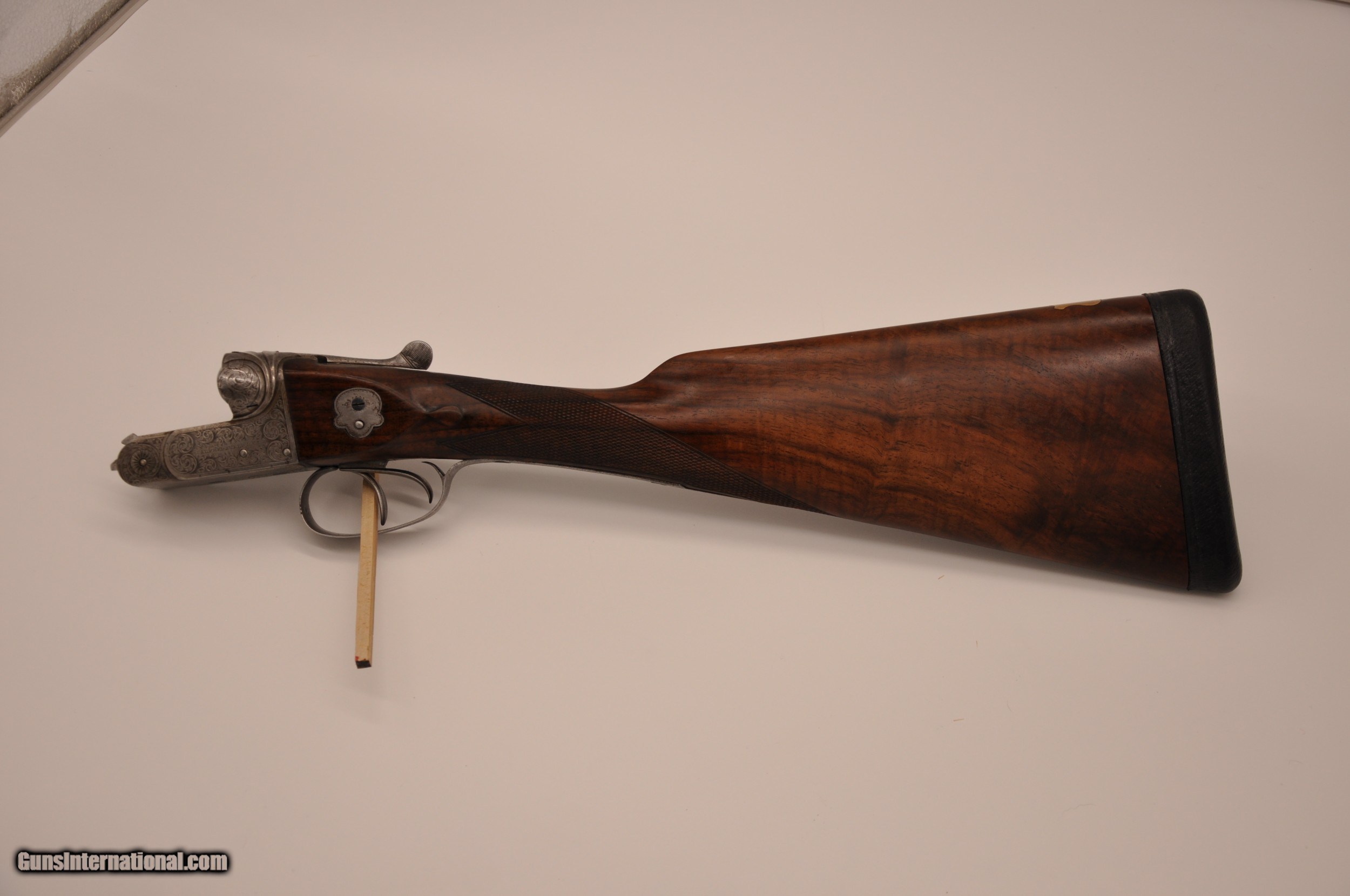 Description: Alfred Field 12ga Boxlock Ejector Crown Grade. Serial no. 4690 Circa 1892 SOLD pending funds 1/24/22 Built to what was likely Waterfowl specifications with stout action dimensions, 3" chambers proved for 1 1/2oz loads, raised file cut rib on 27 1/2" bbls, side clips and multiple bites, A bit unique in that most fowlers lacked extensive engraving yet this one is near full coverage and bears a gold crown on the top lever. A bit of a mystery but it presents and shoots beautifully. While not marked as such, this gun was undoubtedly made for resale and the action closely mimics Greener's design sans an identical cross bolt. This would make a wonderful clay target gun along with nearly all bird hunting endeavors. Barrels both measure .785 in both, choked R .017 (light modified) L .023 (improved modified) Minimum wall R .032 L .025 Stock dimensions are 15" to the center of a leather recoil pad. 1 1/2" drop at comb and 2 1/4" at heel. Cast-off 1/8" for a right handed shooter. Overall weight 7lbs, 6oz. $2395 (subject to local sale and removal 1/25/22) SOLD Curio/Relic: Yes Antique: Yes Shotgun Gauge: 12 Gauge Manufacturer: Alfred Field Model: Waterfowl Serial Number: 4690 Barrel Length: 27 1/2 Ejectors: Yes Barrels: Fluid steel Triggers: Double |