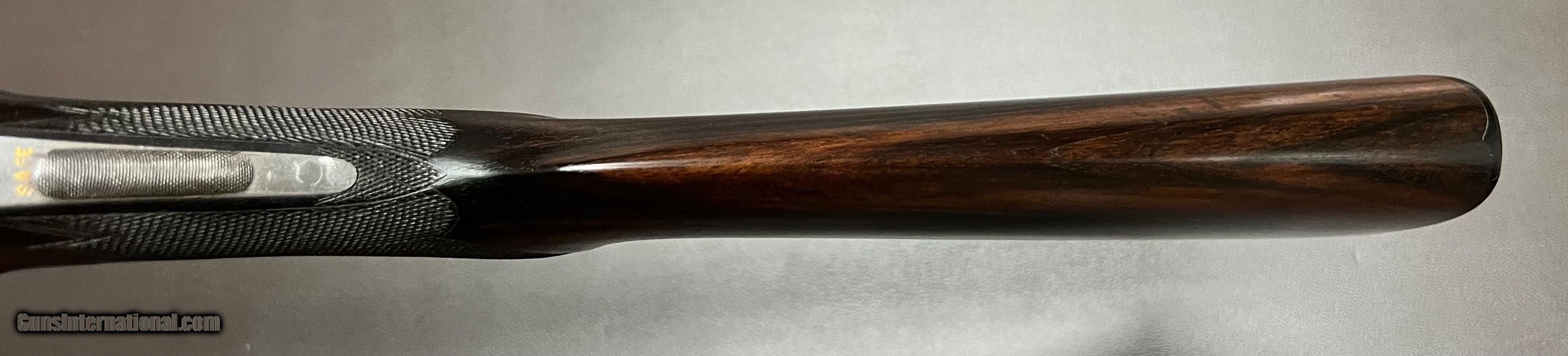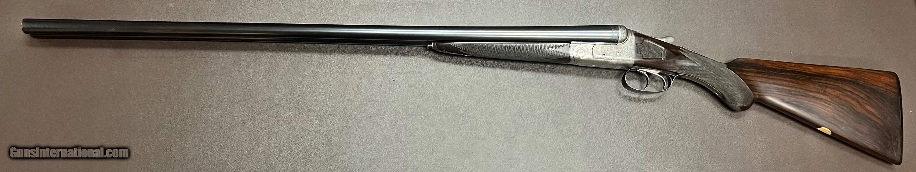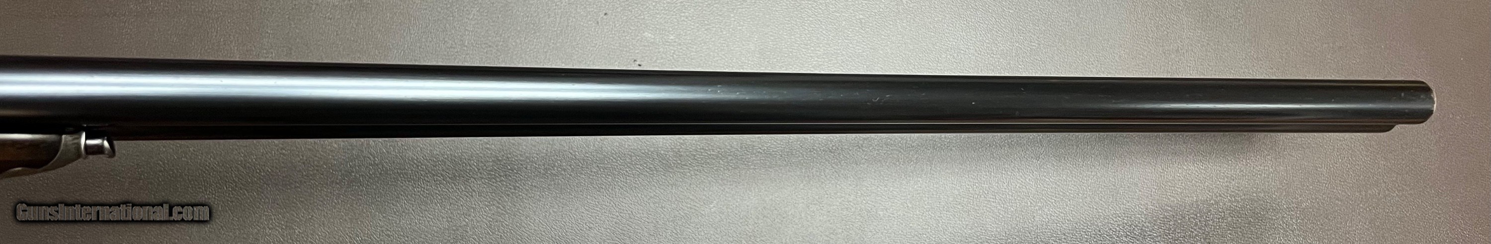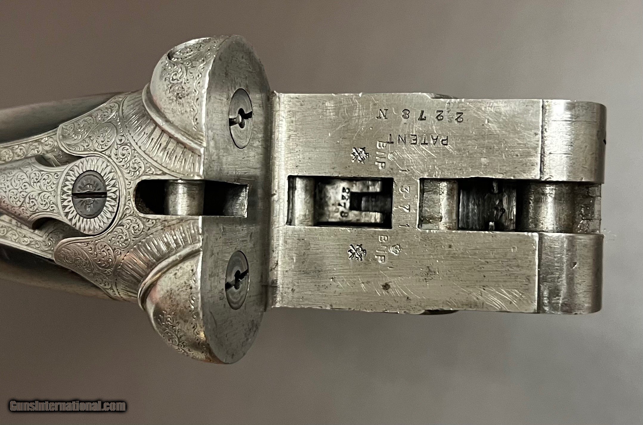 Description: C.G. Bonehill "patent clip lump" 16GA best boxlock ejector 30" ejector (Three Bell Steel) flat hand filed rib barrels with single front bead 2 1/2" nitro proof Chokes: .008/.025 IC/IM Bore measurements: .671/.674 Proofed at .669/.669 well within proof specs Minimum wall thickness R:0.026 L:0.027 Lockup is tight, no movement with forend removed Bores are bright & clean Disc set strikers Ejectors are well timed Crisp trigger pulls Figured Prince of wales stock with splinter forend LOP 14" over Bonehill trademark horn buttplate DAC 1 5/8 DAH 2 3/8 Cast off 3/8" at heel 6lbs 11oz balance point 1" in front of the hinge pin Built in 1897 Fine condition Bonehill "patent clip lump" best boxlock ejector 16ga. Nicely shaped rounded bar action with full coverage rose & scroll engraving and beaded fences, wood is in excellent condition with deluxe checkering & horn inlays behind checkered panels. Heavier set of barrels with really nice tapered hand filed pigeon type rib, barrels do have light handling marks. Classic long barreled 16ga English double that is perfectly setup for game or clays. This gun is an Antique and can be shipped directly. Antique: Yes Shotgun Gauge: 16 Gauge Price: $2,750.00 Buy Now Contact Seller |