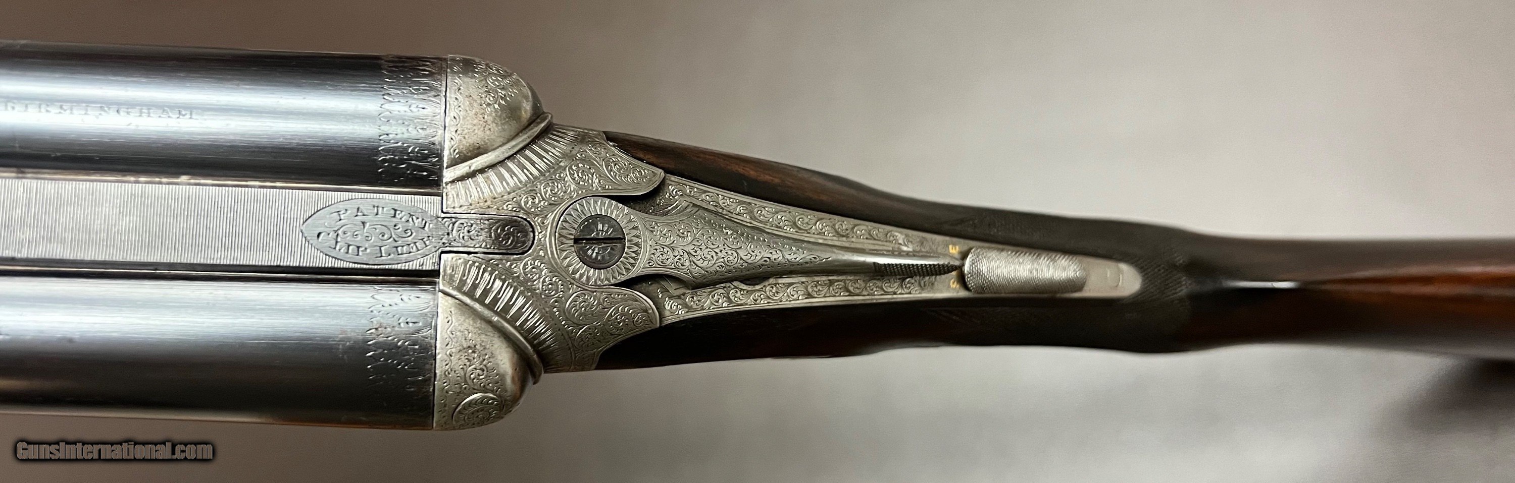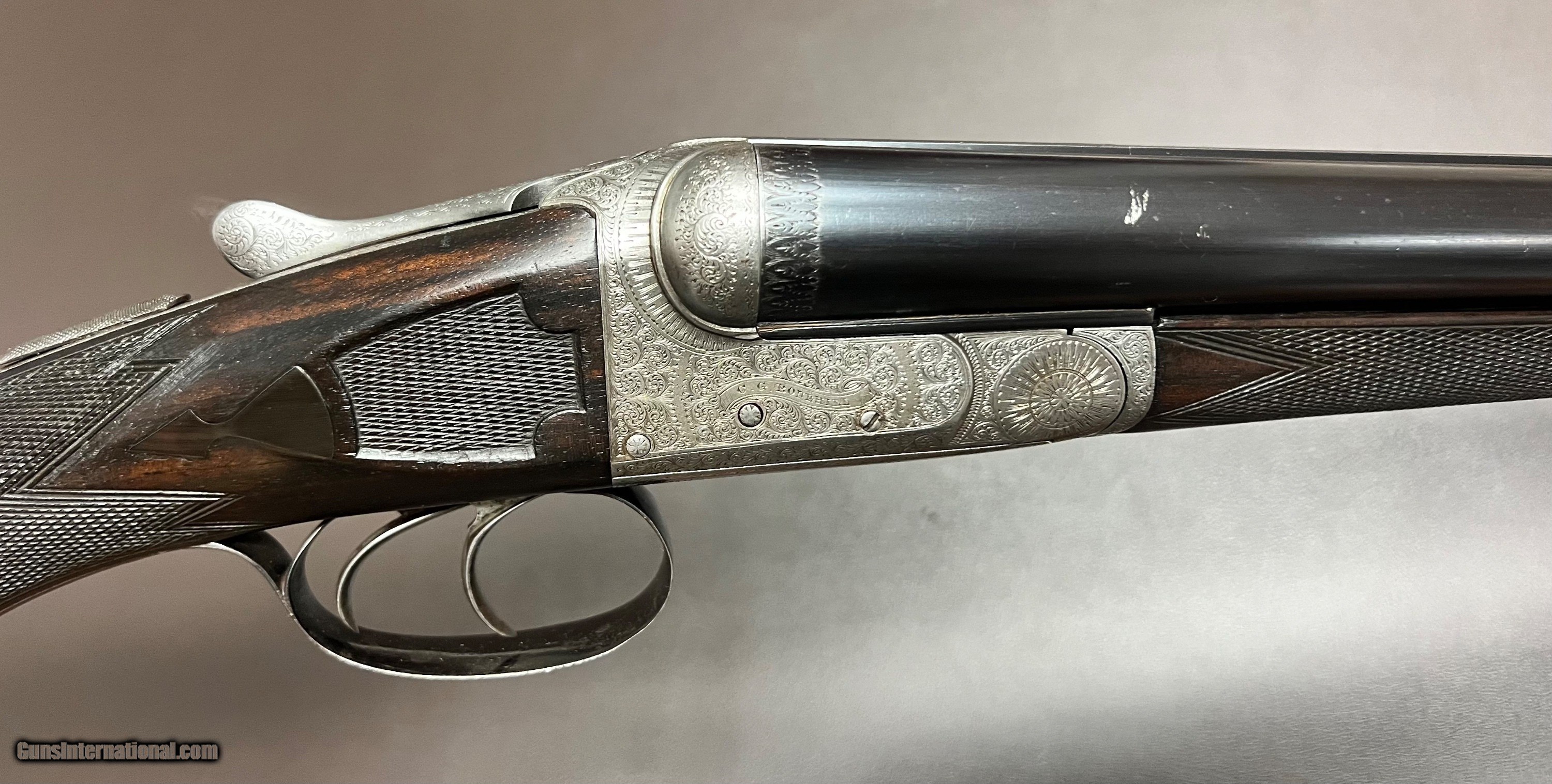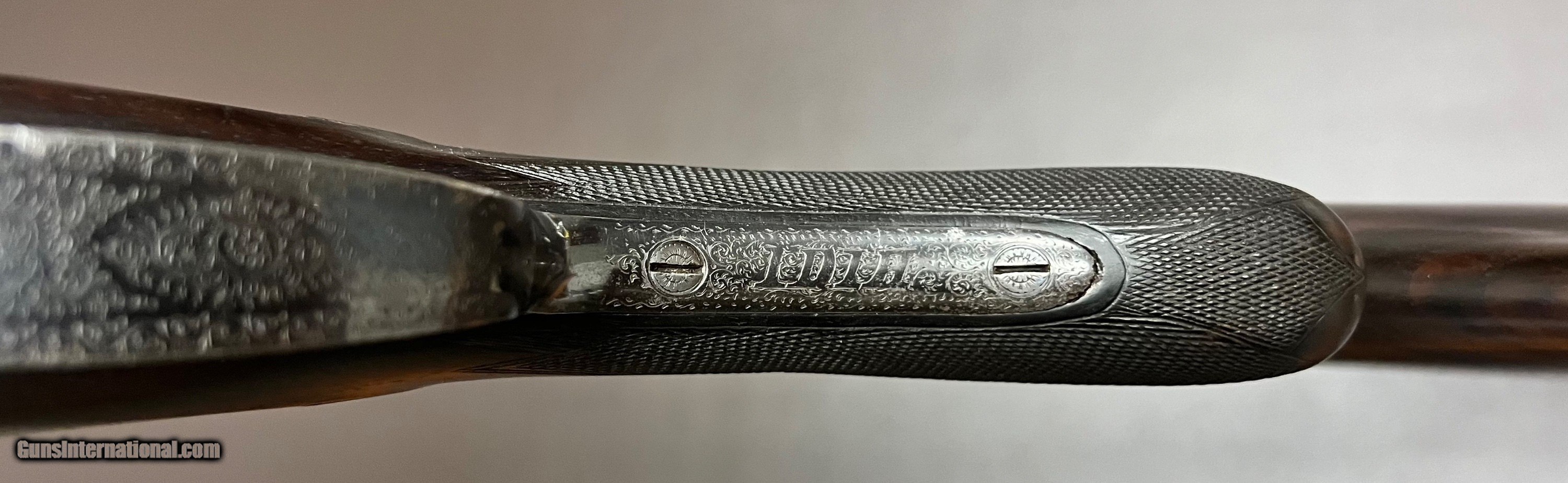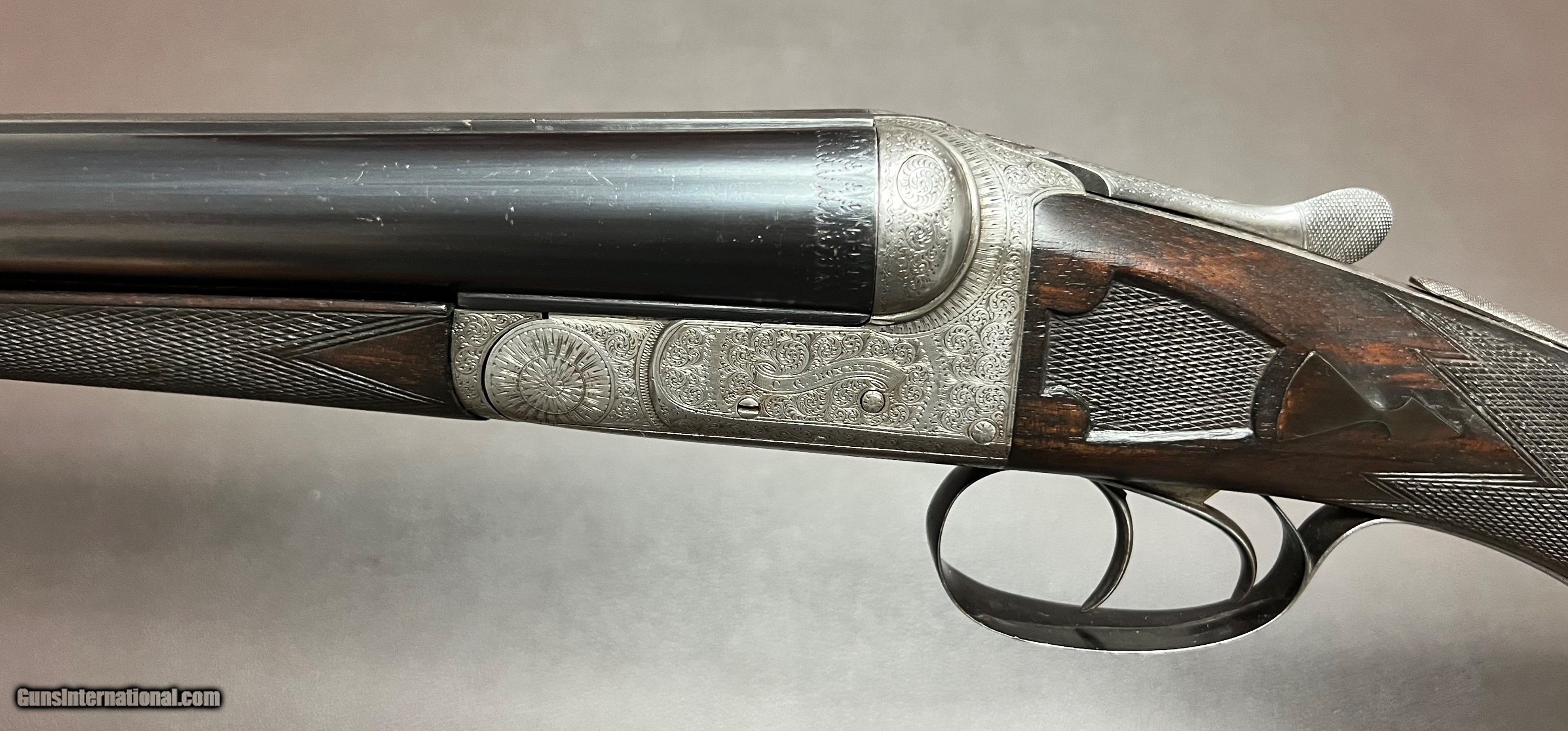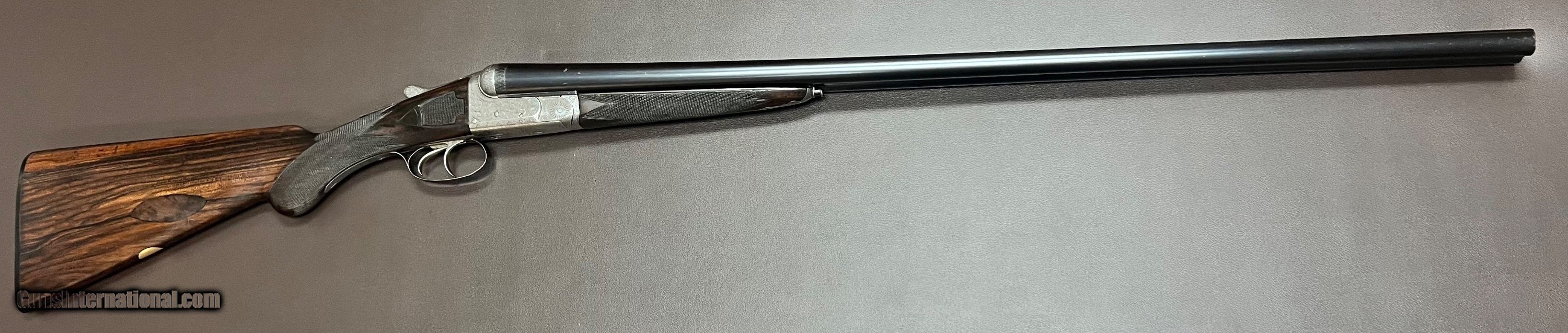 Description: C.G. Bonehill "patent clip lump" 16GA best boxlock ejector 30" ejector (Three Bell Steel) flat hand filed rib barrels with single front bead 2 1/2" nitro proof Chokes: .008/.025 IC/IM Bore measurements: .671/.674 Proofed at .669/.669 well within proof specs Minimum wall thickness R:0.026 L:0.027 Lockup is tight, no movement with forend removed Bores are bright & clean Disc set strikers Ejectors are well timed Crisp trigger pulls Figured Prince of wales stock with splinter forend LOP 14" over Bonehill trademark horn buttplate DAC 1 5/8 DAH 2 3/8 Cast off 3/8" at heel 6lbs 11oz balance point 1" in front of the hinge pin Built in 1897 Fine condition Bonehill "patent clip lump" best boxlock ejector 16ga. Nicely shaped rounded bar action with full coverage rose & scroll engraving and beaded fences, wood is in excellent condition with deluxe checkering & horn inlays behind checkered panels. Heavier set of barrels with really nice tapered hand filed pigeon type rib, barrels do have light handling marks. Classic long barreled 16ga English double that is perfectly setup for game or clays. This gun is an Antique and can be shipped directly. Antique: Yes Shotgun Gauge: 16 Gauge Price: $2,750.00 Buy Now Contact Seller |