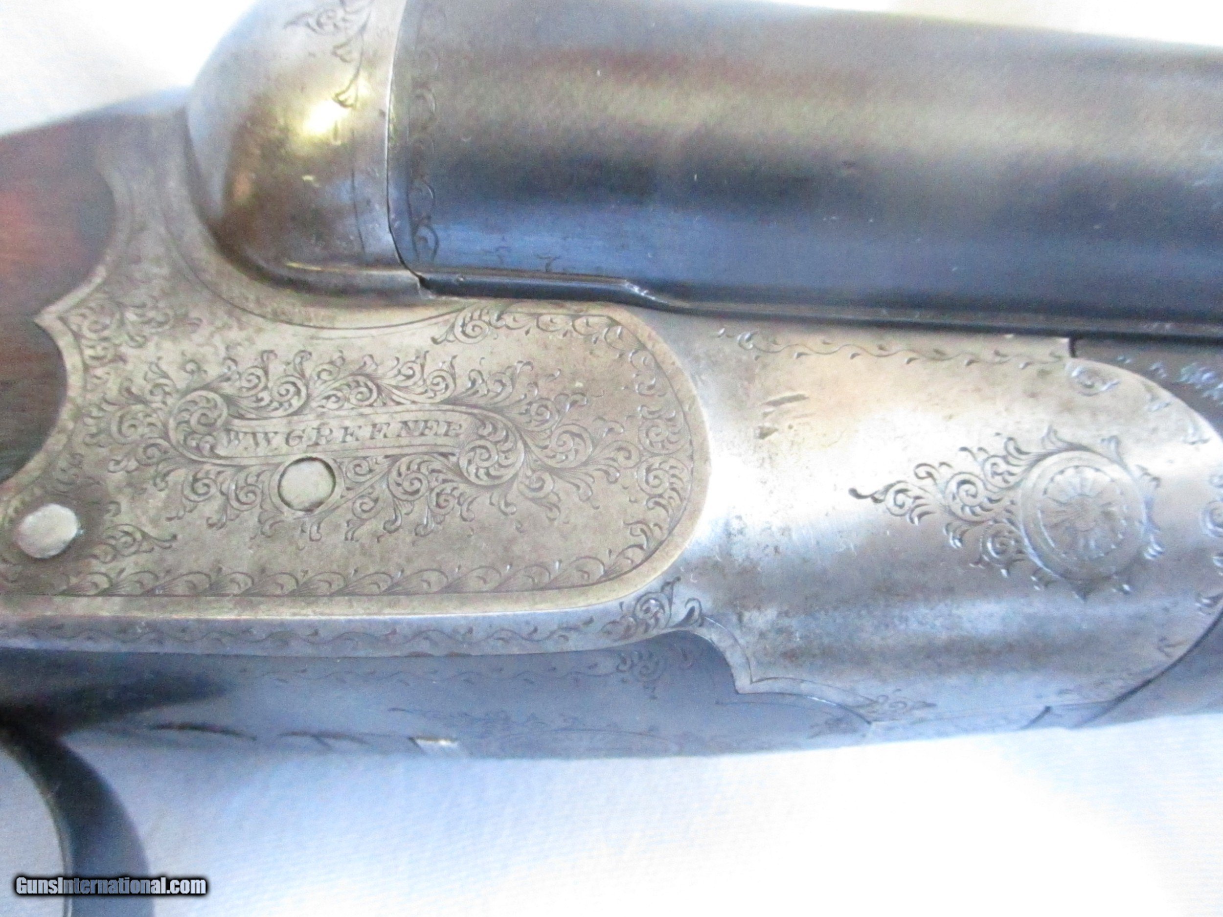 Description: Fine W. W. GREENER, Model Facile Princeps, Grade G, double barrel side-by-side 12 gauge / 2 1/2" shotgun with ejectors, serial number 44878, made in 1896. It has 32" long barrels and is 48" in total length. Both barrels marked choke (full). LOP 14¼", HEEL 2 1/2" inch drop at the heel. According to the recent authenticity letter from Mr. Graham Greener of W.W. Greener Co. in London, the stock style is GREENER "Rational" which is very easy to use and to shoot with, the wood is lightly colored Circassian Walnut which is fine figured and has good grain, and the gun was proved in the Birmingham Gun Barrel Proof House. The end plate is dark horn. The chequering is somewhat worn. The gun locks up tight and the bores are bright. A fine example of an English shotgun made by a historic gun maker over 100 years ago with old world workmanship and by using the best material available. SOLD Antique: Yes Serial Number: 44878 Item Location: San Diego CA |