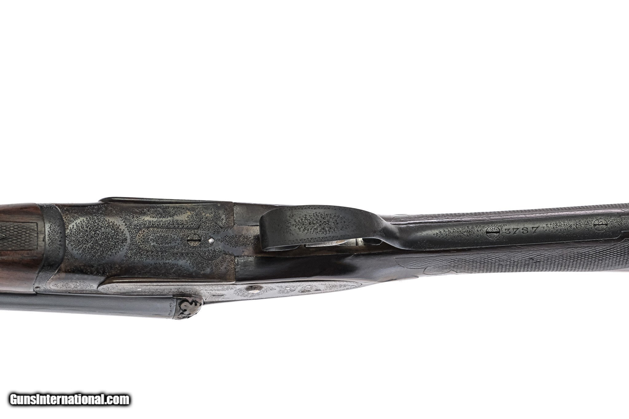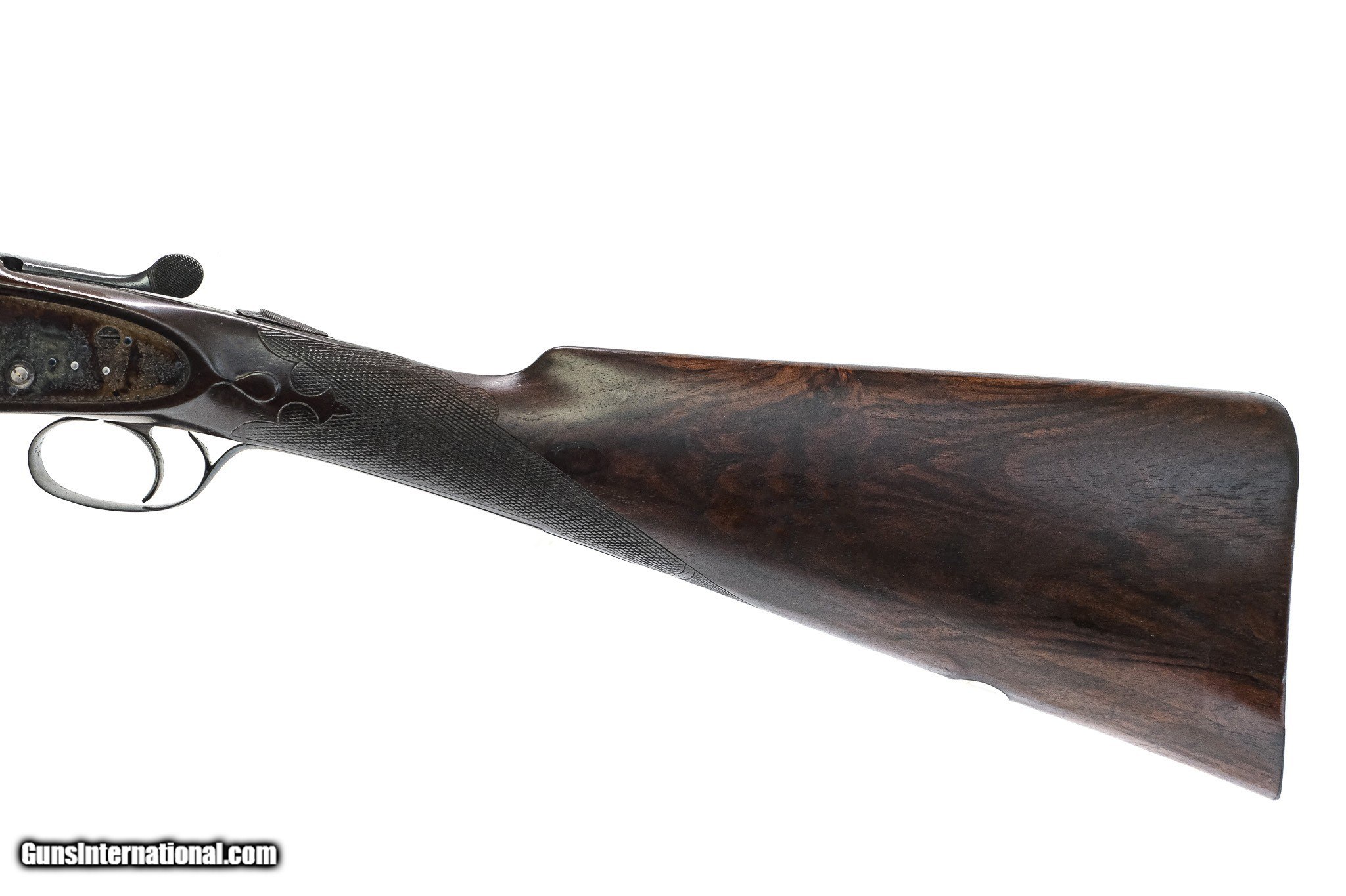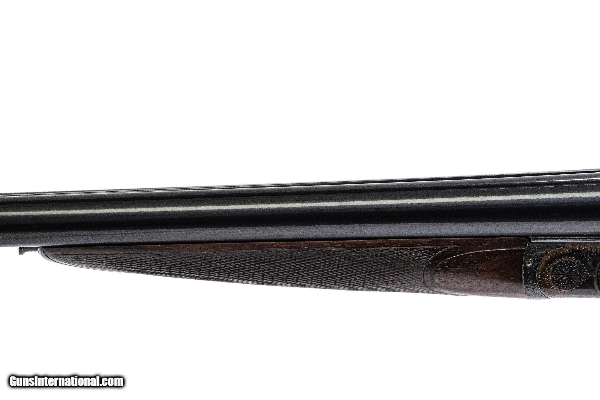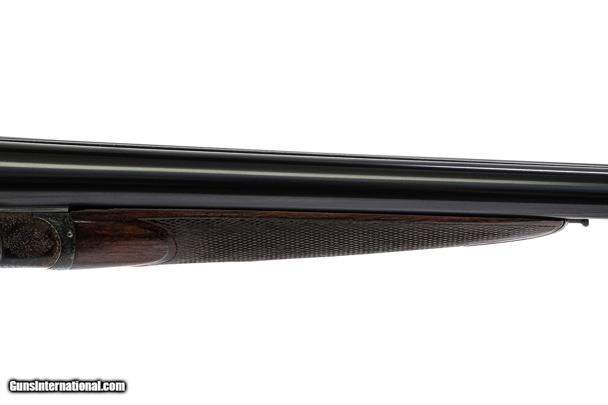 Description: Frederick Hadfield - SxS, 20ga. 28" Wentworth Steel Barrels Choked M/IM. Birmingham, 2 ¾ Chambers Choked M/IM, gun has deep carved fences with relief oakleaf and acorn, the receiver is delicately engraved with miniature scroll, protruding tumbrils, safe in gold, single trigger, drop points, forrelle checkering, steel heel and toe plates, straight grip, full sidelock, this a very high grade gun, lots of case color and barrel blue, square top checkering, hidden third fastener, splinter forend, extreme high quality very unusual small bore. Inv: 71910 5 lbs. 6 oz. 13 ½" x 1 ½" X 2 ¾" $9,500.00 SOLD |