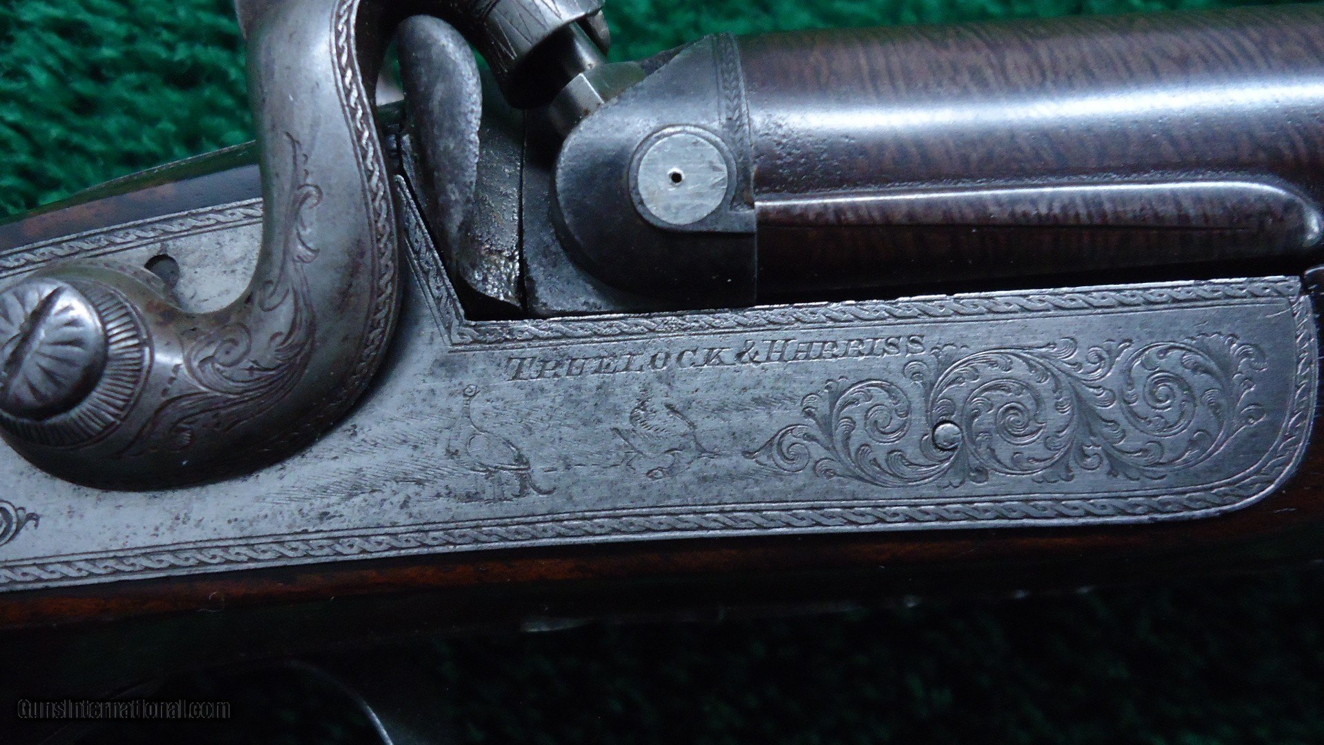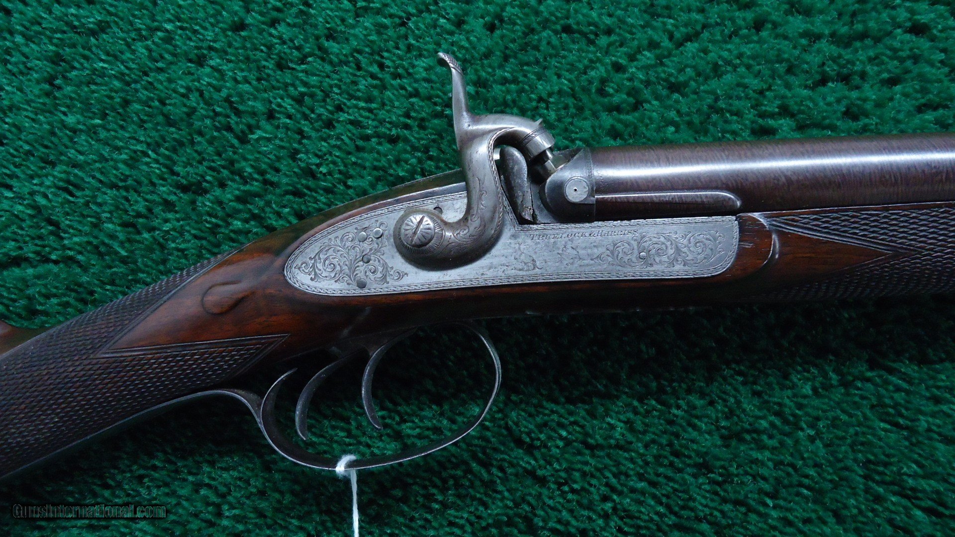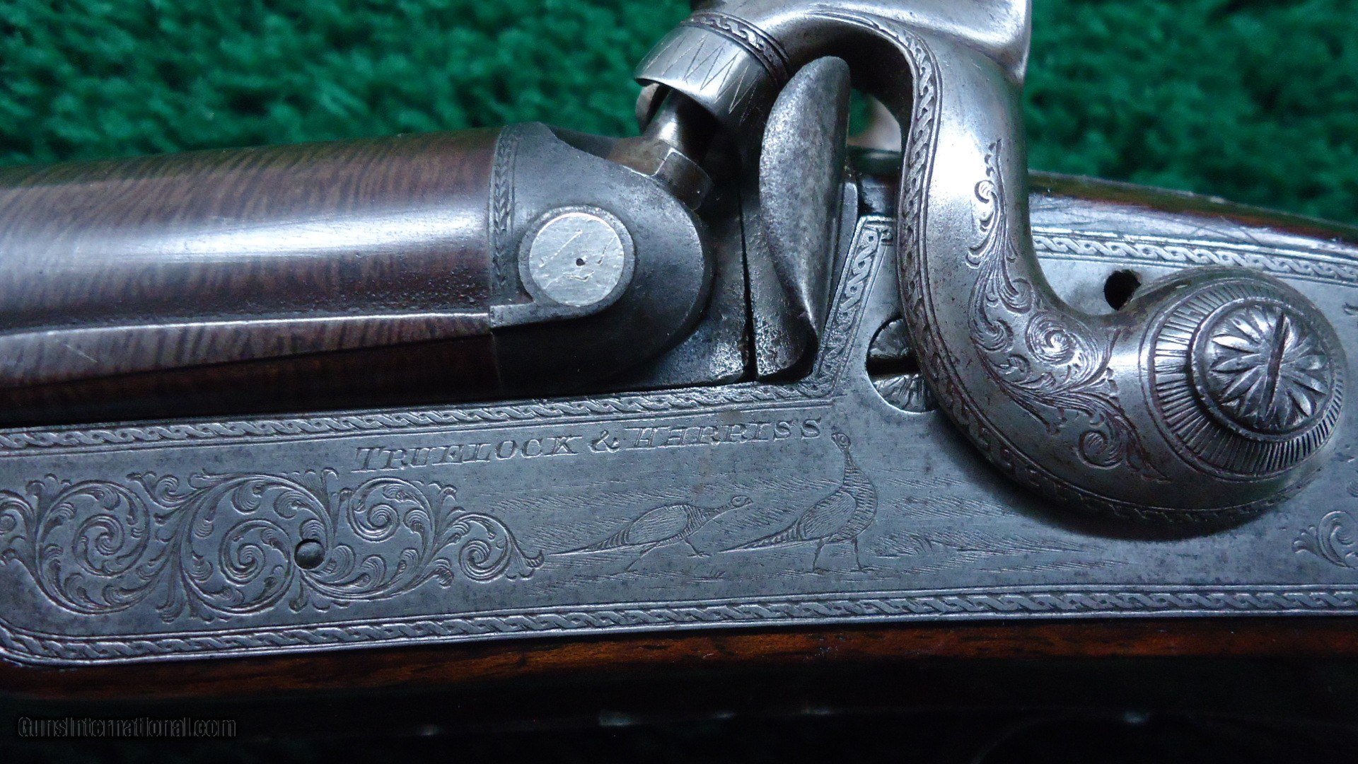 GOOD QUALITY PERCUSSION DOUBLE 14 BORE SHOTGUN BY TRULOCK & HARRISS OF DUBLIN