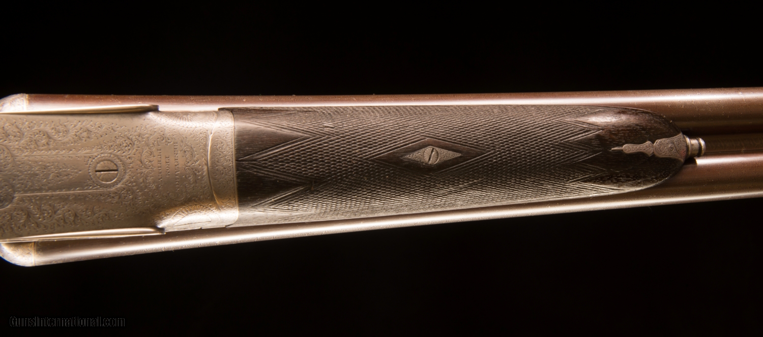 Description: Finely engraved, bar action sidelock of exquisite quality. Why own a Grant, or a Purdey for that matter when one could have this stunning example of English gun making from the 1890\'s? SOLD Antique: Yes Manufacturer: Henry Atkin 12 ga. sidelock with stunning wood and engraving ... Serial Number: 976 Ejectors: Yes Barrels: 30 Barrel Type: Damascus Action: Sidelock ejector Gauge Info: 12 gauge Stock Comb: 1 3/8 Stock Heel: 2 Stock Cast: 1/8 LOP: 14 1/4" to the check Weight: 6 lbs 14 oz. Choke Left: .020 Choke Right: Cyl. Proof:Nitro: 2 1/2" BNP 1 1/8 oz Minimum Wall Thickness Left: .022 Minimum Wall Thickness Right: .024 |