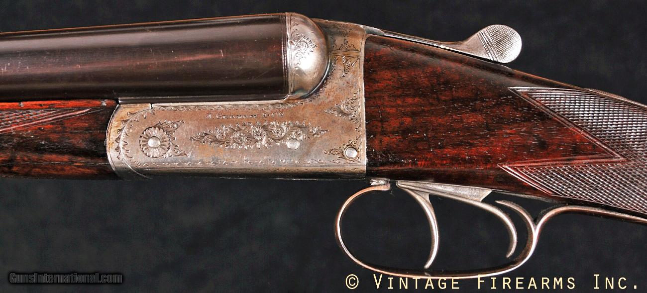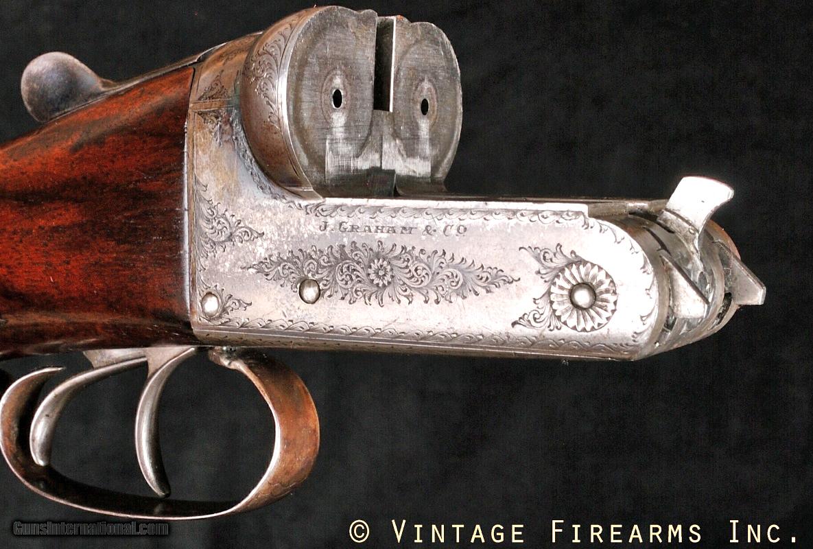 Description: J. Graham & Co. 12 Bore SxS Shotgun CASED, ANTIQUE General Specs: J. Graham & Co, Inverness Scotland, Year Pre 1898, 12 Gauge, 6lbs 9oz, Side by Side Serial Number: 78361 Barrels Barrel Length: 28" Chokes: .000/.024 Bores: excellent Bore Diameter: .724/.727 Wall Thickness: .030/.029 % Blue: 97% Chambers: 2 1/2" Ribs: tight Sights: single Action Action: right of center Ejectors or Extractors: ejectors, timed Case Color: 30% faded Screws: excellent Engraving: receiver sharp/clear, trigger guard soft engraving Trigger Type: double, crisp Trigger Guard Color: 98% reblue Stock Type: english stock/splinter forend, european wood w/figure LOP: 14 1/4" LOP To End Of Wood: 13 3/8" DAH: 2 1/4" DAC: 1 5/8" Cast: 1/4" off Checkering Condition: excellent Butt Treatment: brown aged kickeeze There are more photos upon request. We offer a 30 day mechanical warranty on this fine shotgun. PLEASE SEE MY OTHER FINE VINTAGE FIREARMS. Just open one of my ads and click on the line that says “see all items from this seller” and a very nice list of fine sporting and collectible arms will appear. I have many more fine sxs shotguns not yet listed. Thanks for looking! We employ a full time gunsmith on premises and can perform alterations to suit your needs within a few weeks of purchase. Payment Methods: Money Order, Certified Check, Personal Check, Wire Transfer Inspection Period / Return Policy: Three Days from the date the item was received. Sales Tax: 6% Michigan Only Shipping & Insurance: Ground $45.00 We ship internationally! Item Condition: Used Requires FFL?: No, ANTIQUE If you have any questions about this item or payment, please email or call us directly, at #616-292- 6240. Thanks! Vintage Firearms, Inc SOLD Curio/Relic: Yes Antique: Yes |