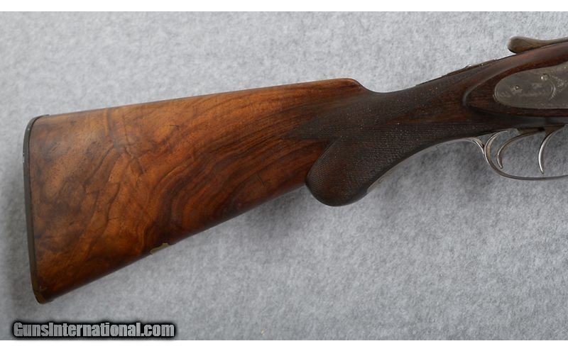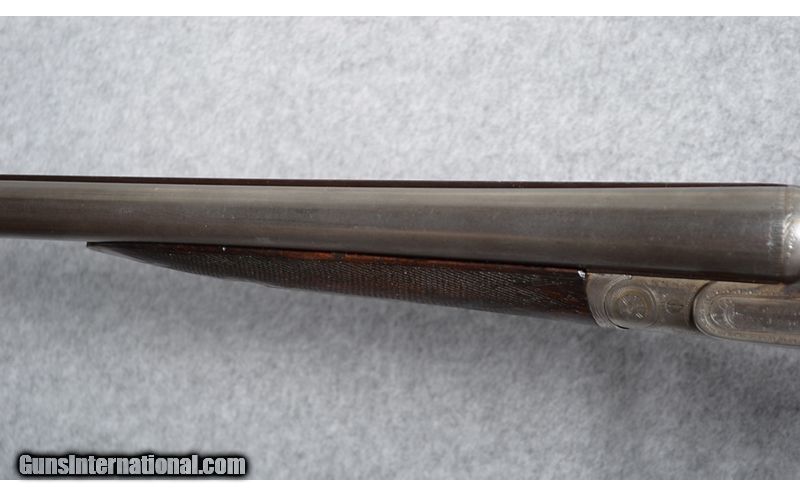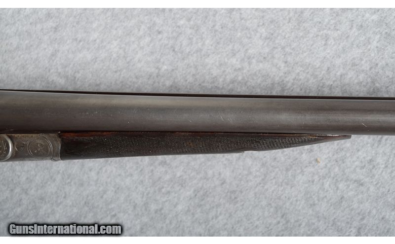 Description: This J.P. Clabrough & Bros. 12 gauge Side Lock was most likely manufactured between 1887 and 1896 in England. It has extensive hand engraving with a pair of flying ducks on each side plate and a pair of pheasants on the bottom of the action. Both lock plates also are marked "J.P. CLABROUGH / & BROs ENGLAND". There is a gold initial shield on the bottom of the stock. It has an extractor and tang safety. This firearm is currently NOT fully functional and would be a great project for gunsmith or someone with good mechanical ability: • This firearm is being sold "AS IS" and "ALL SALES ARE FINAL" • If you have ANY questions, please ask! We will gladly provide all the information we have on the firearm. There is one known issue with this shotgun: • The left barrel hammer spring is broken and will need to be replaced. 12 Gauge SOLD Antique: Yes Chambers: 2 3/4 Metal Condition: "Very good. The action was originally case colored, but most of it is gone. Wood Condition: Very good. A few minor dings. Bore Condition: Excellent. Barrels: 28" "Special Diamond Steel" barrels Triggers: Double triggers Stock Dimensions: 13 1/4" and 14 1/4" LOPs Fore End: Checkered walnut splinter forearm with horn insert at tip Butt Pad: Original hard rubber butt pad. Weight: 8 LBS Sights: Full length concave solid rib with brass front bead Chokes: Both barrels are improved cylinder Item Location: Boise, ID |