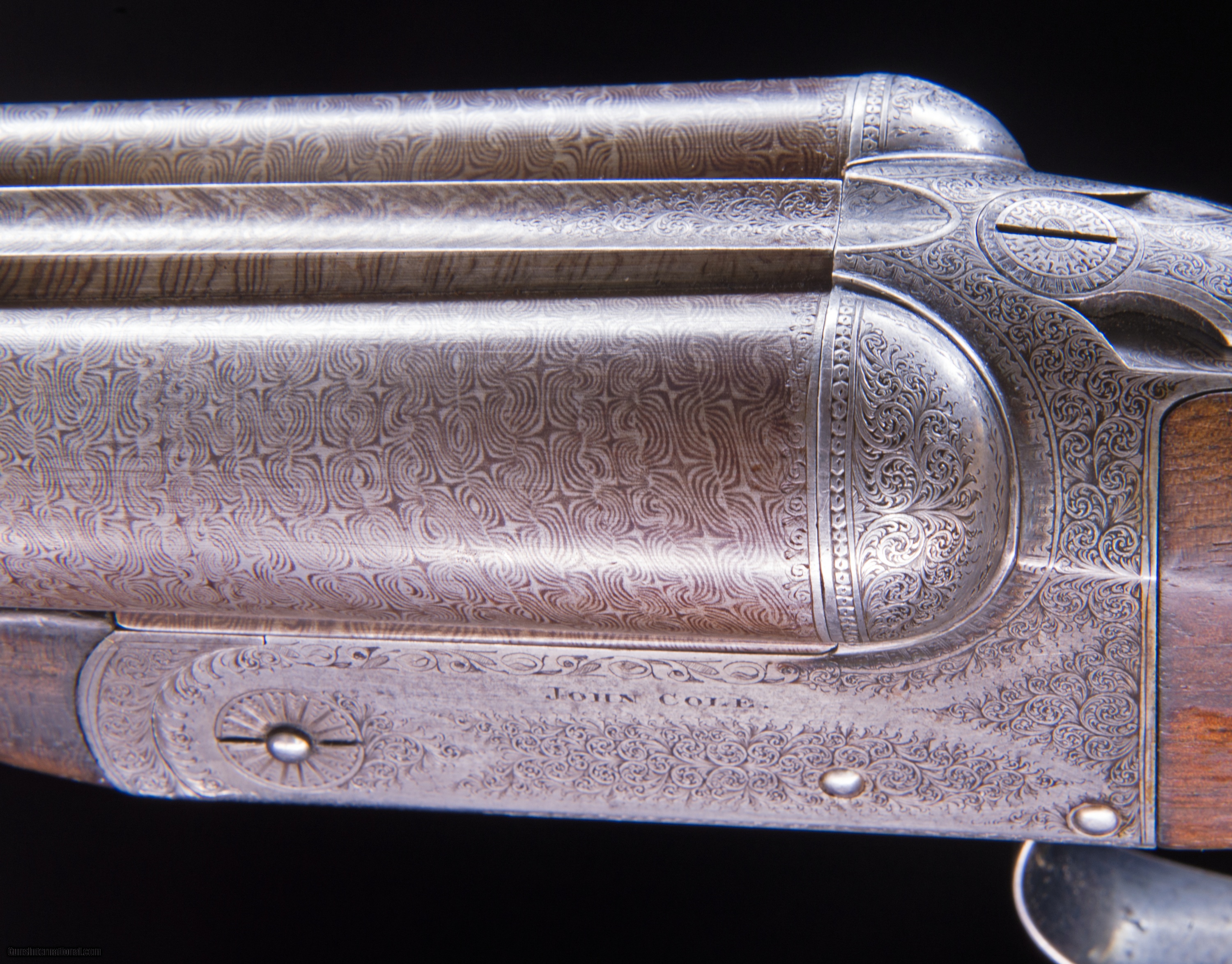 John Cole 20g. with great dimensions featuring stunning engraving and Damascus pattern!