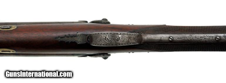 Description: LG Bever - Hammergun (Damascus) - 10 ga - Item Number: LGBNSN Shotgun type: SxS Action: Hammer Ejectors: Yes Trigger: Double Grip: Straight Grip Forend: Unchecked Wood Lop: 14 5/8 " Pad thickness: " Type of butt: metal plate Drop comb: 1 7/8 " Drop heel: 2 5/8 " Cast amount: 0 " Cast: Weight: 8 lbs, 12 oz Manufactured in: England Manufacture Year: Finish: Coin Overall condition: Good Stock condition: Good Metal condition: Good Stock: Original finish Metal: Original finish Extra barrels: 0 Barrel info: Gauge: 10 ga Chamber: NA " Length: 30 " Chokes: IC/M Proof: " Reproof: " Rib type: Concave Comments : Nice Damascus muzzleloader in good condition. SG 248 SOLD |
