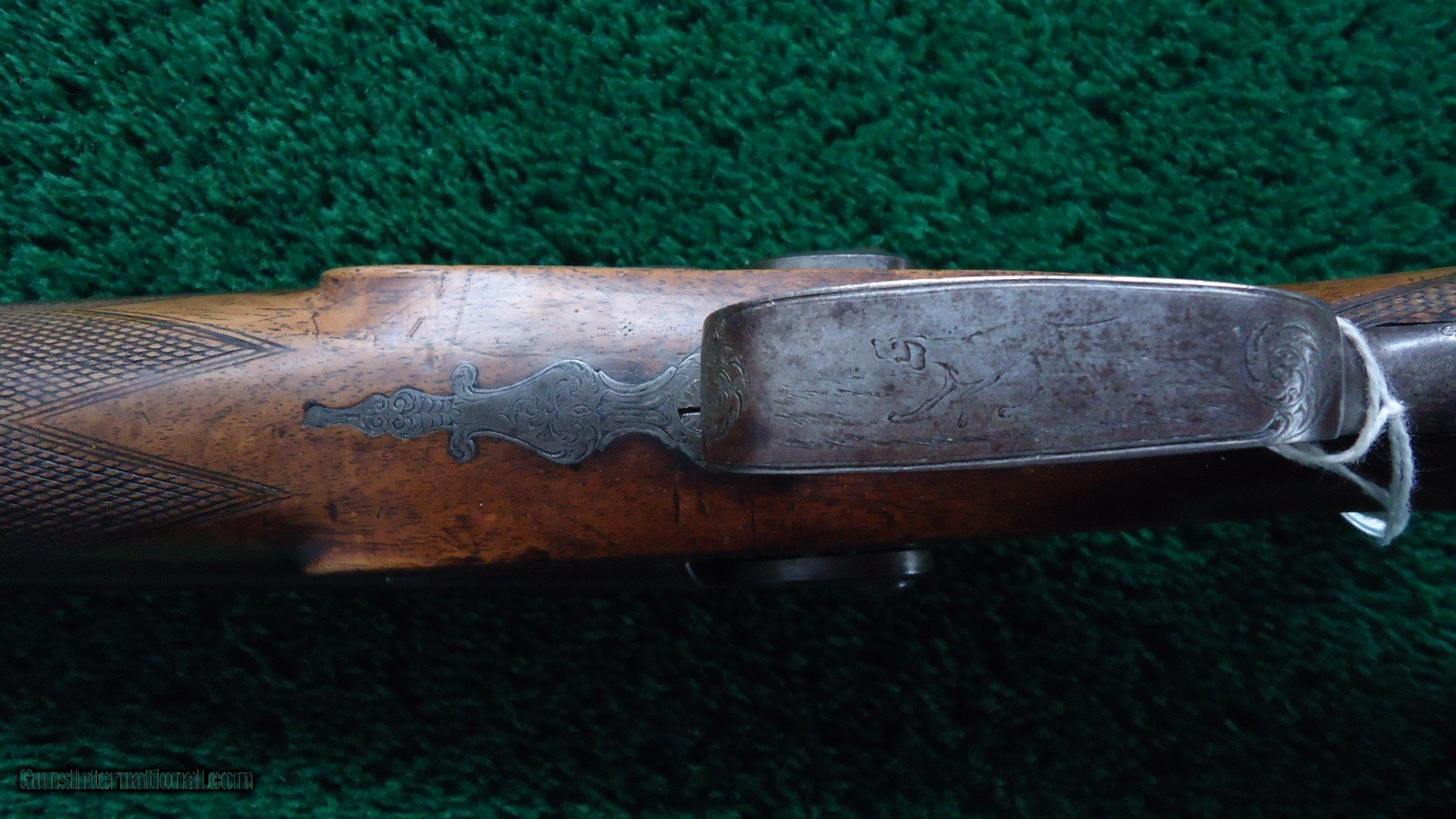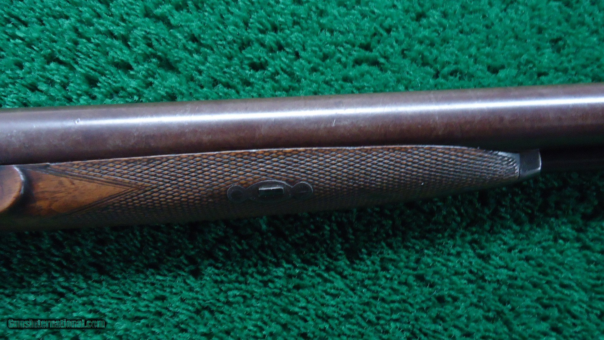 Description: Double barrel hammer gun. Wood has been refinished but looks good with sharp checkering. Lock plates have traces of case color with beautiful engraving. 31-1/2 inch barrels retain about half of the Damascus pattern. Original cleaning rod. 14-1/2 LOP. Leroy Merz Antique Firearms specializes in antique and vintage Winchesters and other fine American firearms. Since 1965 Mr. Merz has taken part in the world of firearms and has been a contributor to many well known reference books. We have hundreds of additional guns in every price range at our home online. Search for Merz Antiques in google. SOLD Antique: Yes |