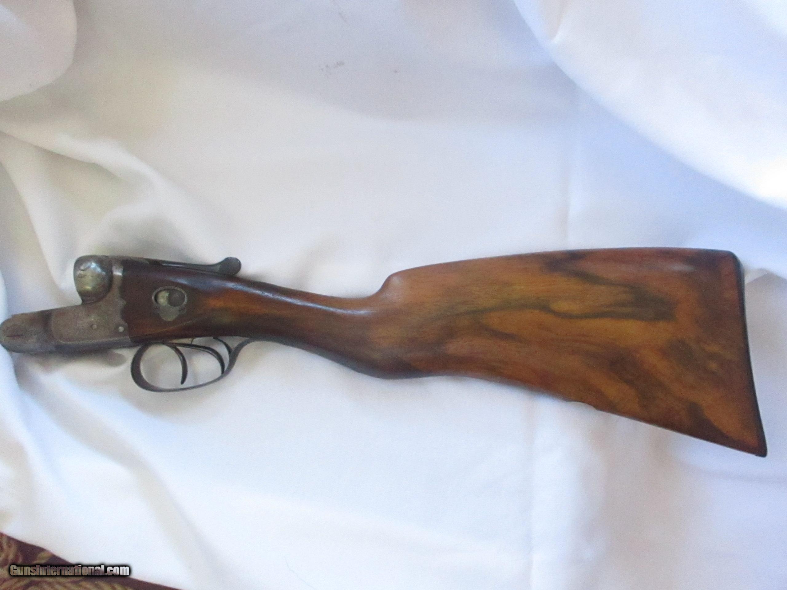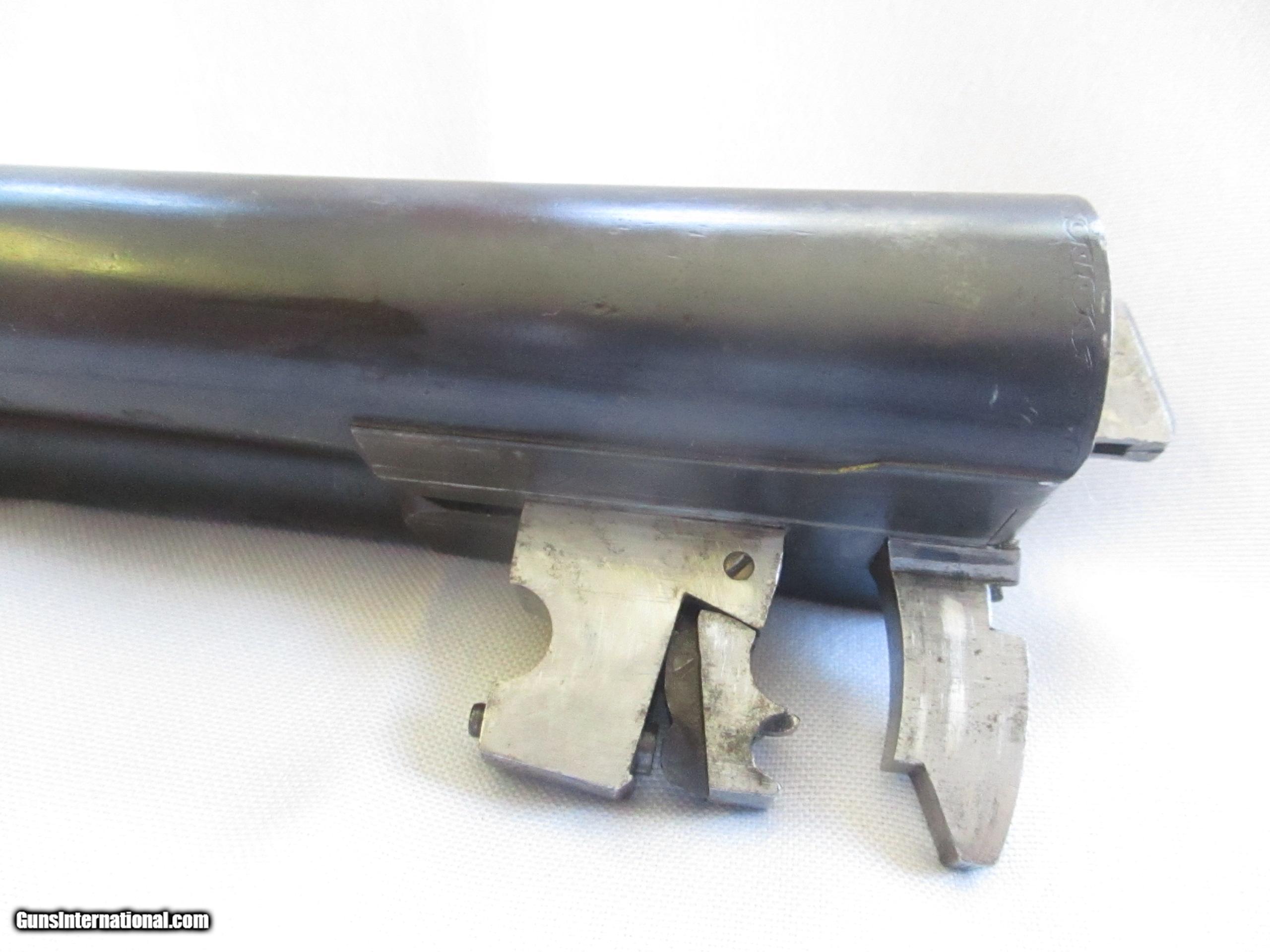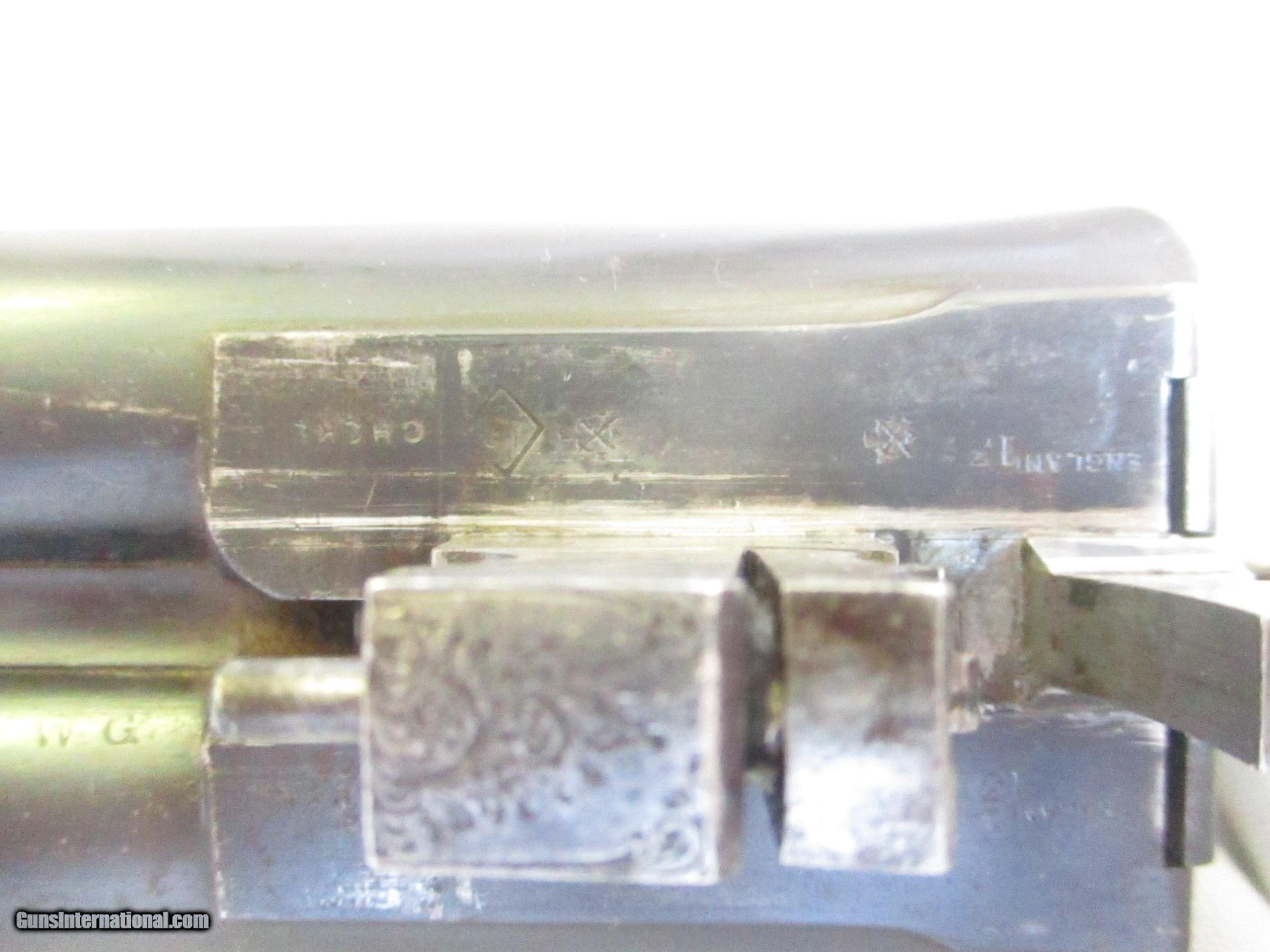 Description: Fine W. W. GREENER, Model Facile Princeps, Grade G, double barrel side-by-side 12 gauge / 2 1/2 " shotgun with ejectors, serial number 44878, made in 1896. The shotgun shows 32 inch barrels and is 48 inches in over all length. Both barrels are marked choke (full). The gun was proved in the Birmingham Gun Barrel Proof House at 13 bore (nominally a 12 bore size) according to a letter from Graham N. Greener of W.W. Greener Co in London. The LOP from trigger to end of stock measures 14¼ inches. There is a 2 1/2 inch drop at the heel. The stock style is GREENER "Rational" which is very easy to use and to shoot with. The wood is lightly colored Circassian Walnut which is fine figured and has good grain. The end plate is dark horn. The chequering is somewhat worn. The gun locks up tight and the bores are bright. A fine example of an English shotgun made by a historic gun maker over 100 years ago with old world workmanship and by using the best material available. SOLD Antique: Yes Manufacturer: W.W. Greener of London Model: Facile Princeps Grade G Serial Number: 44878 Caliber Info: 12 gauge Bore: 2 1/2 Chambers: Good Ejectors: Self-acting Greener Ejectors Condition: "Good Condition For Its Age" according to GREENER CO. Metal Condition: Good Wood Condition: Very good Bore Condition: Good & Clean Action: Greener Cross Bolt Triggers: Double Stock: Fine Figured GREENER "Rational" Stock, Good Grain Circassian Walnut Butt Pad: Real Horn Butt End Manufacture Date: 1896 Engraving: Scroll Item Location: San Diego CA Proof:Nitro: Should be re-proved for Nitro according to GREENER Proof:Black: Approved by Birmingham Proof House |