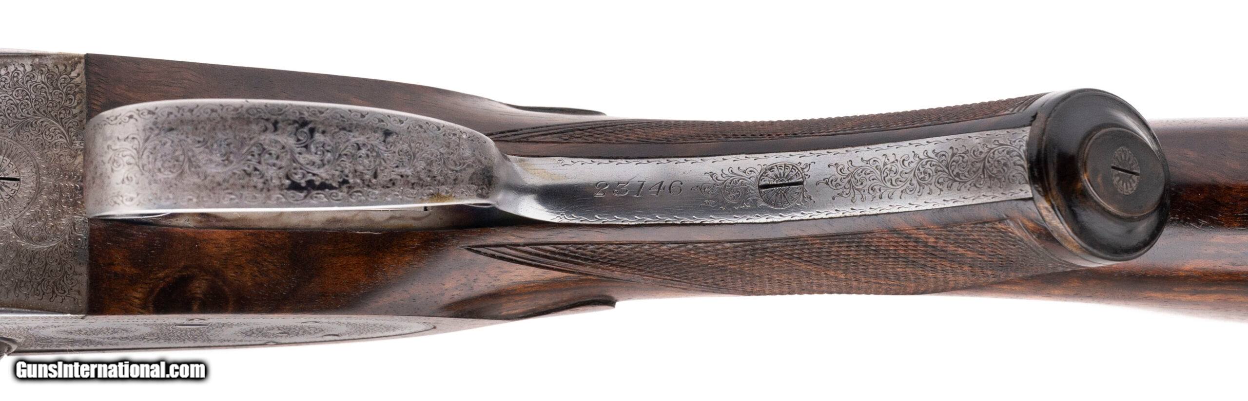Description: "SN: 23146 made in England in 1926. 12 gauge side by side factory 2 barrel set with Whitworth fluid steel chopper lump barrels, both with 2 ¾" chambers. 28" barrels are choked .011/.021 and 30" barrels are choked .023/.030. Minimum wall thickness on the 28" barrels is .026/.025 and on the 30" barrels is .030/.029. Best grade engraved with traditional English rose and scroll, side lock assisted opening with double triggers, ejectors, automatic safety and cocking indicators. Highly figured Turkish walnut furniture with a gold oval, horn pistol grip cap and 15 3/8" LOP to the checkered solid butt with a drop of 1 ½" to 2". Overall an outstanding best gun in fantastic condition. Comes in factory oak and leather case with accessories and copies of the Purdey archive. Curio/Relic: Yes Price: $37,500.00 Contact Seller |