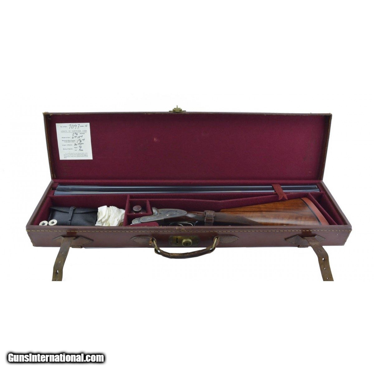 Description: "Thomas Evans Bar Action 12 Gauge shotgun. Thomas Evans (from Purdeys) engraved on rib with “151 New Bond Street London". Barrels are 30" length. Chokes are improved cylinder and full choke. Length of pull is 14" over a Silvers pad. Engraving is Purdey style “rose and scroll". Frame shoulders are chiseled in a ribbon motif. Barrel has the 3rd fastener. Barrels are proofed for 2 ½" shells with 1 1/8 oz. loads. Note: The chambers are opened to 2 ¾" but maintaining the 1 1/8 oz. loads. Not 1 1/4 oz. Gun has a 3 ton nitro proof. Bores are excellent. Gun has automatic ejectors. This is a fine bar action sidelock by a very well respected maker. Gun comes with luggage case and accessories. Note: There is a bit of history associated with this gun. We purchased this gun from Piers Selliers who was a NASA astronaut and went on 2 missions and 6 space walks. He told us at the time that the gun had been his fathers and he inherited from him. Piers Selliers died from cancer in 2016. Several pages of info on Selliers is included with the gun detailing his life and accomplishments. SOLD |