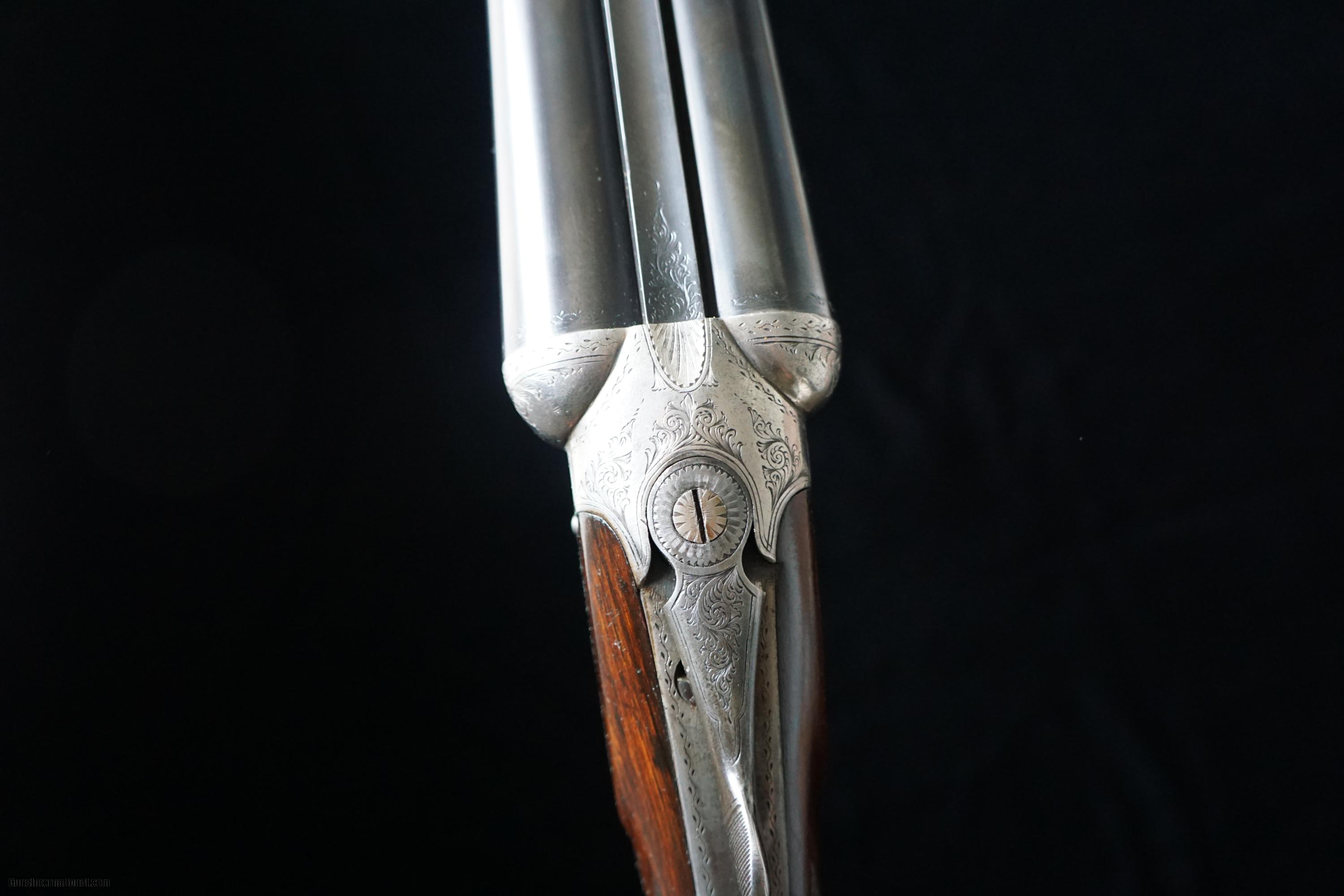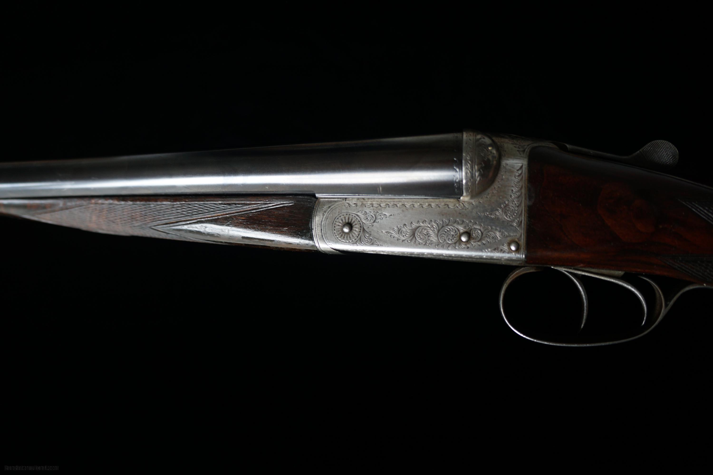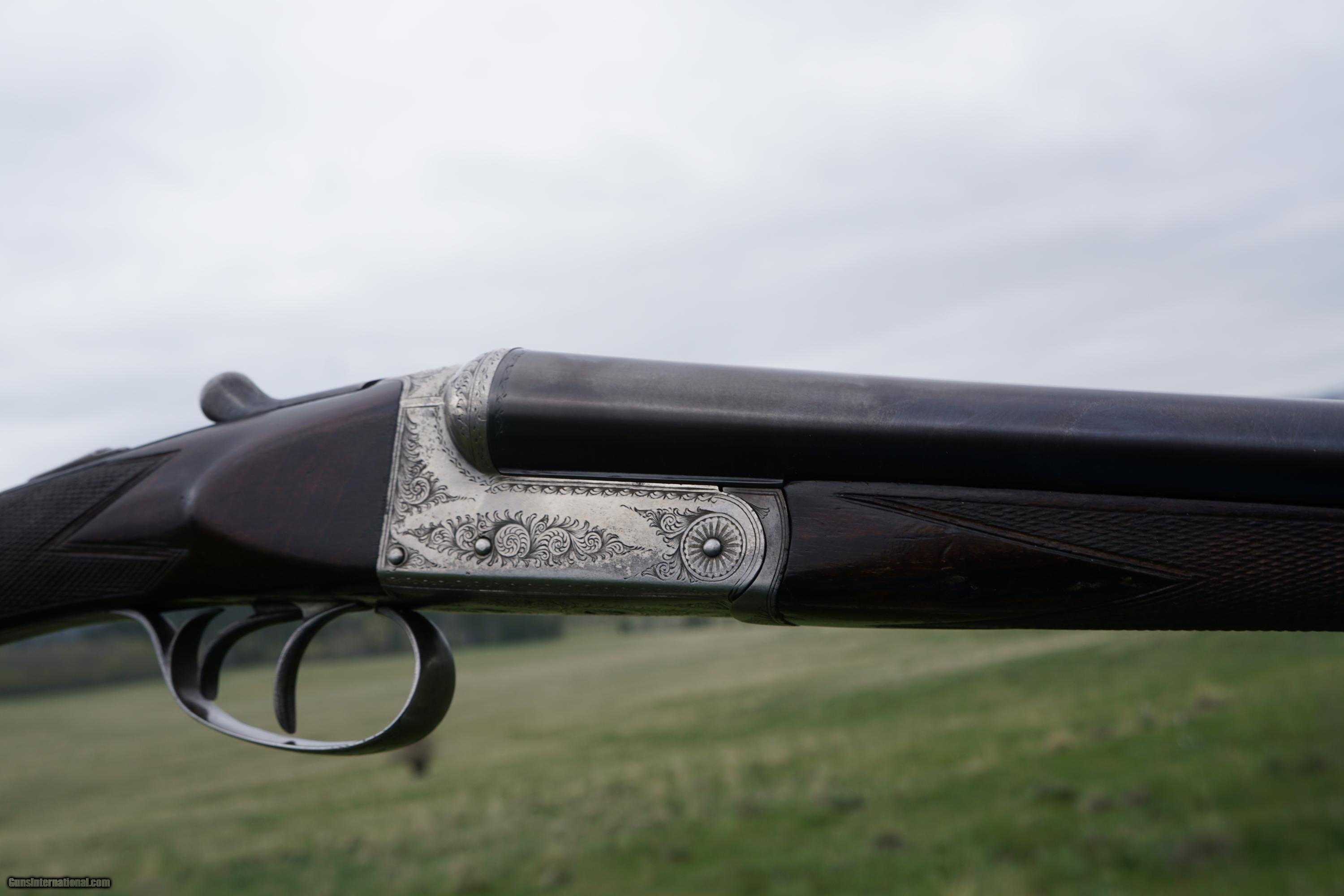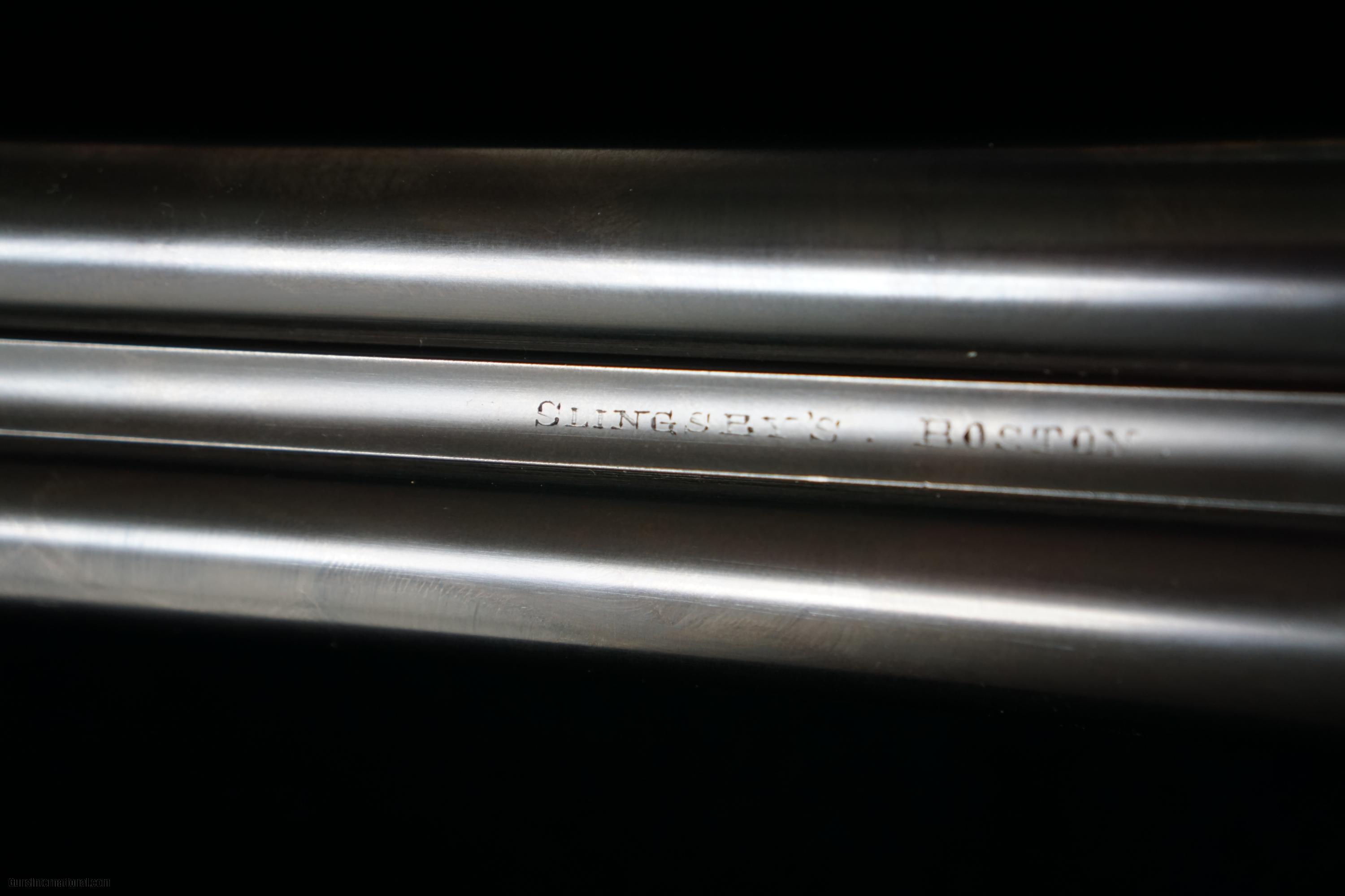 Description: SALE PENDING: Very attractive little 16 gauge boxlock non-ejector by Slingby's of Boston. (This does not refer to the city of baked beans, chowdah, or the curse of the Bambino, but to a town in Lincolnshire.) The barrels are 28" with excellent bores, proved at .662 and still measuring the same. The chambers are 2 1/2" and the bores are choked .006/.029. The rounded action locks up tight, and features border and acanthus scroll engraving. The maker's name is engraved on the rib. The straight grip stock measures 1 1/2" x 2 1/8" x 14 1/2" over a rubber butt pad, and has slight cast off (for right hand shooters.) There is a vacant initial shield. The forend is of the pull-off type. Weighs 6 lbs 6 oz, and, will make someone an absolutely dandy upland gun. FEEL FREE TO CONTACT ME WITH ANY QUESTIONS, AND PLEASE CHECK MY OTHER LISTINGS OF REASONABLY PRICED BRITISH, CONTINENTAL AND AMERICAN SPORTING ARMS. SHIPPING IS ALWAYS FREE. SOLD Curio/Relic: Yes Manufacturer: Slingsby's of Boston Chambers: 2 1/2 Ejectors: no Barrels: 28 Action: Boxlock Triggers: 2 Gauge Info: 16 |