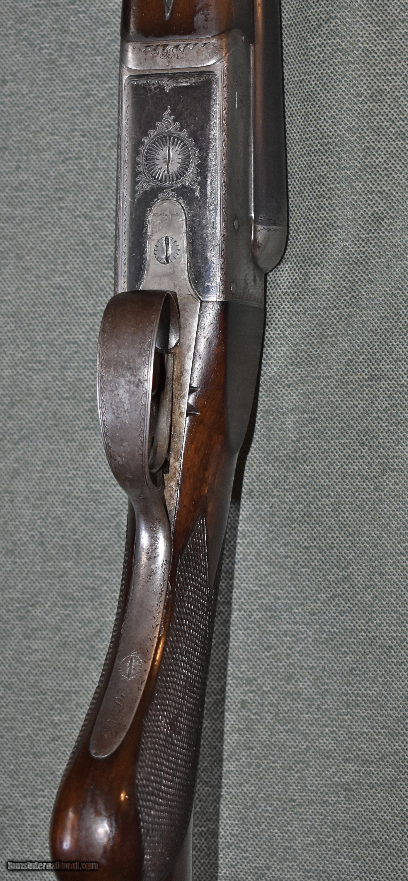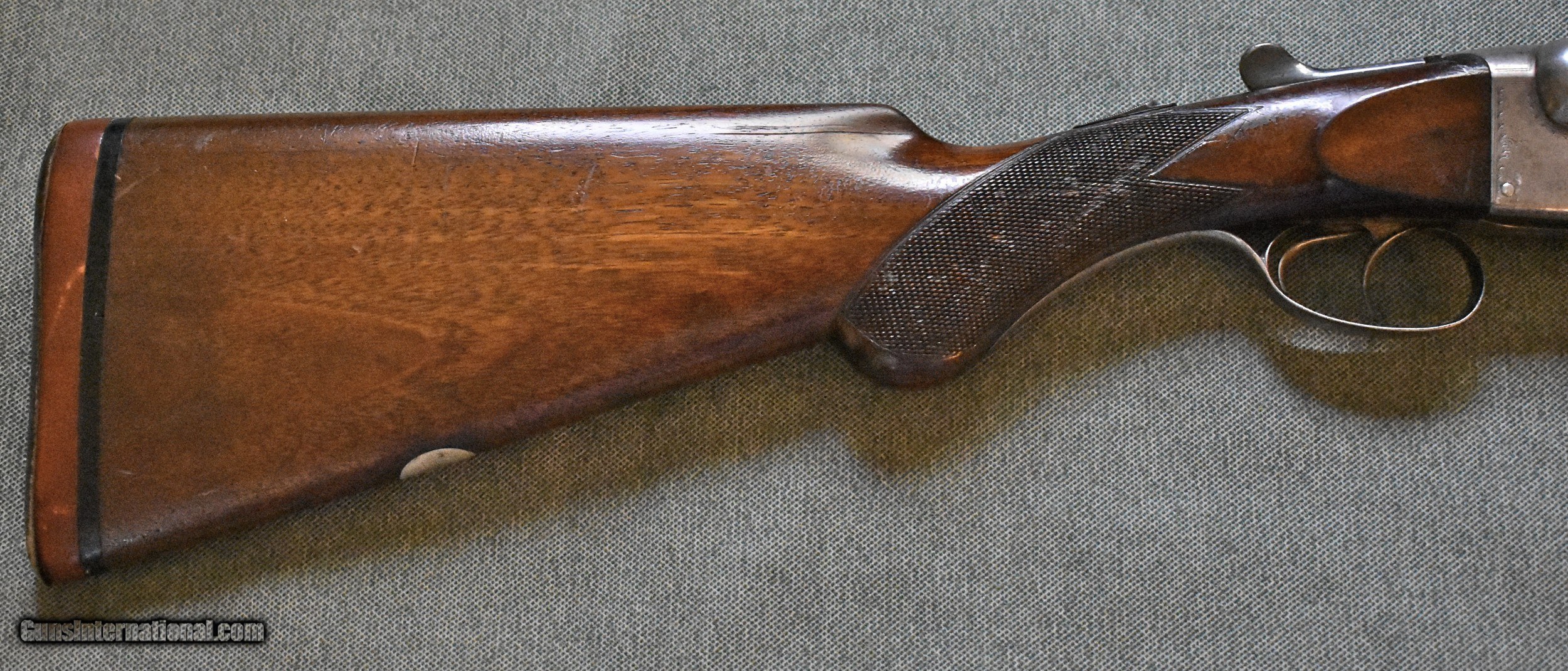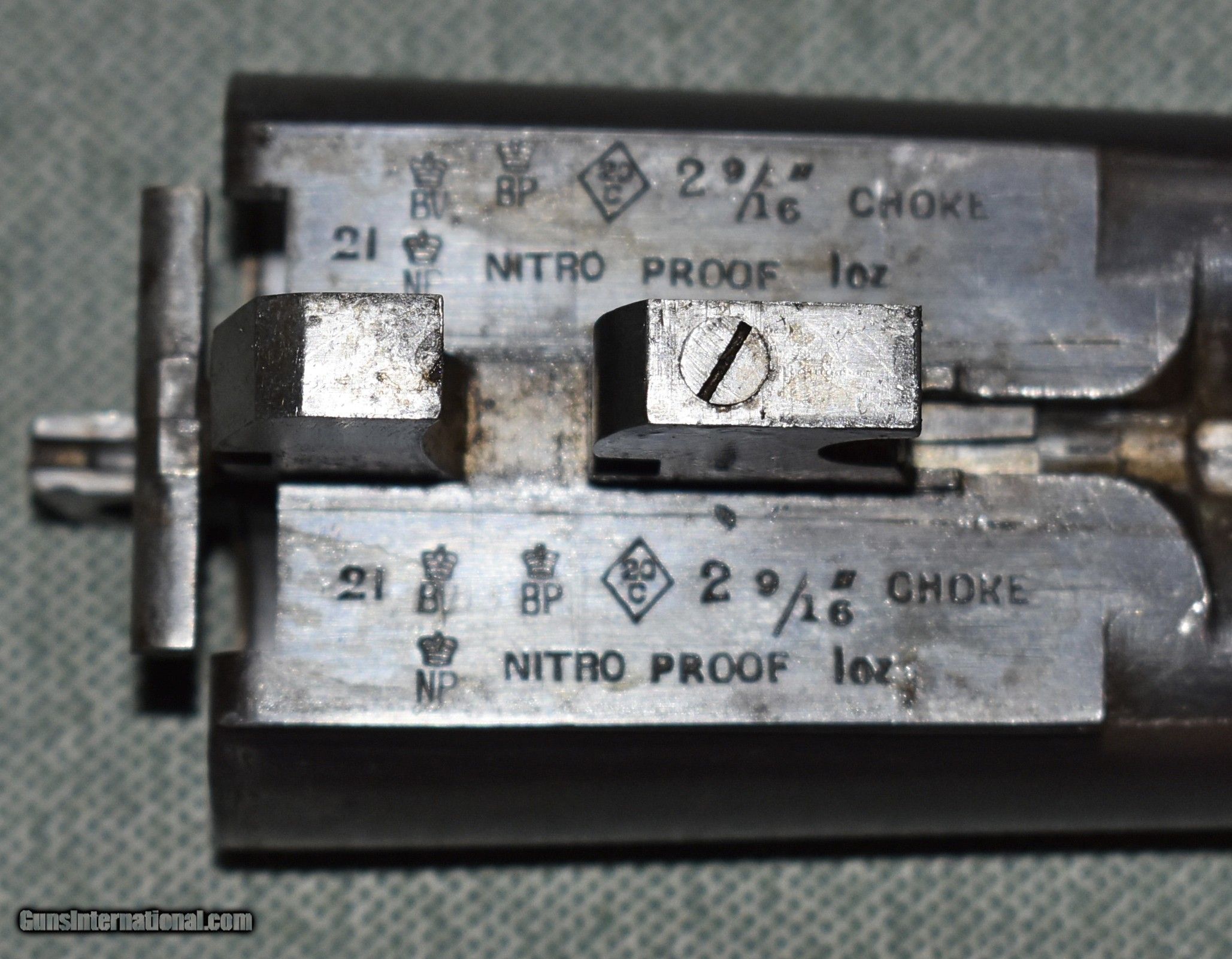 Description: 20 gauge boxlock ejector built by William Cashmore. Built in the late 1920s,this gun has 28" barrels choked improved cylinder (.010") and modified (.017"). the bores are mint and free of any rust,dents, or pits. The barrels are proved for 1oz. loads and 29/16" chambers and are unaltered. I have shot 1oz 23/4" loads through it with no problems. The stock dimensions are 14" LOP over a leather faced recoil pad, 112" at comb,and 212" at heel. The ejectors are in time and work perfectly. The gun retains 95% of the original barrel blue. The receiver has lost most of its case color and shows a nice gray patina. All screws are sharp and un marked. The gun weighs 5-12 and balances on the hinge. This is a great upland bird gun and a lot of gun for the money.C&R eliglble. SOLD Curio/Relic: Yes Shotgun Gauge: 20 Gauge Manufacturer: Willaim Cashmore Model: Boxlock ejector Serial Number: 20468 Barrel Length: 28 Chambers: 29/16 Ejectors: yes Condition: excellent Metal Condition: excellent Wood Condition: excellent Bore Condition: mint Barrel Type: fluid steel Action: double barrel Triggers: double Fore End: splinter Butt Pad: recoil pad Manufacture Date: 1920s Choke Left: modified (.020") Choke Right: IC (.010") |