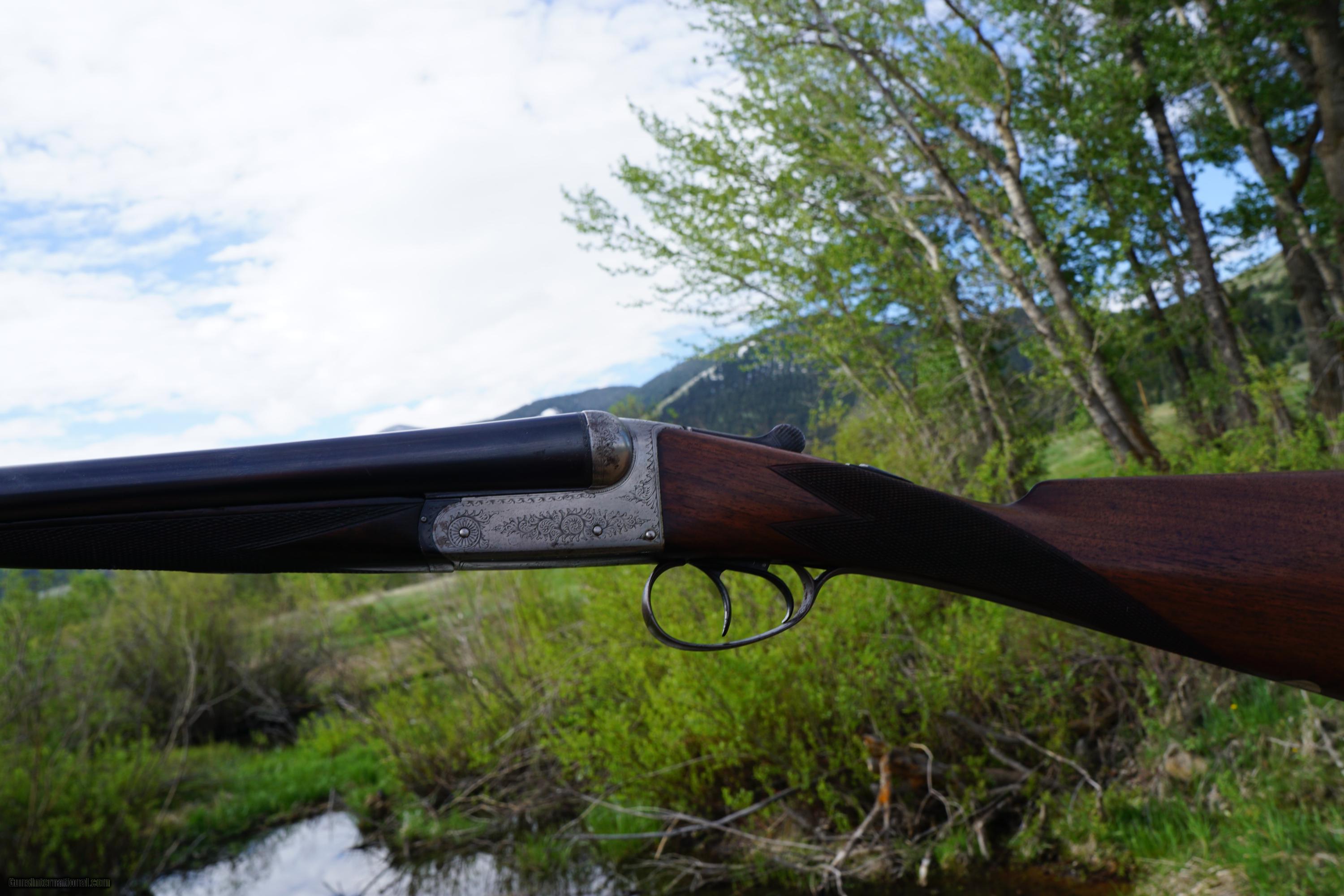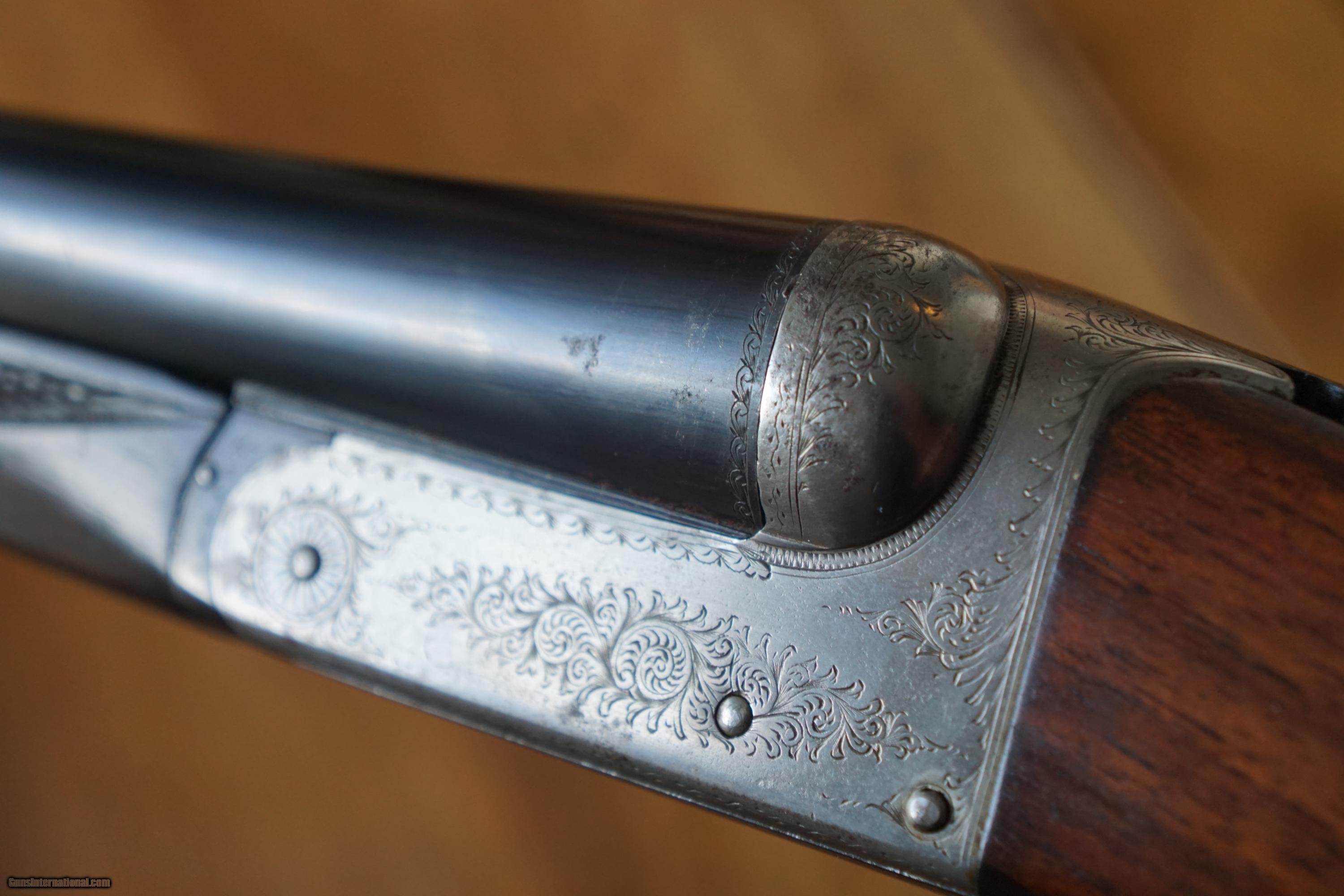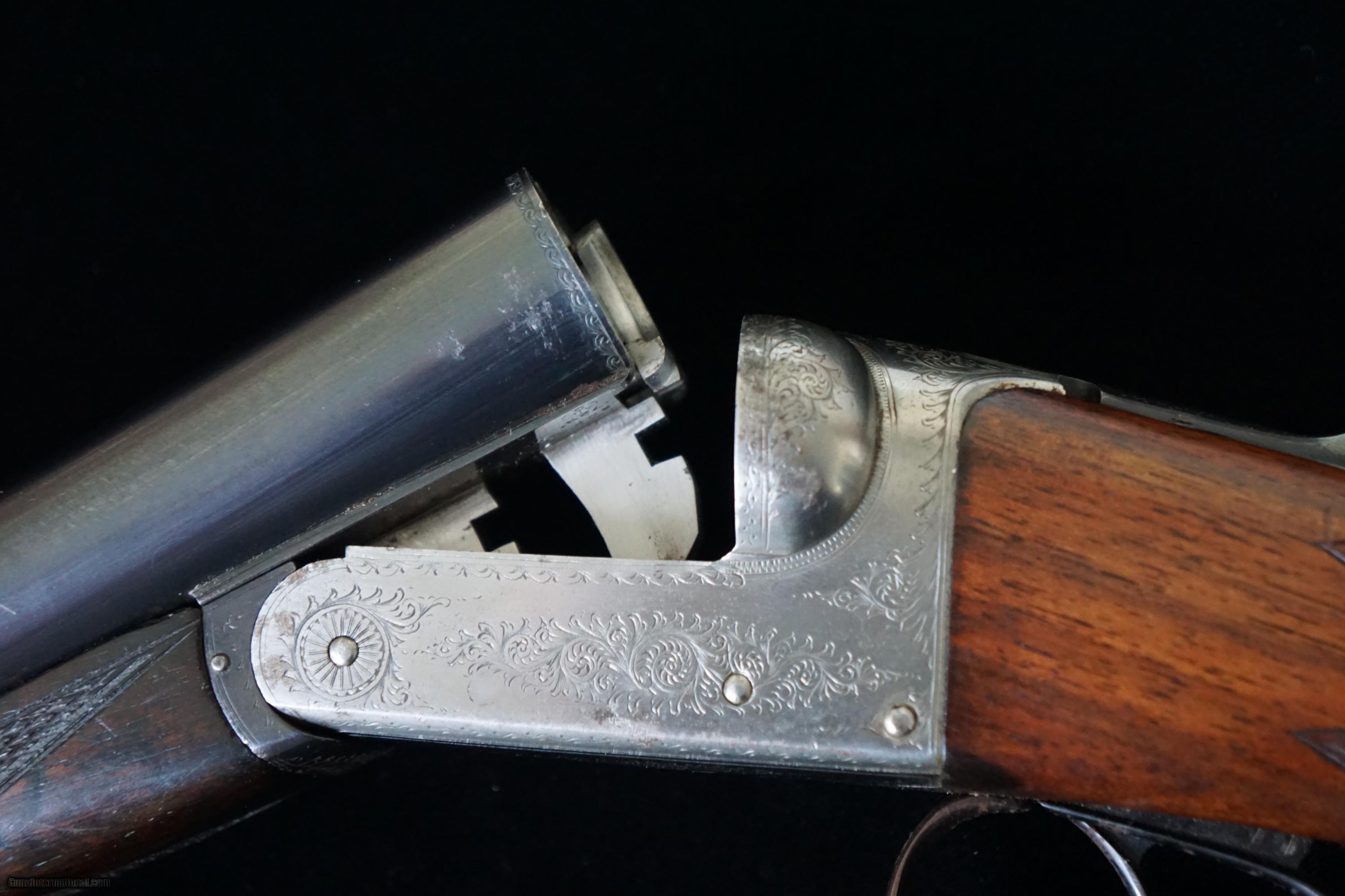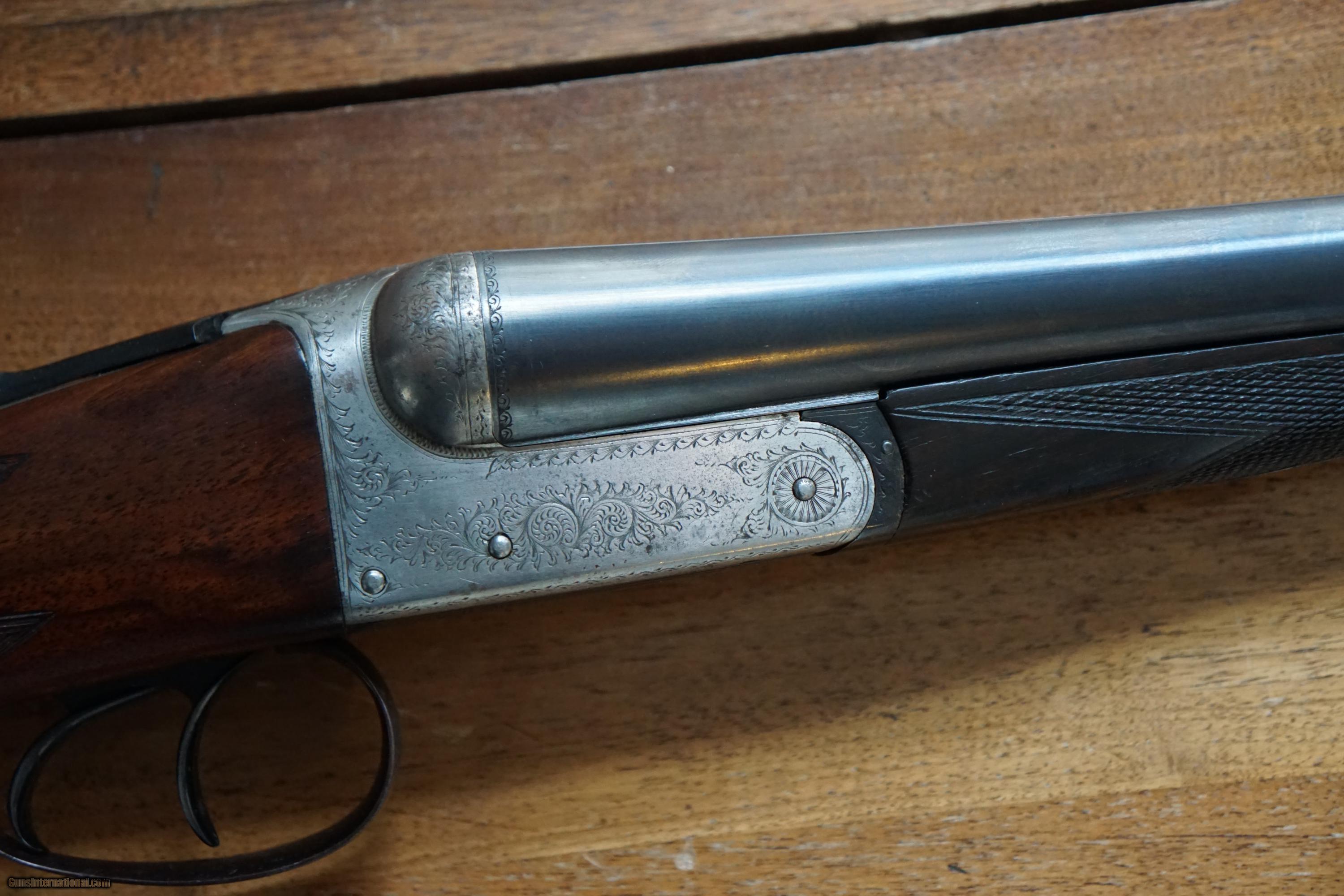 Description: Fantastic and high quality little 12 gauge game gun in excellent condition. This boxlock ejector was built by A. B. Harvey & Son of Falmouth (Cornwall). The fluid steel barrels are 27" with 2 1/2" chambers and excellent bores, choked .006/.023 (perfect for upland hunting.) They were proved at .729 and both bores still measure the same.) The rib is engraved: A. B. HARVEY & SONS LTD FALMOUTH. The action features border and scroll engraving, and locks up tight as new. The ejectors function perfectly. The stock is pretty walnut with a straight grip and crisp checkering. The forend is of the Anson push-rod type. The stock measures 1 3/4" x 2 1/8" x 14 5/8" over a checkered butt, and has slight cast off (for a right handed shooter.) The weight is only 6 lbs 9 oz. Just a super gun for the upland bird hunter. FEEL FREE TO CONTACT ME WITH ANY QUESTIONS, AND PLEASE CHECK MY OTHER LISTINGS OF REASONABLY PRICED BRITISH, CONTINENTAL AND AMERICAN SPORTING ARMS. SHIPPING IS ALWAYS FREE. SOLD Curio/Relic: Yes Manufacturer: A. B. HARVEY & SONS Model: BOXLOCK Caliber Info: 12 Chambers: 2 1/2 Ejectors: YES Condition: EXCELLENT Metal Condition: EXCELLENT Wood Condition: EXCELLENT Bore Condition: Excellent Barrels: 27 Action: Boxlock Triggers: 2 Gauge Info: 12 Stock Dimensions: 1 3/4" x 2 1/8" x 14 5/8 Weight: 6 lbs 9 oz Choke Left: .023 Choke Right: .006 Engraving: YES Proof:Nitro: NITRO PROOF |