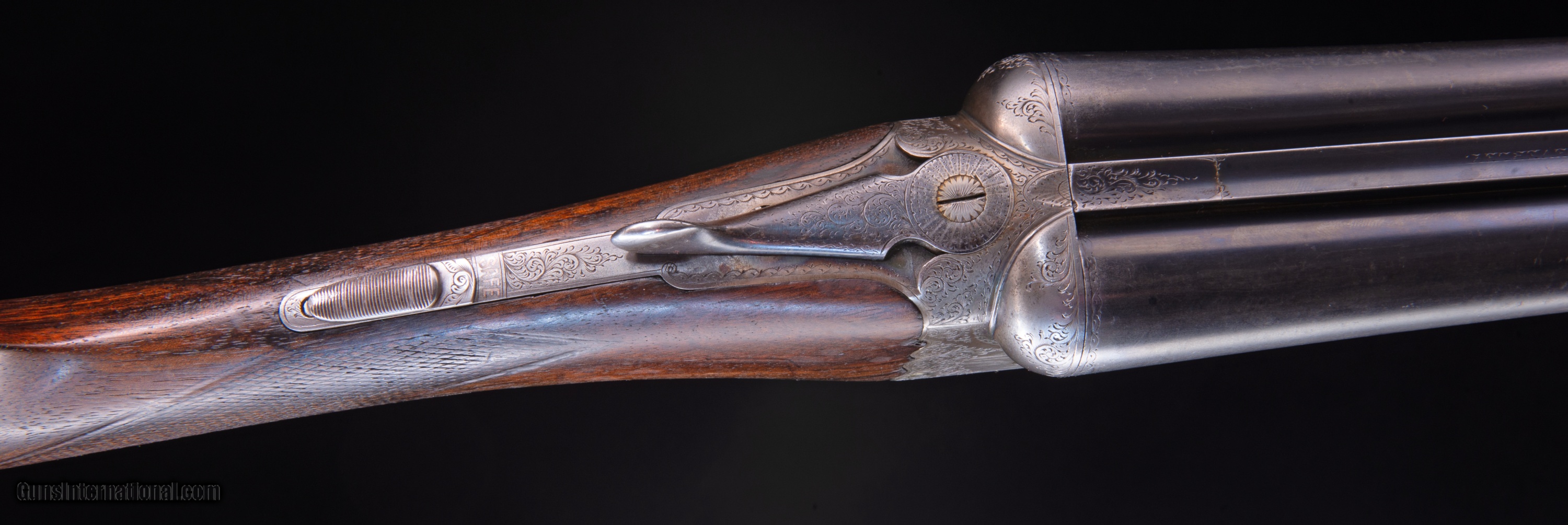 It is slightly cast on now but could easily be bent cast off for a right handed shooter. *** Note: To see this gun with high resolution photos and a zoom-in feature, go to the vintagedoubles main site and search for the gun ID: 3612 or browse the main site to see our full gun collection. |