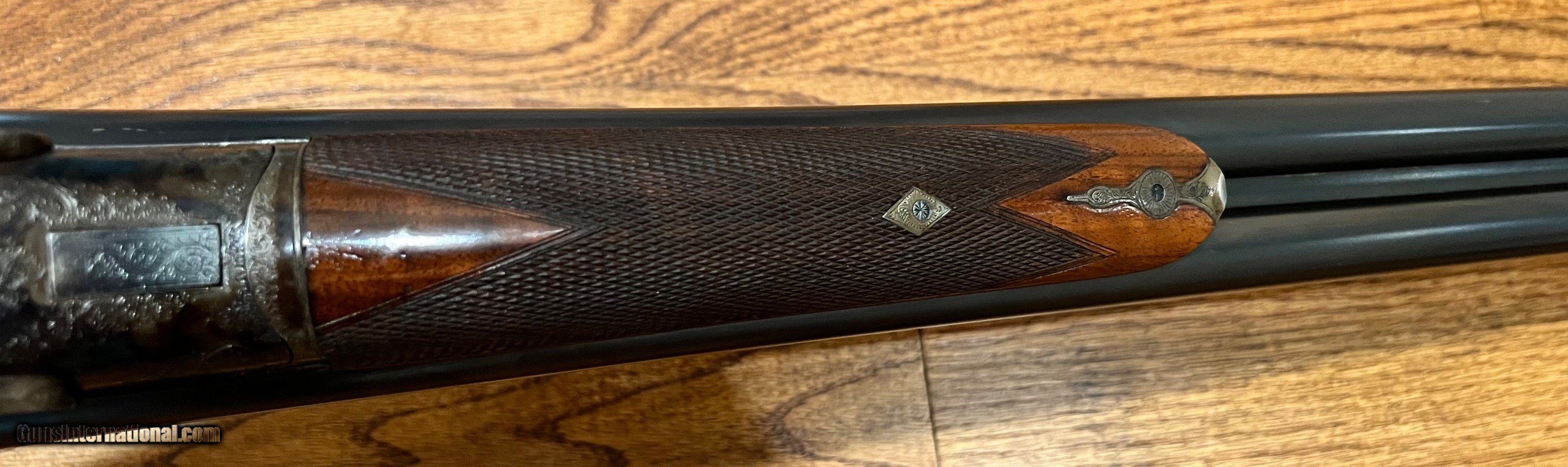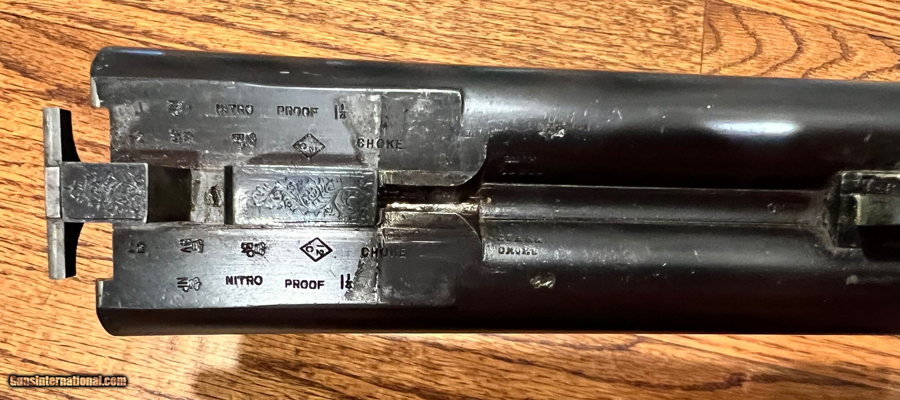 Description: Alcock & Peirce Melbourne Australia "The Viking" (built by Webley & Scott) hammer pigeon/trap gun 32" raised flat filed rib barrels with excellent bores 2 3/4" 1 1/4oz nitro proof Minimum wall thickness: 0.030/0.035 Bores: .730/.731 proofed at .729/.729 Chokes: .010/.015 IC/M LOP 14 1/2 over 5/8" pad DAC 1 5/8 DAH 1 7/8 Cast off 1/8" 7lbs 15oz Really nice W&S made pigeon/trap gun retailed in Australia. Perfect setup for a hammer sporting clays gun. SOLD Curio/Relic: Yes Shotgun Gauge: 12 Gauge |