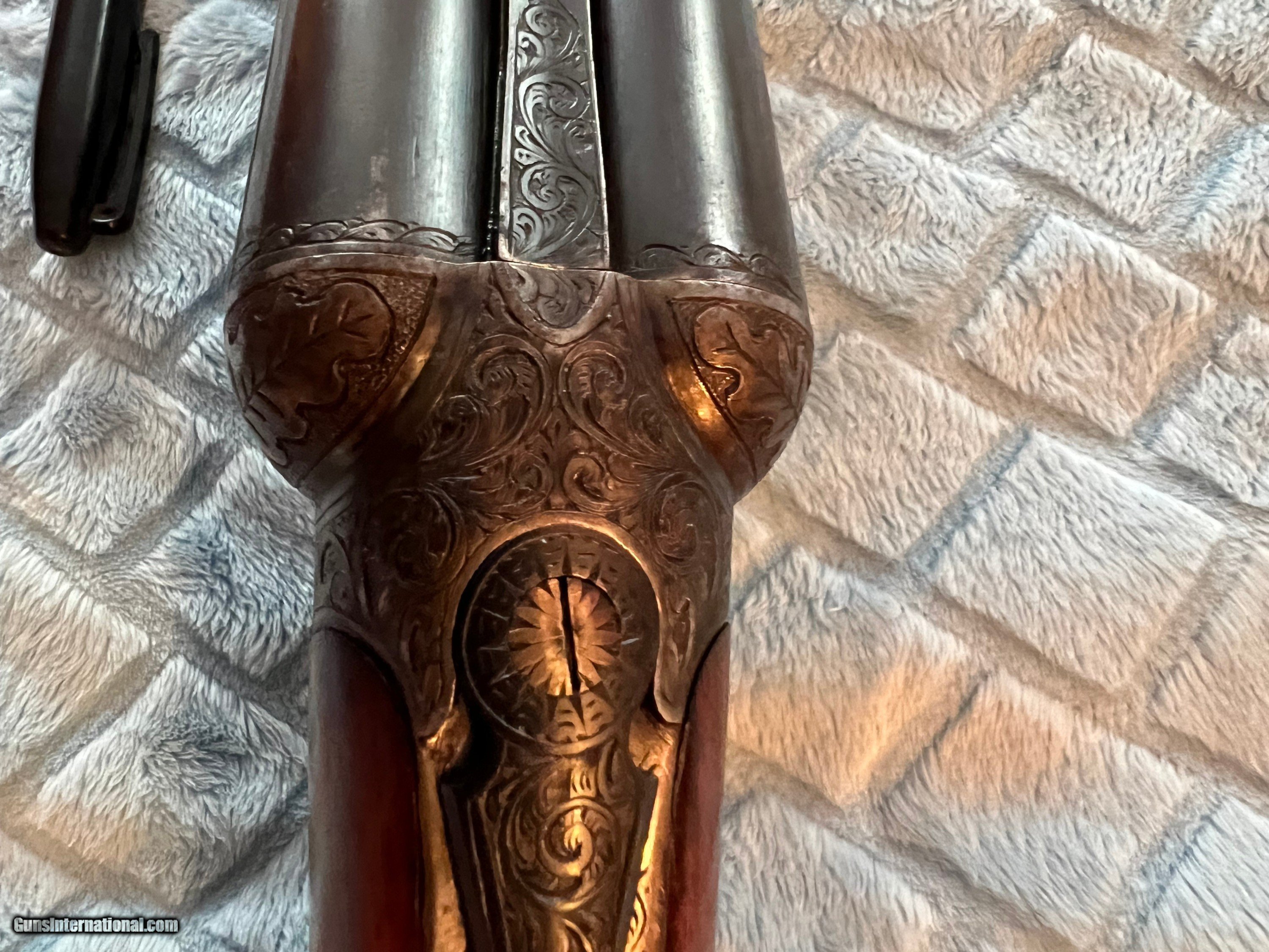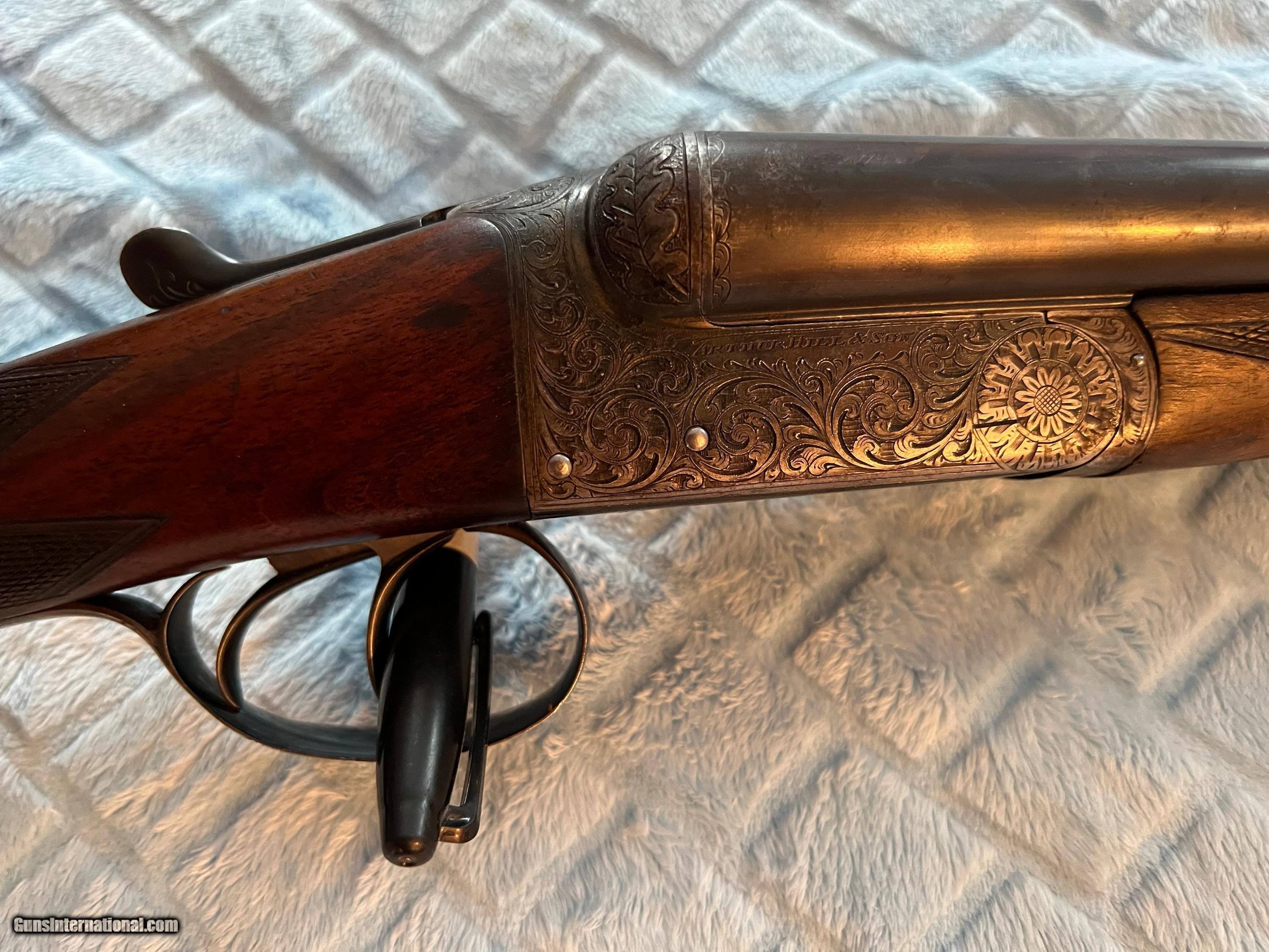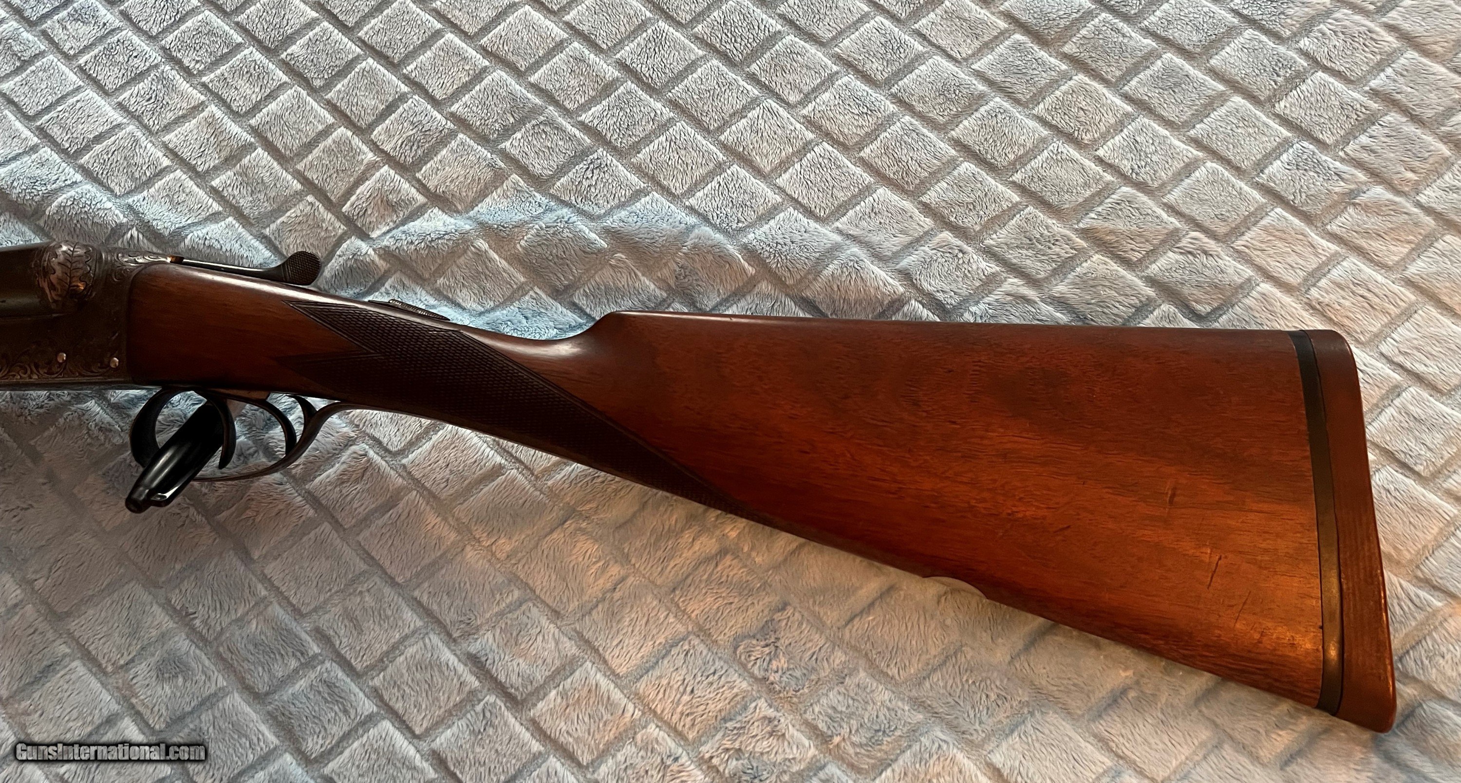 Description: Arthur Hill 16 gague 2.5". Bores are good, wood is sound, barrels ring true. Choked IC and Full and cast off for a right handed shooter. Small pit on the right barel near the breech. I have fired the gun several time shooting skeet and it functons fine. Extractors. Nice gun for a upland shooter. I'm left handed and with it being cast off I don't shoot it well. I am downsizing my collection to those guns I shoot and hunt with so this one needs to be in the hands of someone who will appreciate a good field gun. Private party to FFL. Cashier's check or money order. Price includes insured shipping. SOLD Shotgun Gauge: 16 Gauge Manufacturer: Arthur Hill Bore: 16 Chambers: 2.5 Ejectors: yes Condition: Good Metal Condition: good Wood Condition: good Bore Condition: good Barrel Type: Fluid steel Triggers: two Stock Comb: 1 5/8 Stock Heel: 3 1/8 Stock Cast: Off 1/4 Butt Pad: red rubber LOP: 15 1/2 Weight: 6 lb 2 oz Choke Left: Full Choke Right: IC Engraving: yes Proof:Nitro: yes |