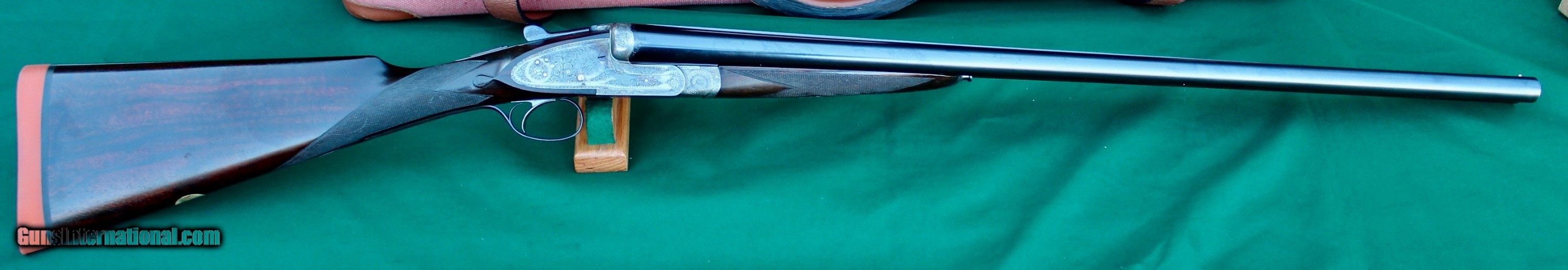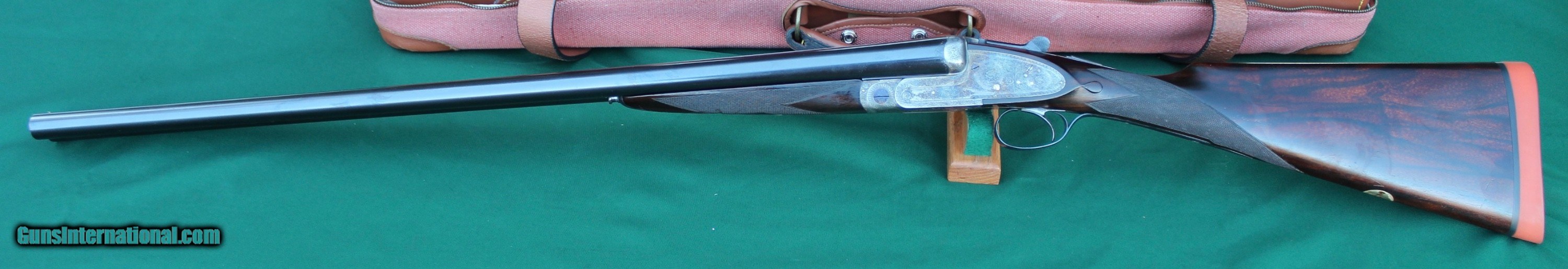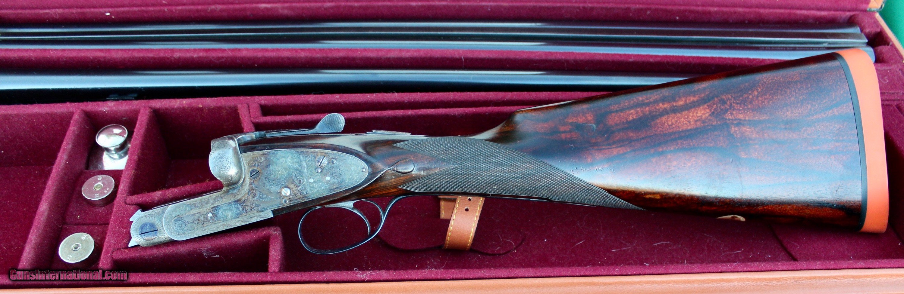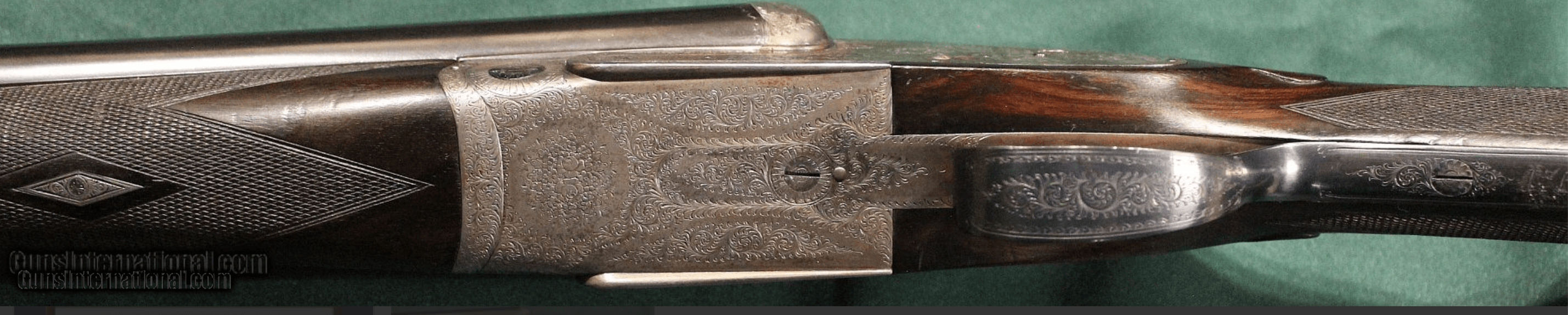 Description: Arthur Ilsley Best Quality Sidelock Ejector 12 Bore 2 Barrel Set. Arthur Ilsley was considered the Purdey of Birmingham. This gun is certainly reflective of that reputation. All work is superb. Both sets of barrels are in perfect condition with mirror smooth bores. Overall this gun is in excellent condition. Wood is sound. Checkering is sharp. Action is tight on the face. Single trigger functions perfectly. Ejectors are strong and in time. Hard to improve on this quality, no matter on what you spend! Maker: Arthur Ilsley & Co., Birmingham Gauge/Caliber: 12 Gauge Barrels: 28" - Both Sets w/ 2 3/4" Chambers. Walls: Set #1: .033 R & .030 L - Set #2: .024 R & .027 R. Bores: Set #1: .735 R & .733 L. Set #2: .733 R & .735 L. Chokes: IC&Mod & M&F. Constrictions: Set #1 .034 R & .043 L. Set #2 .006 R & .019 L. Engraving: Engllish Scroll Action: SLE Stock: Best Grade Circassian Butt: Silvers Pad L.O.P.: 14 1/2 Weight: 7 lbs. 11.4 oz. Stock Dimensions1 5/16 x 2 3/16 x 14 1/2 with 1/8 Cast Off. PRICE: $6295.00 Plus $75.99 Shipping to lower 48. AK & HI Shipping: 2nd Day Air $ 195.00 MAKE OFFER! SOLD |