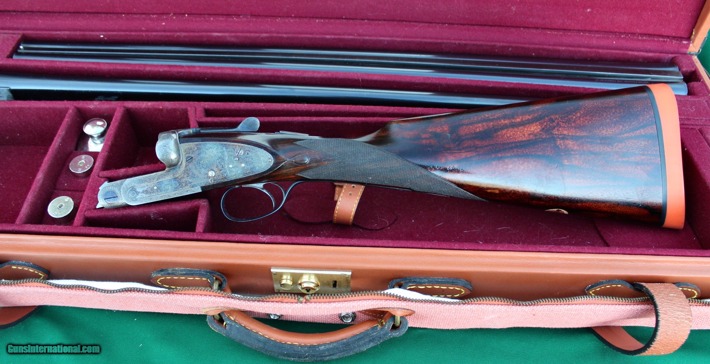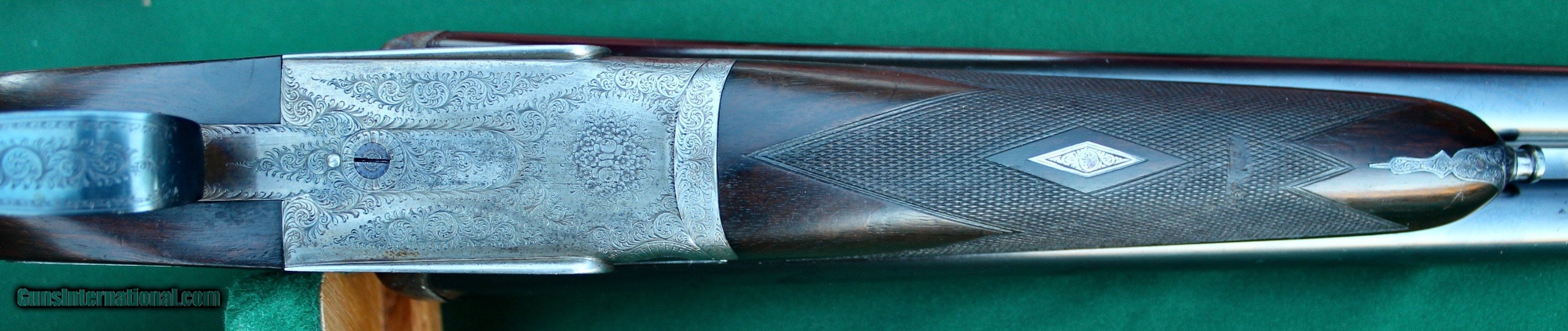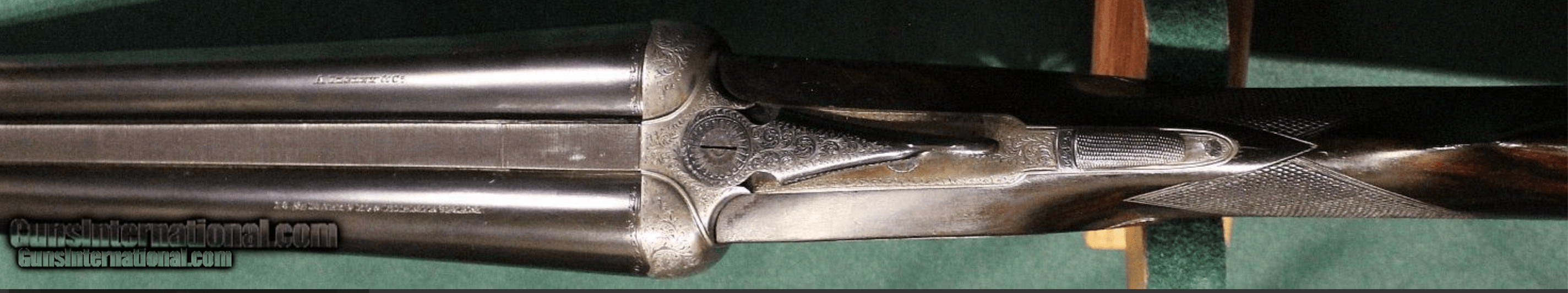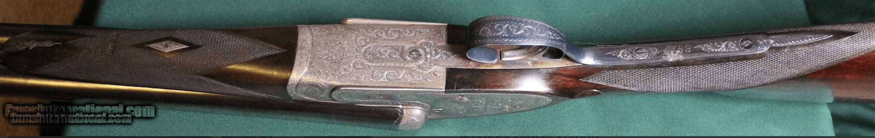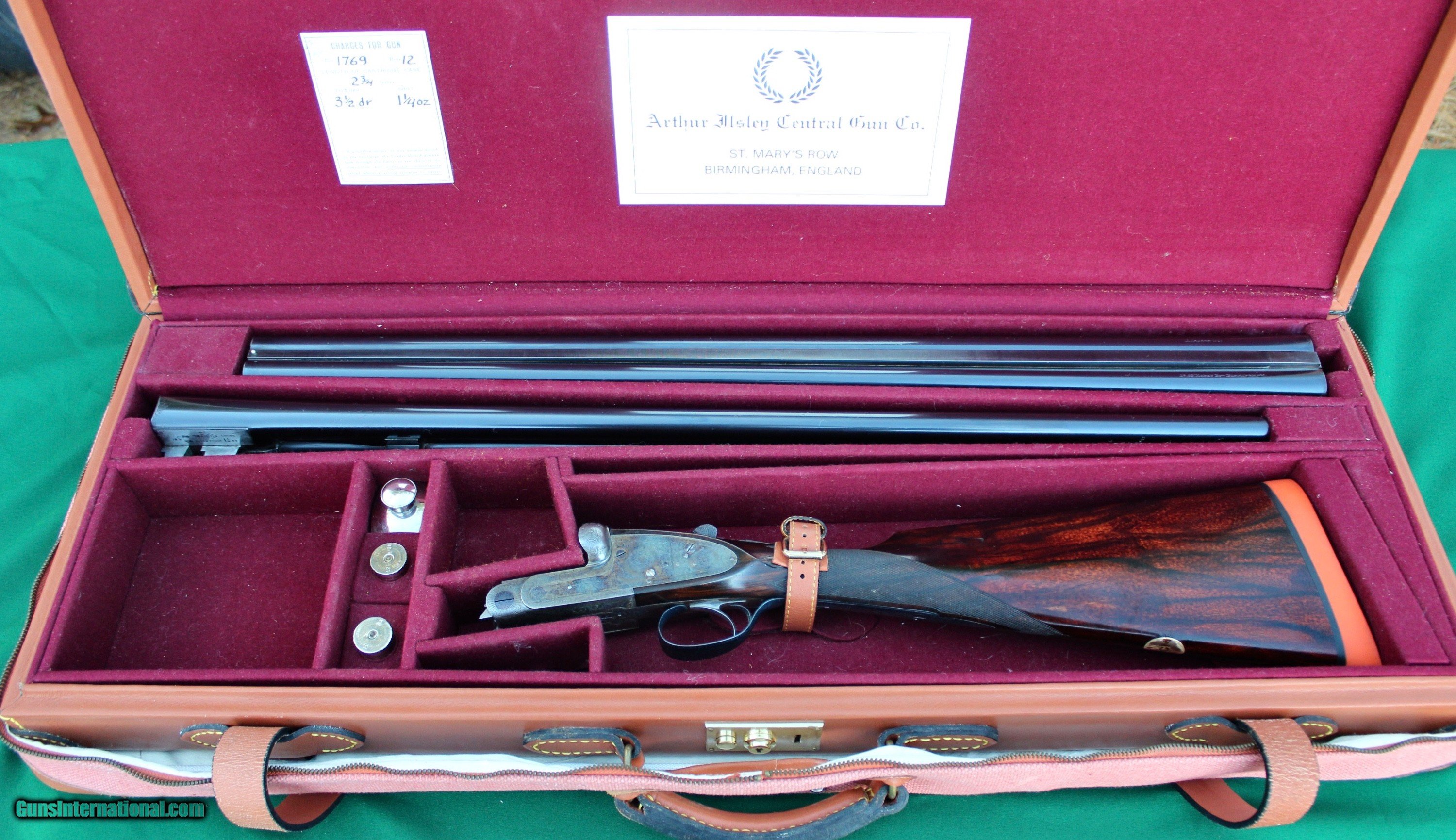 Description: Arthur Ilsley Best Quality Sidelock Ejector 12 Bore 2 Barrel Set. Arthur Ilsley was considered the Purdey of Birmingham. This gun is certainly reflective of that reputation. All work is superb. Both sets of barrels are in perfect condition with mirror smooth bores. Overall this gun is in excellent condition. Wood is sound. Checkering is sharp. Action is tight on the face. Single trigger functions perfectly. Ejectors are strong and in time. Hard to improve on this quality, no matter on what you spend! Maker: Arthur Ilsley & Co., Birmingham Gauge/Caliber: 12 Gauge Barrels: 28" - Both Sets w/ 2 3/4" Chambers. Walls: Set #1: .033 R & .030 L - Set #2: .024 R & .027 R. Bores: Set #1: .735 R & .733 L. Set #2: .733 R & .735 L. Chokes: IC&Mod & M&F. Constrictions: Set #1 .034 R & .043 L. Set #2 .006 R & .019 L. Engraving: Engllish Scroll Action: SLE Stock: Best Grade Circassian Butt: Silvers Pad L.O.P.: 14 1/2 Weight: 7 lbs. 11.4 oz. Stock Dimensions1 5/16 x 2 3/16 x 14 1/2 with 1/8 Cast Off. PRICE: $6295.00 Plus $75.99 Shipping to lower 48. AK & HI Shipping: 2nd Day Air $ 195.00 MAKE OFFER! SOLD |