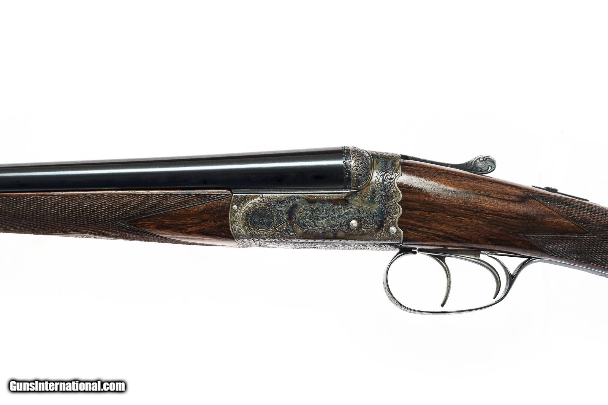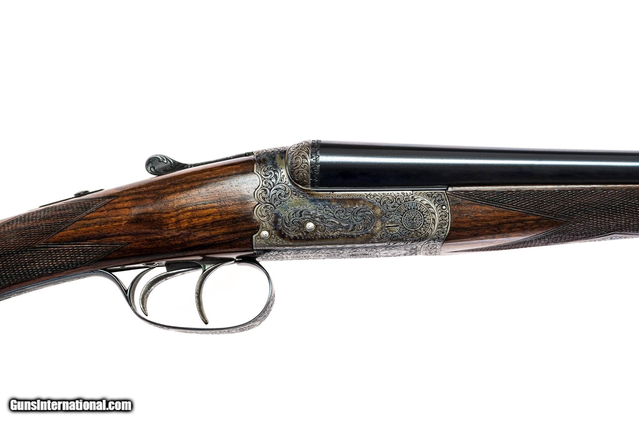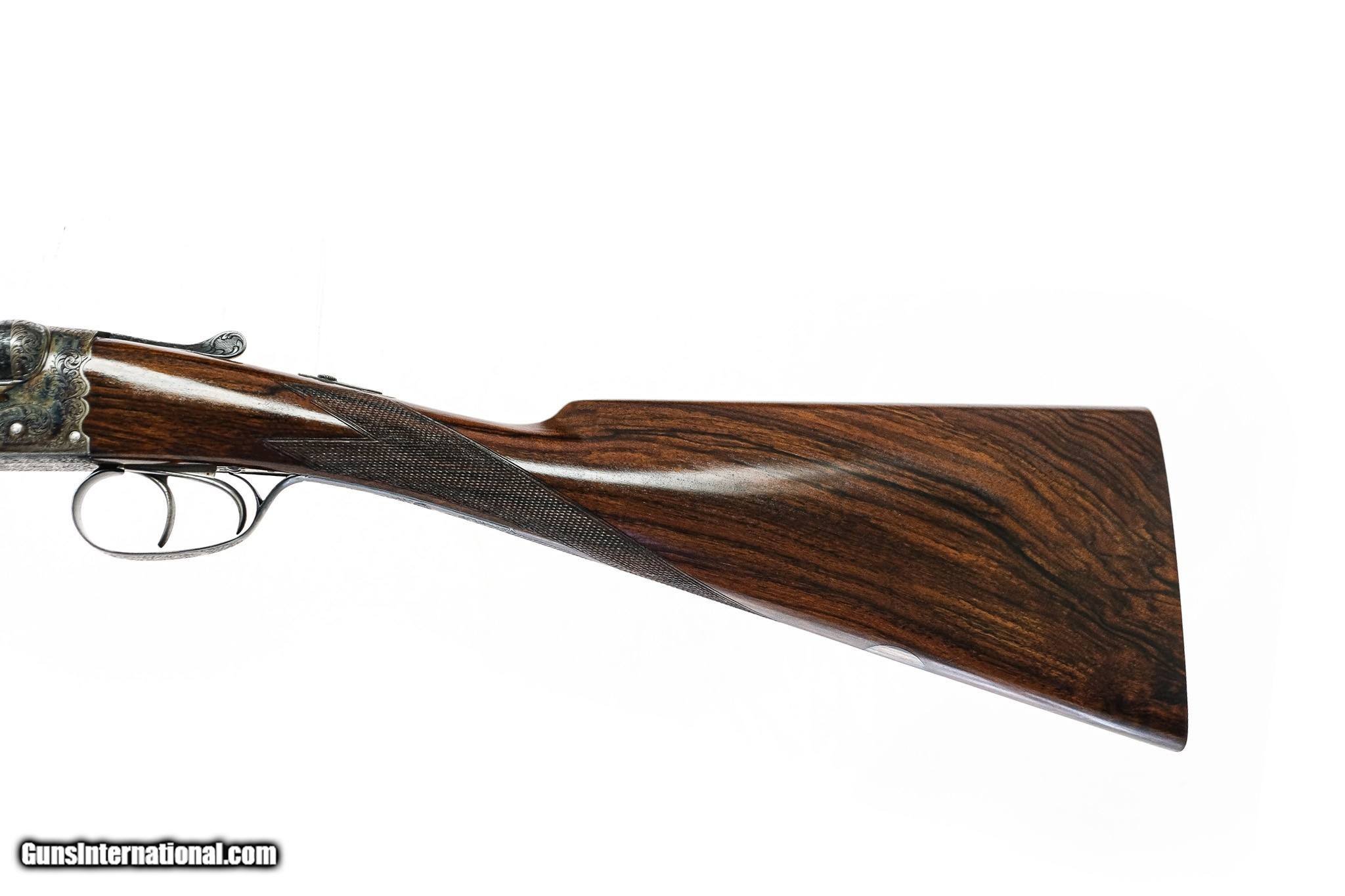 Description: B.E. Chaplin - Scalloped Boxlock, SxS, Casbard Engraved, 28ga. 26" Barrels Choked M/IM. Casbard Engraved scalloped box lock automatic ejector 26" barrels, 2 ½" chambers. Choked M/IM. This gun is profusely engraved with foliate scroll, maker’s name, and banner. 14" highly figured stock, built in 1979 for Lord Rank and was engraved by Casbard. The gun is 100% unused and new. Straight grip, checkered butt. This is a very high-grade gun built to the highest standards. In the maker’s lightweight leather case, this gun has 100% case color, barrel blue and wood finish. A gorgeous lightweight small bore English gun that is new. Inv: 82977 4 lbs. 10 oz. 14 1/8" x 1 ½" x 2 ¼" $8,995.00 The largest, most diverse, high-grade shotgun and firearms inventory in history. There is no one even close and a service department to back up everything we sell with our unparalelled warranty to support our customers exclusively. If someone tells you they have a larger inventory, just look for yourself. SOLD |