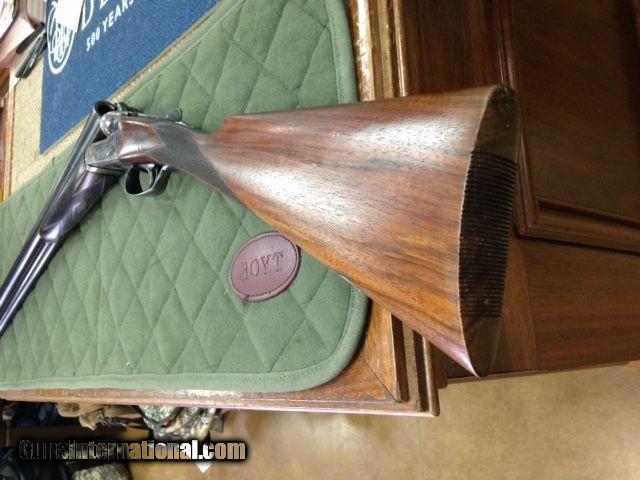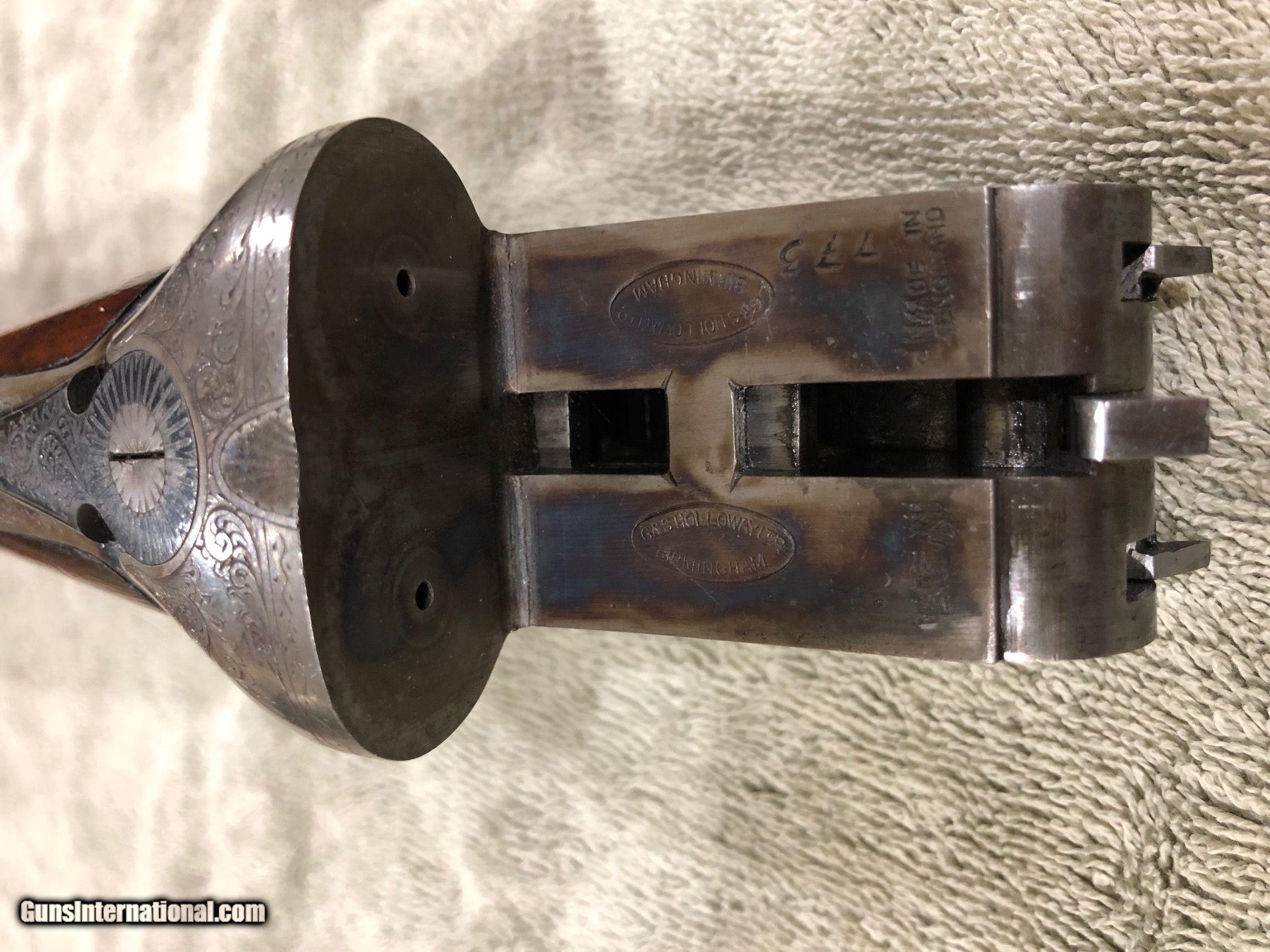 Description: Beutiful English Side by Side in 20 Guage with auto ejectors and mechanical trigger and barrel selector. Shipping $50.00 SOLD Manufacturer: GS Holloway Birmingham England Model: Side by Side Serial Number: 773 Caliber Info: 20 Guage Bore: Exelent Chambers: 2 and 3/4 Ejectors: Auto Condition: Extremely Good Metal Condition: Extremely Good Wood Condition: Extremely Good Bore Condition: Brite Barrels: 26 Barrel Type: side by Side Triggers: one, mechanical LOP: 14.00 Chokes: Fixed Choke Left: IC Choke Right: LM Proof:Nitro: 3 1/4 ton |