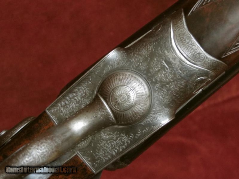 Description: *** JUST IN FROM THE U.K. *** This lovely old Boss no 2717 manufactured in 1869 was found in an extremely parlous state: one broken hammer, breech face heavily corroded, no extractor cam, damaged forend wood, heavily pitted barrels, one could go on and on. However, sensing that the basic structure was still sound, we got to work on it and now have this lovely, classic Boss Rotary Underlever hammergun to offer our discerning customers! The work, undertaken by Toby Barclay at Heritage Guns UK, has been a great success: the barrels were TIG sleeved to their original length, hammer repaired, a new extractor cam fabricated and wood given a new lease of life. The engraving is still crisp on the locks and action and the wood glows with fabulous condition. With its 2 ¾" chambers, nitro proof and great dimensions, it will be particularly desirable to any connoisseur of fine English hammerguns who wishes to shoot their pride and joy. *** The action is of traditional bar action design and features: double triggers; Stanton design rebounding locks; High Dolphin hammers; percussion fences; double bite 'Jones Rotary Underlever'; cross-wedge forend fastener; and engraved iron butt plate. As mentioned above there are TIG welded repairs to the breech face. Gun weighs 6lb 14oz. Engraving style is Best foliate scroll (some wear near knuckle). Trigger pulls measure approximately: Front trigger 4 lbs Rear trigger 4 1/4 lbs. *** The TIG sleeved barrels are 29 3/4" in length, chambered for 2 ¾" (70mm) cartridges and are of brazed 'dovetail' lump construction with soft soldered ribs. Top rib is of the smooth, concave, game type. London reproof for 70mm nitro powder cartridges in 2013. The right barrel is bored 0.729 with a constriction of 0.012 for Improved Cylinder choke. Minimum wall thickness is 0.031. The left barrel is bored 0.728 with a constriction of 0.022 for Modified choke. Minimum wall thickness is 0.030. The straight hand stock and splinter forend are crafted from highly figured walnut. The stock is lightly cast-off for a right-handed shot, features a vacant white metal oval, well-defined drop points and is finished with an engraved iron butt plate secured by engraved screws. The forend tip is engraved steel. Superb traditional linseed oil finish. The stock dimensions are 14-1/16” to a steel butt plate by 1-9/16” by 2-1/4”. Slightly cast off for the right hand shot. I give a 3-day non-firing inspection and will only accept returns if gun is not as described.*** Don’t miss out on this chance to own a fabulous bar action hammergun from one of the top makers in the British guntrade. *** US Agent for Heritage Guns UK. SOLD Antique: Yes |