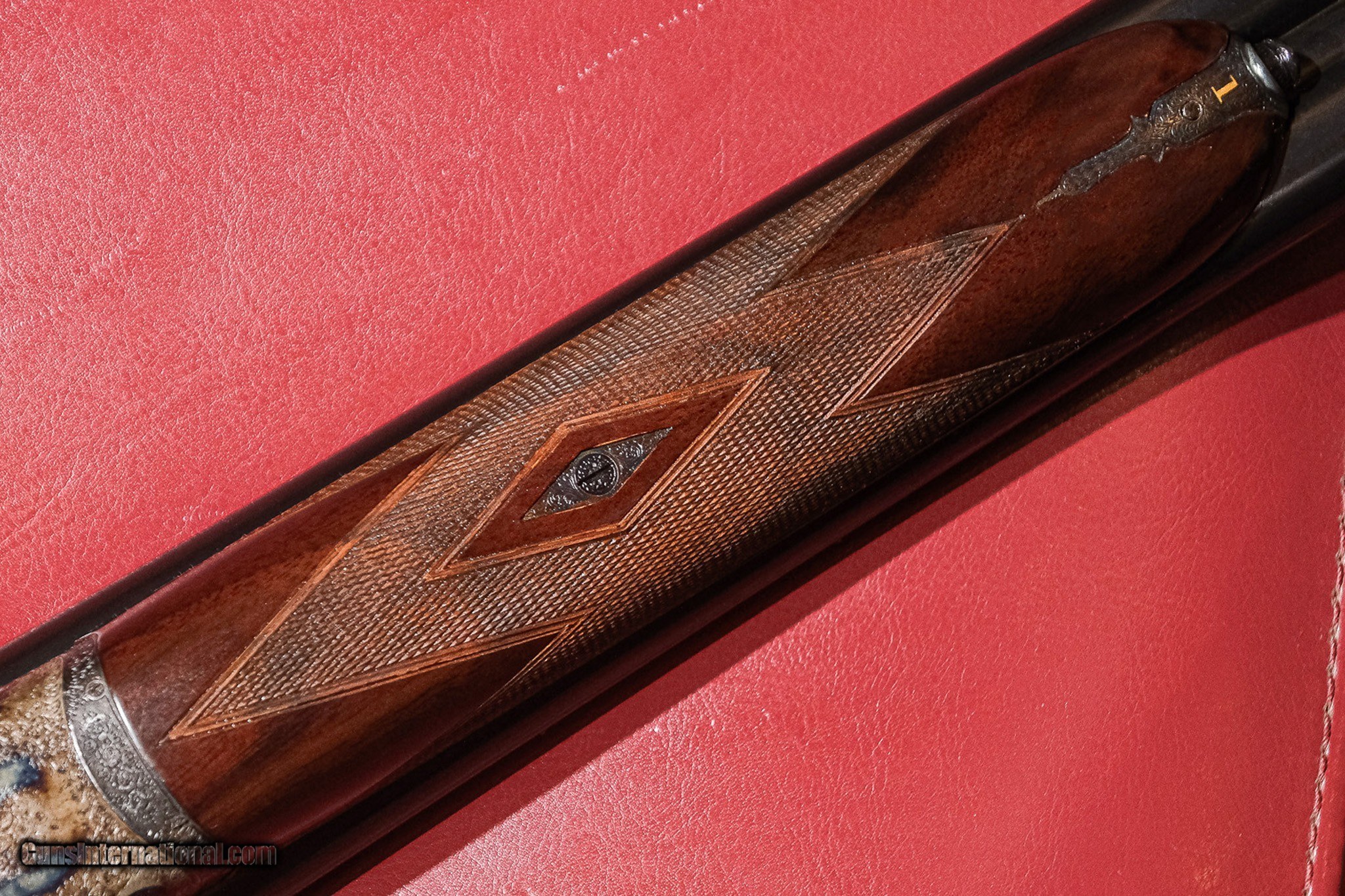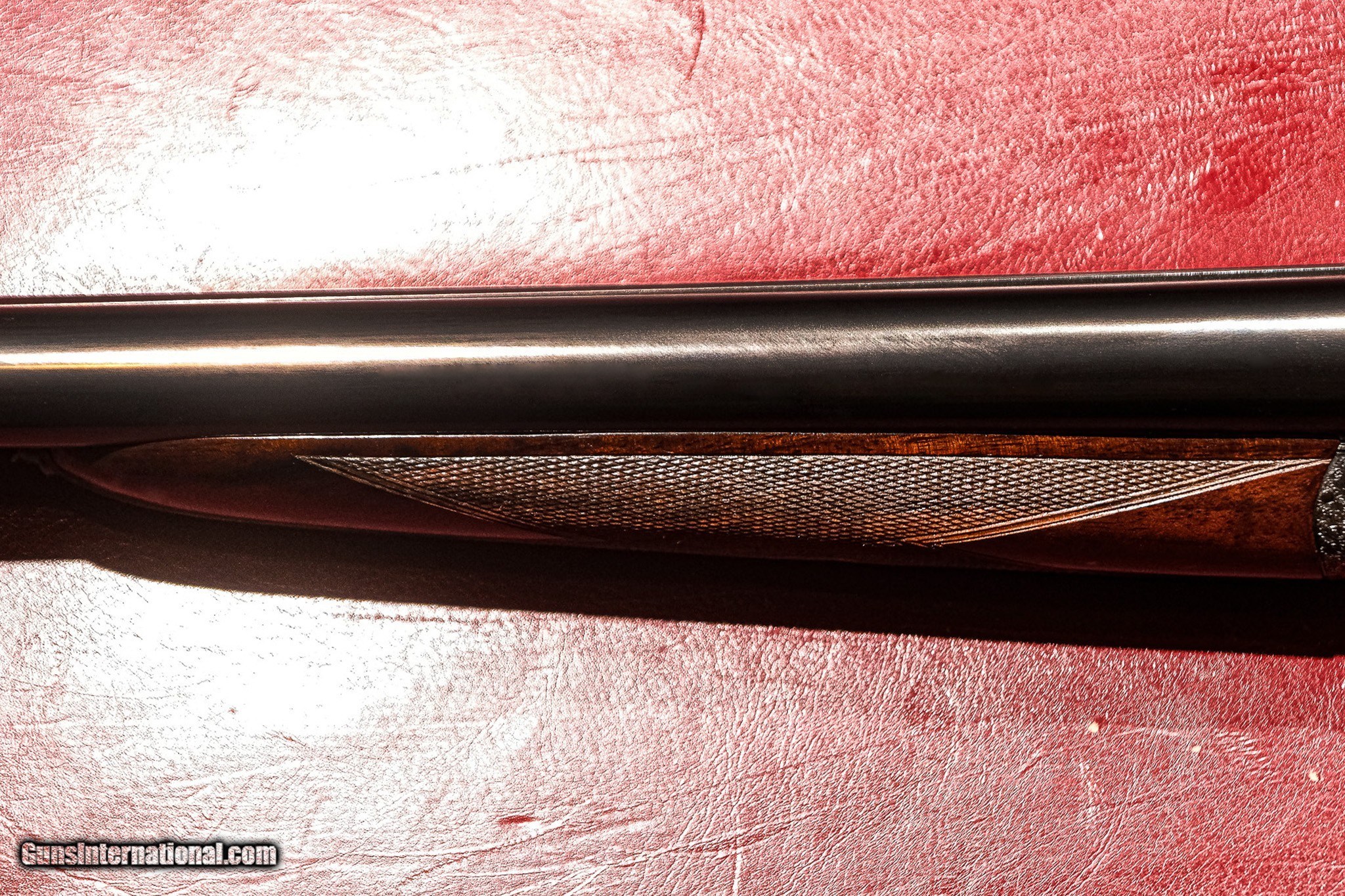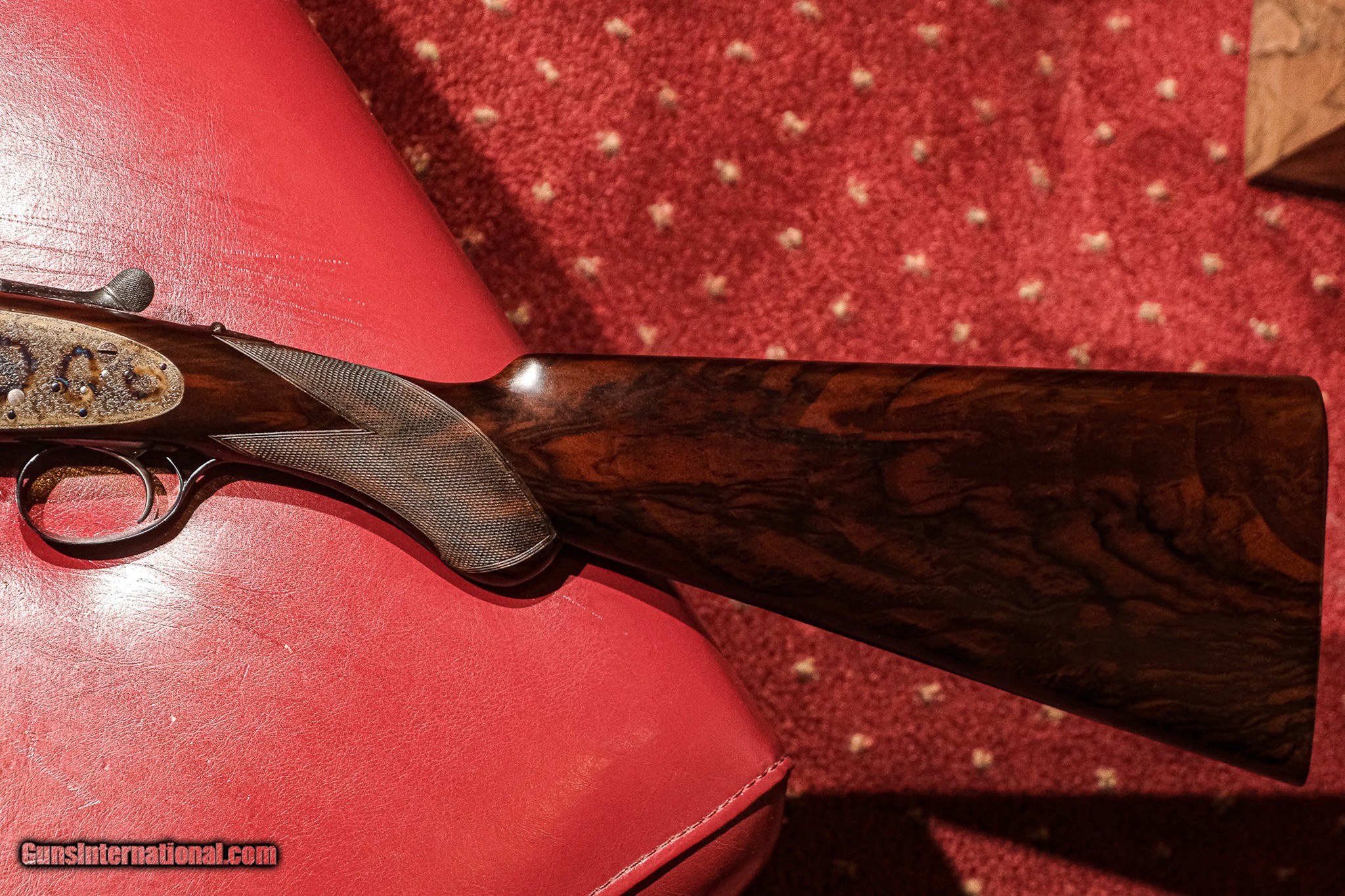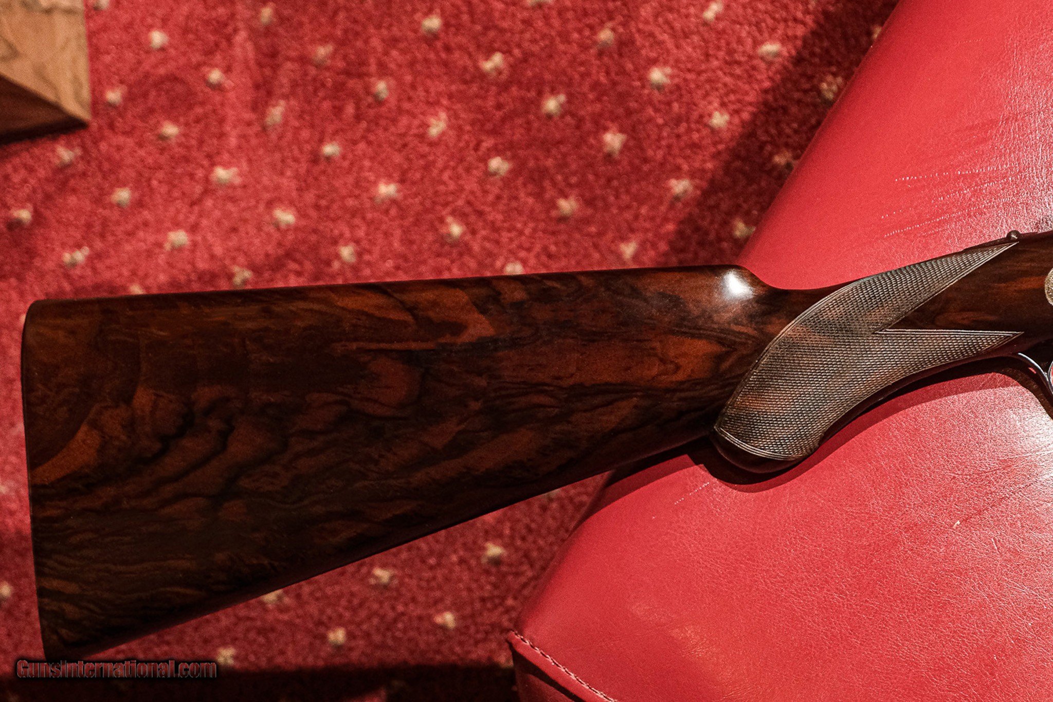 Description: Boss & Co. - Self-Opening, SxS, Lightweight, 12ga. 27" Barrels. Made in 1930. Gold #1, 2 ½” chamber, .0275 choke, semi round pistol grip, checkered butt, very highly figured Turkish walnut, splinter forend. The finest Sumner Boss inscription ever engraved. Gun retains virtually all the case color, barrel blue and wood finish. Vacant gold oval, perfect screws. Again, the very best of everything is on this gun. It is tight and as perfect as the day it was made. In the Boss A&F case with its correct accessories. Gun shows little to no use and was built at the height of gun making. One of the finest items available. Inv: 87304 6 lbs. 4 oz. 14 3/4" x 1 1/2" x 2 1/2" $29,995.00 The largest, most diverse, high-grade shotgun and firearms inventory in history. There is no one even close and a service department to back up everything we sell with our unparalelled warranty to support our customers exclusively. If someone tells you they have a larger inventory, just look for yourself. Price: $29,995.00 Contact Seller |