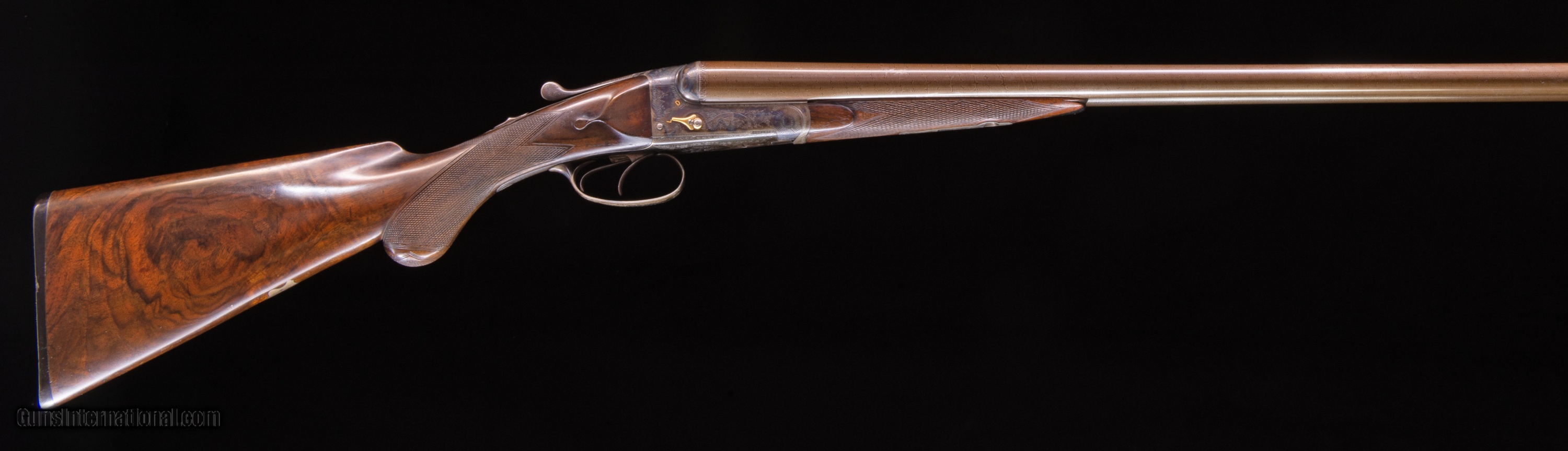 Description: Boxlocks - A tight and tidy example of one of the prettiest Bonehill guns we have had in the shop. I especially love the fine Damascus. *** Note: To see this gun with high resolution photos and a zoom-in feature, go to the vintagedoubles main site and search for the gun ID: 4698 or browse the main site to see our full gun collection. SOLD Manufacturer: C.G. Bonehill 12g ~ A very showy English boxlock with super Damascus! Model: None Serial Number: 387 Ejectors: No Barrels: 29 Barrel Type: Damascus Action: Boxlock Gauge Info: 12 gauge Stock Comb: 2 Stock Heel: 3 1/4 Stock Cast: 1/8 LOP: 14 1/4" with or Weight: 8lbs 4ozs Choke Left: .032 full Choke Right: .024 full Proof:Black: 2 1/2 Minimum Wall Thickness Left: .031 Minimum Wall Thickness Right: .029 |