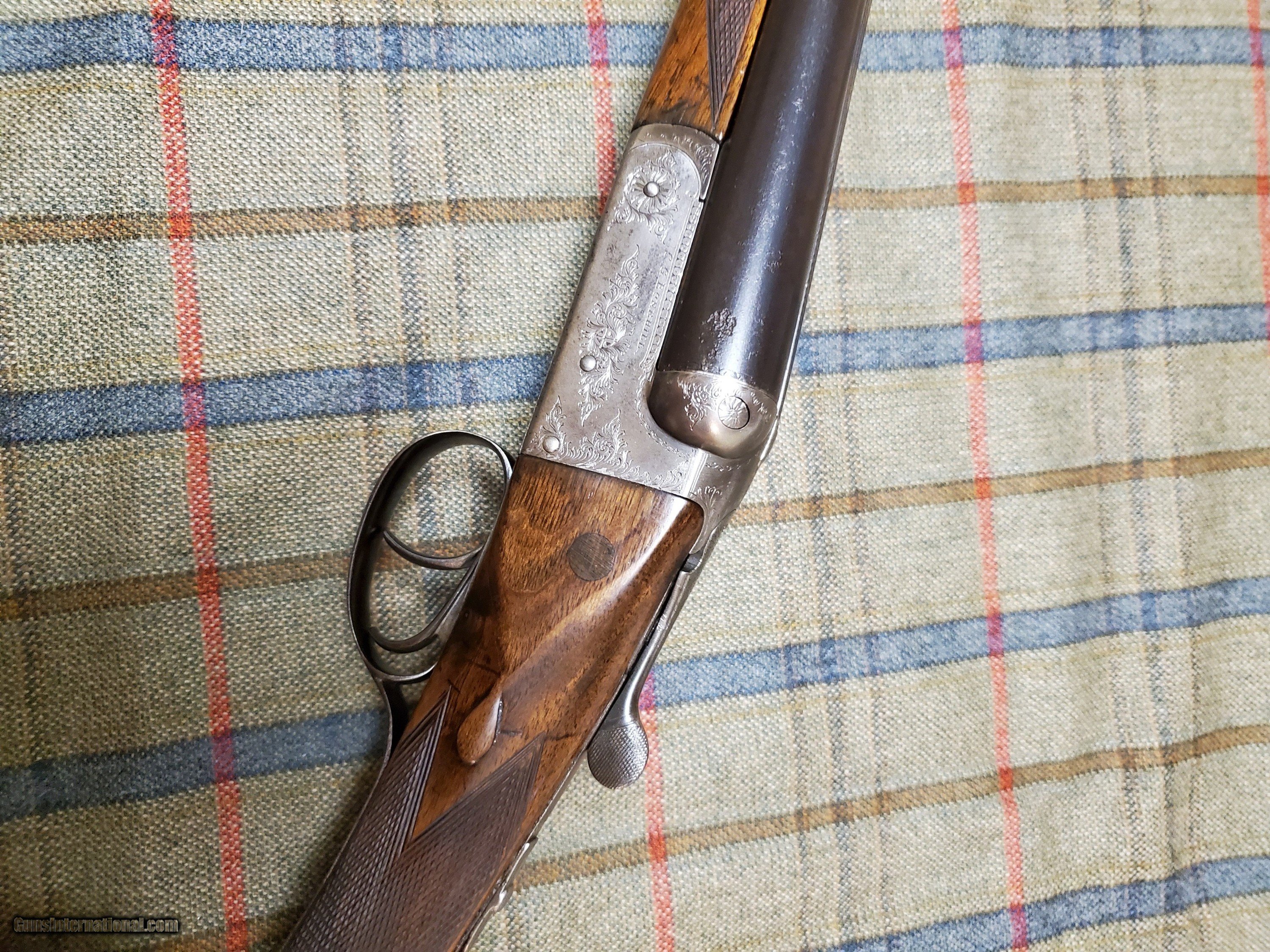 Description: C.G Bonehill was a well known Biringham maker of english doubles. Gun is birmingham nitro proofed for 2 1/2" shells 7/8 oz load. RST make a lovely 3/4oz load at a v affordable price which is perfect for this gun. Dimensions are good LoP to leather pad extension to 14 5/8 or to wood 13 1/4 so easily customizeable to any specific length. Stock has been repaired a long time ago at the neck per photos but well completed so nothing to worry outside of cosmetics. Gun must have been stored damp at some point as pitting is visibile on the exterior to barrels towards the left hand barrel chamber (again cosmetic). The gun locks up tight has a cross bolt so nice and strong and the bores are nice and bright with no signs of piting. This is no cabinet queen but if your looking for a 20 gauge double you can carry all day in the field or woods not have to worry about scatching or denting it then this would fit the bill. Price reflects condition if you need more details just ask. Update 30 July - provisionally sold pending funds SOLD Shotgun Gauge: 20 Gauge Manufacturer: C.G. Bonehill Model: Boxlock Barrel Length: 28 Chambers: 2.5 inches Ejectors: no Condition: Refer to photos Metal Condition: Refer to photos and details Wood Condition: Repair to stock Bore Condition: Good clean and shiny Action: Boxlock with cross bolt Triggers: 2 Stock Dimensions: 14 5/8 to end of pad 13 1/4 to wood Stock Comb: 1 1/2 Stock Heel: 2 Stock Cast: No Butt Pad: Leather Rib: Non vent cross filed Weight: 5lbs 12 oz Choke Left: M Choke Right: F Case: No Proof:Nitro: Yes |