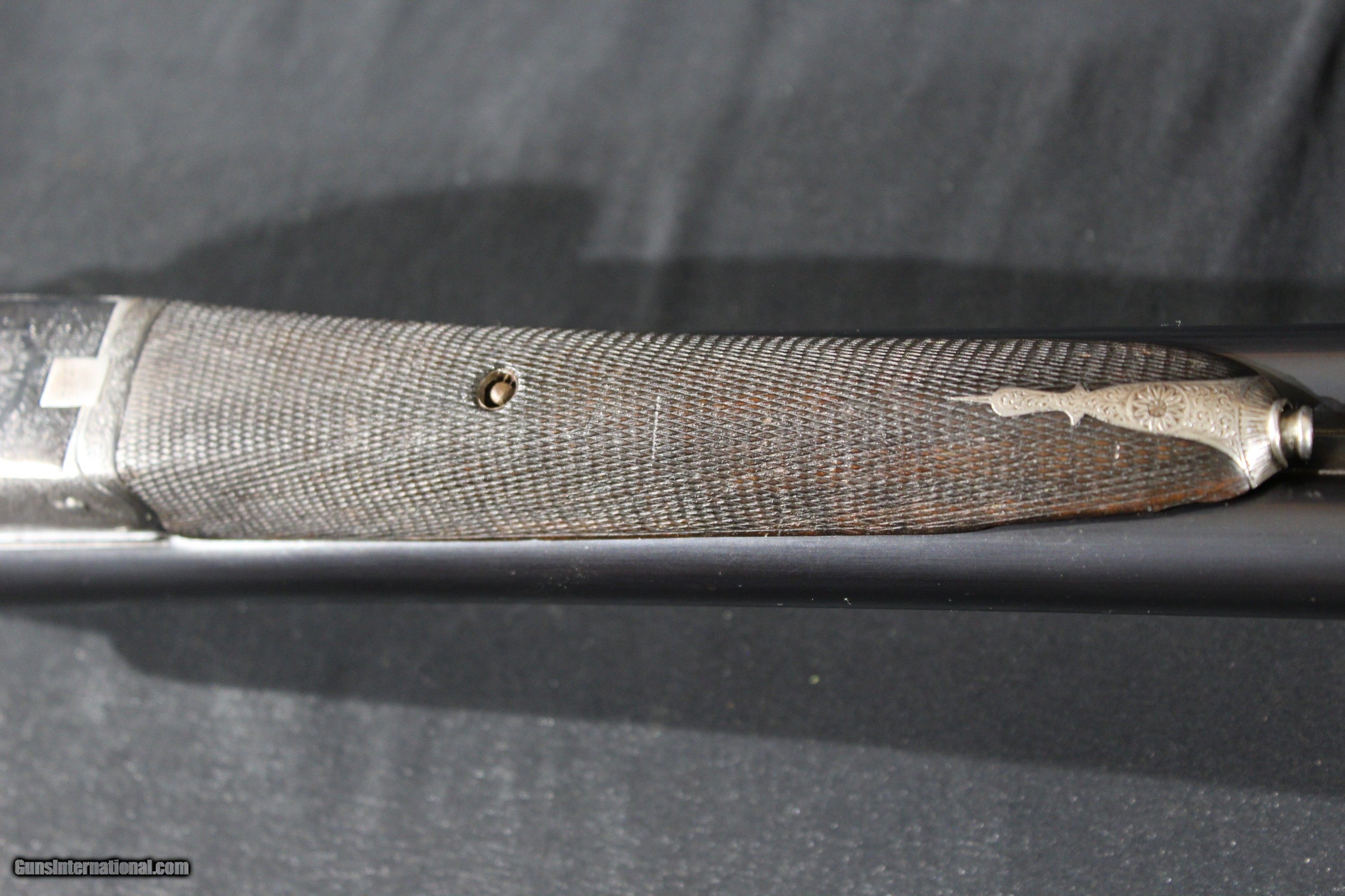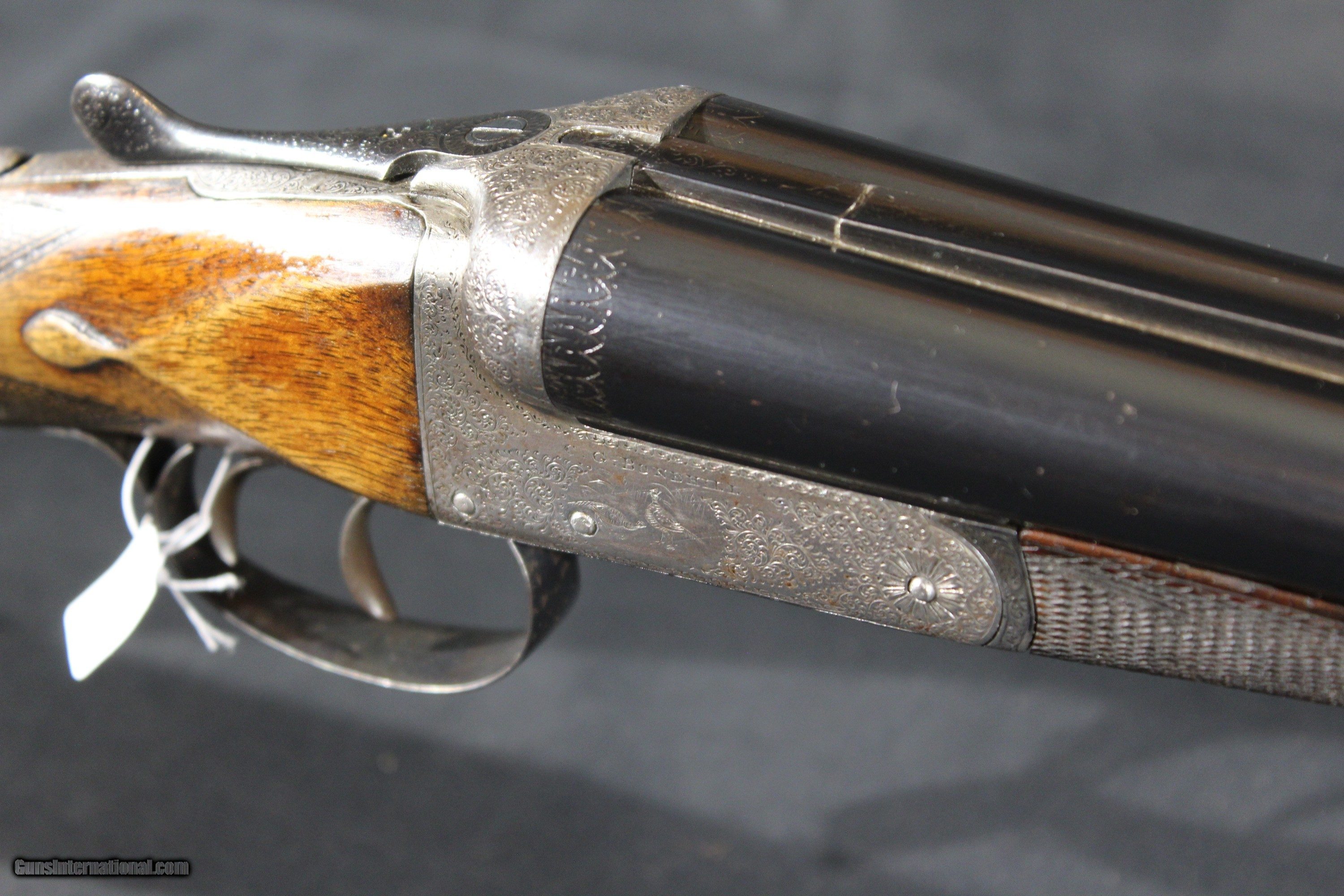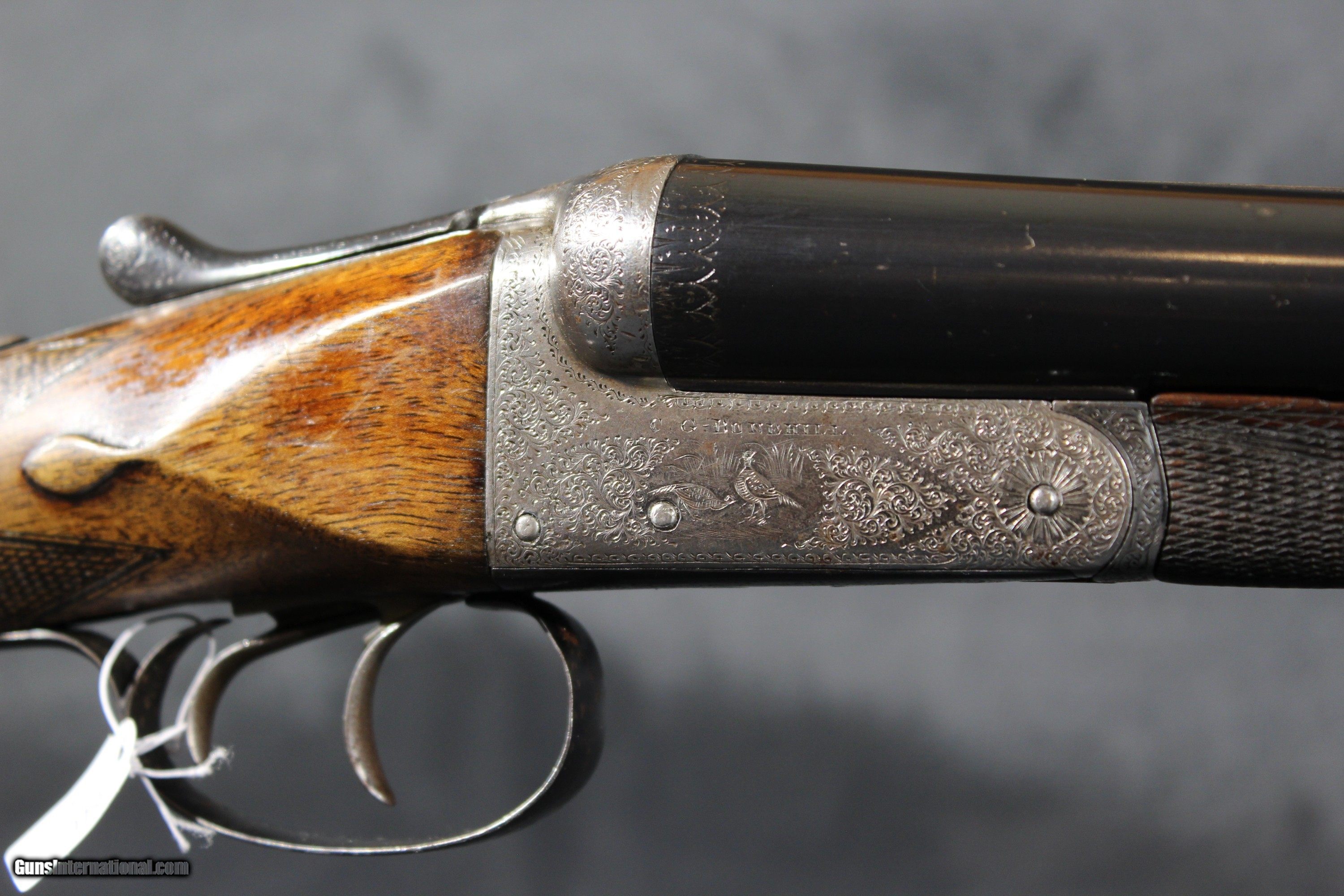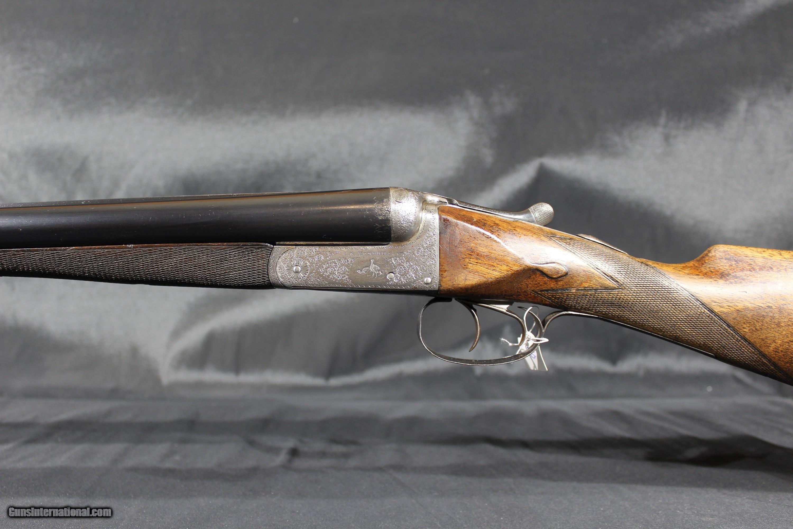 Description: C.G. Bonehill 12ga 21/2" chambers is nice condition. Gun is engraved wit birds on both sides of the locks. It is a 12ga ejector with a lop of 14 1/4" choked Full and Cylinder. The drop at comb is 13/8" and drop at heel is 23/8" barrels are 30" and weight is 6.2LBS. Bonehill were a major gun maker in Birmingham, England, and produced guns ranging from sound middling quality up to very nearly "best". Their "Belmont Interchangeable" was one of the first quality shotguns to be made using what was known as "the American system" ; all parts could be replaced without hand fitting. In early 1880 Winchester entered into an agreement with Christopher G. Bonehill of Birmingham to produce double barrel shotguns bearing the name of the Winchester Repeating Arms Company. Sold through the company's New York City Depot, these shotguns retailed for prices between $40 and $85, a tidy sum in those days and indicative of good quality. SOLD Curio/Relic: Yes Shotgun Gauge: 12 Gauge Manufacturer: C.G Bonehill Model: sxs Serial Number: 414X Barrel Length: 30 Bore: vg Chambers: 21/2 Ejectors: yes Condition: good Metal Condition: good Bore Condition: vg Barrels: good Barrel Type: steel Action: Boxlock Ejector Triggers: double Stock: walnut |