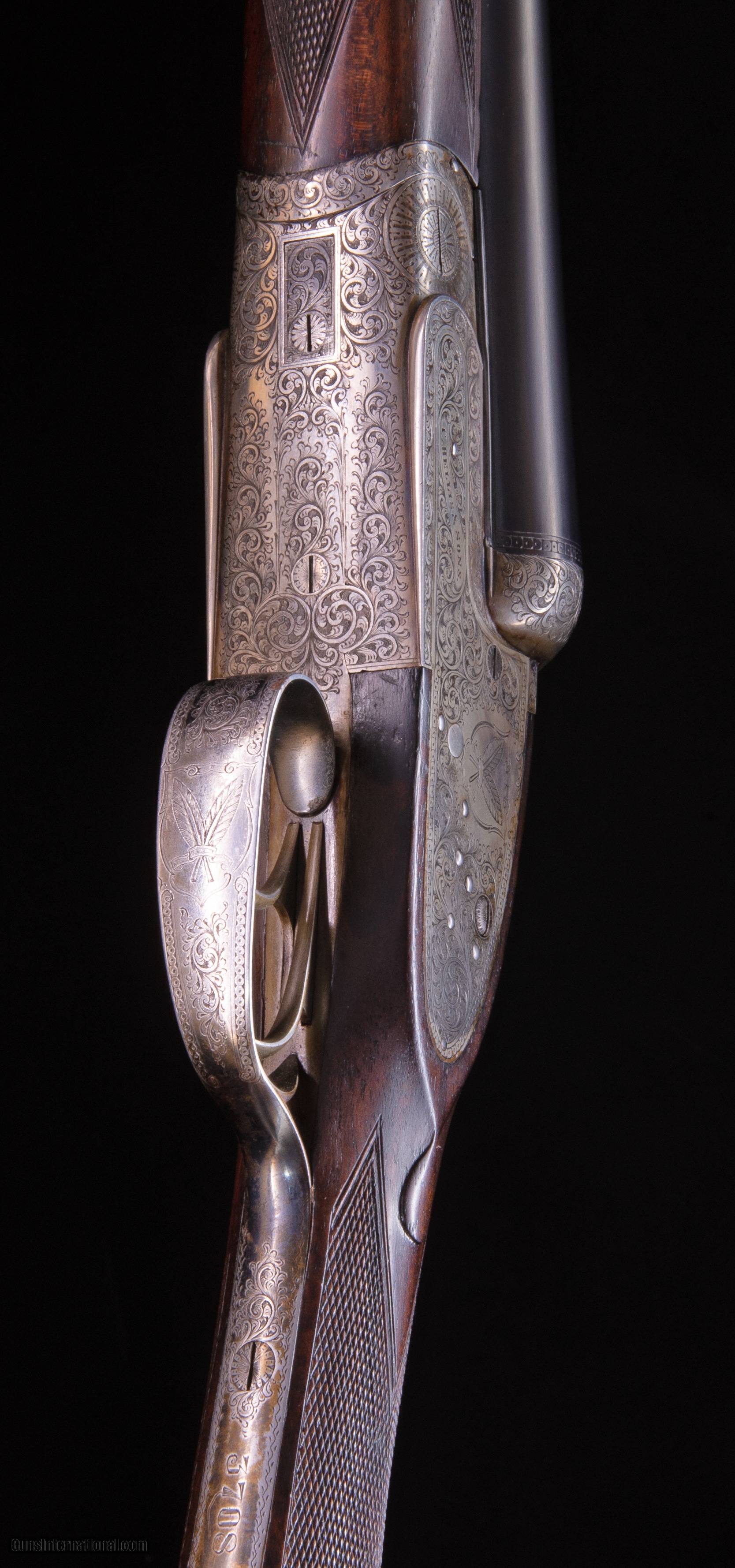 Description: Hammerless Sidelocks - I love this little double. If it was a 16g. I would keep it ( I draw the lines at 16g. guns for myself as otherwise I would want to keep to many guns!). This gun has a lot of condition.