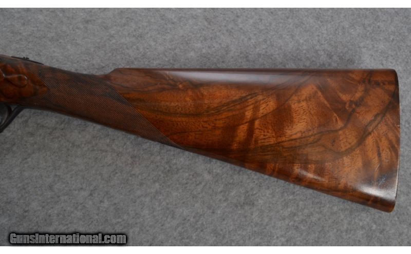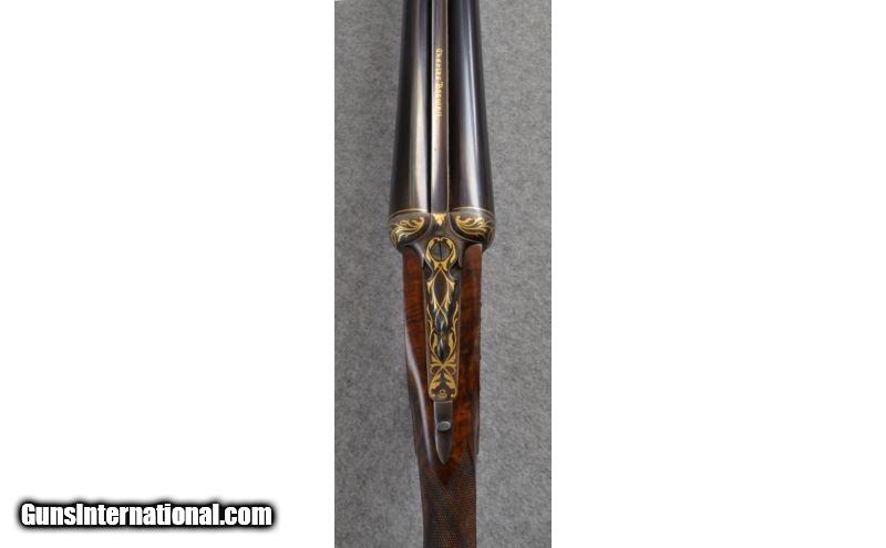 Description: SOLD Manufacturer: S/N 18567 Caliber Info: 12 Gauge. Chambers: 2 3/4 Inch chambers with ejectors. Metal Condition: Excellent condition. Fine gold inlay throughout. Wood Condition: Very few fine scratches and minor dings on the left side of the buttstock. Bore Condition: Very Good Condition. Bright and shiny. No bulges or pitting noted. Barrels: 27 3/4 Inches. Triggers: LOP - 13 1/4 and 14 Inches. Stock: Highly figured and checkered walnut. Stock has upgraded wood. Fore End: Highly figured and checkered walnut. Has upgraded wood. Butt Pad: Checkered wood butt plate in the European tradition. Weight: 7 Lbs 0 Oz as shown Sights: Front bead. Chokes: Fixed Modified and Improved Modified chokes. (.028 and .030) Extras: Includes a factory leather case. Item Location: Lone Tree, CO |