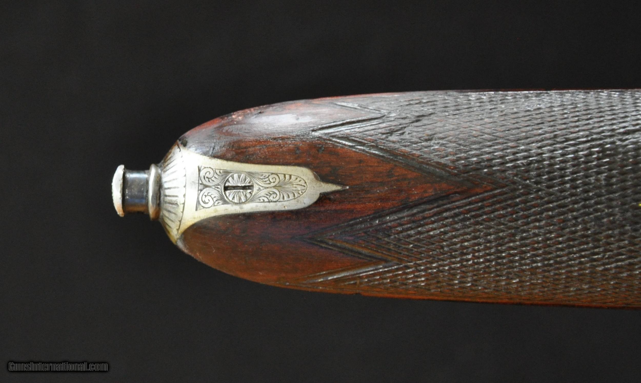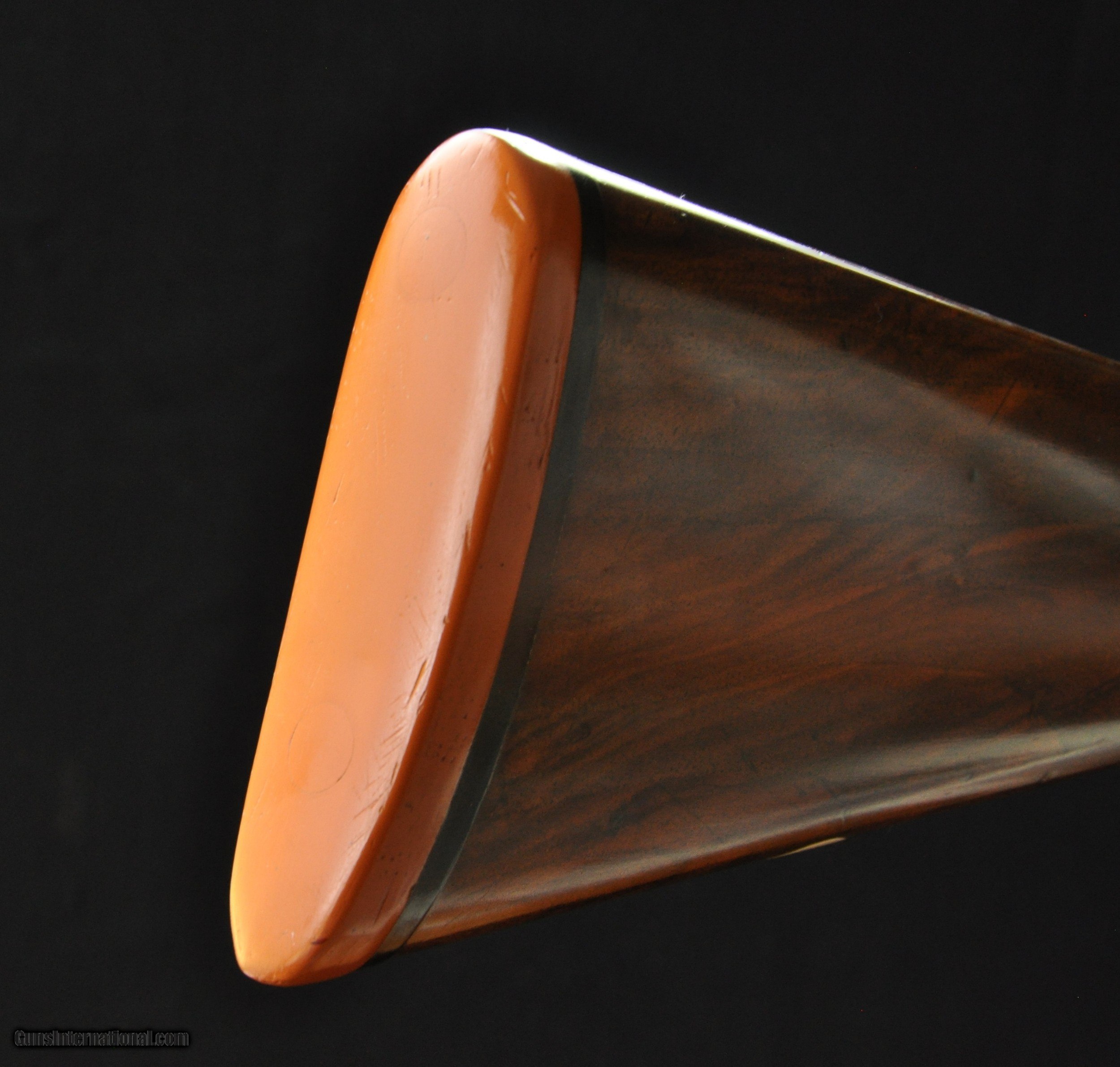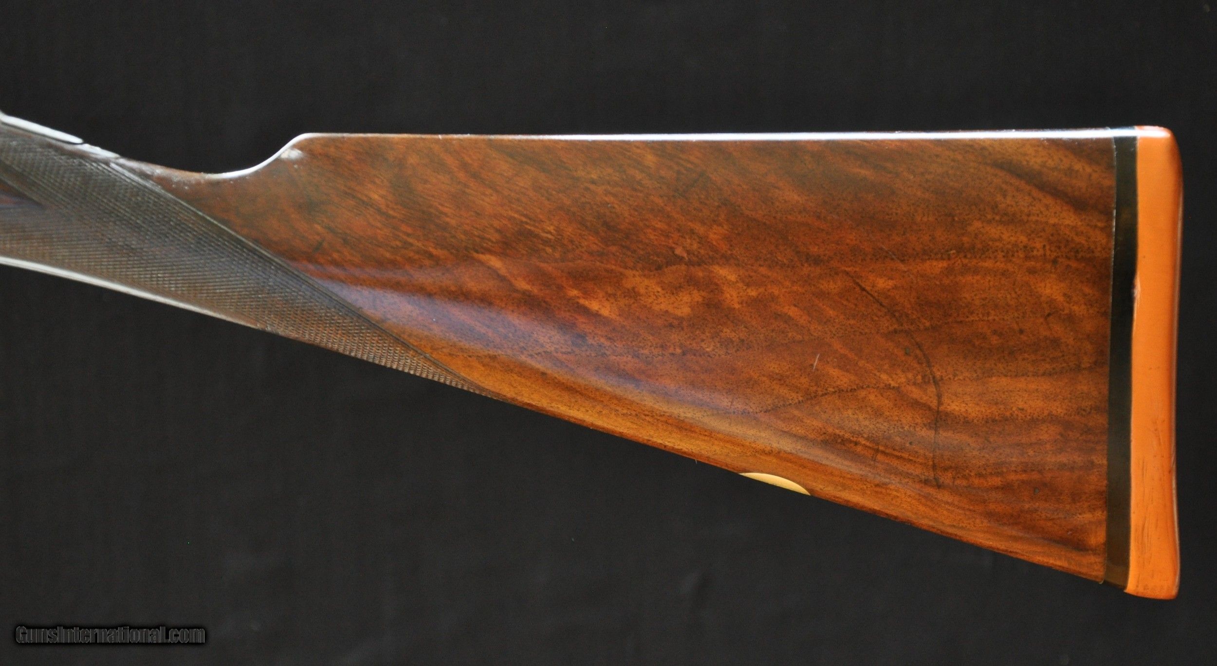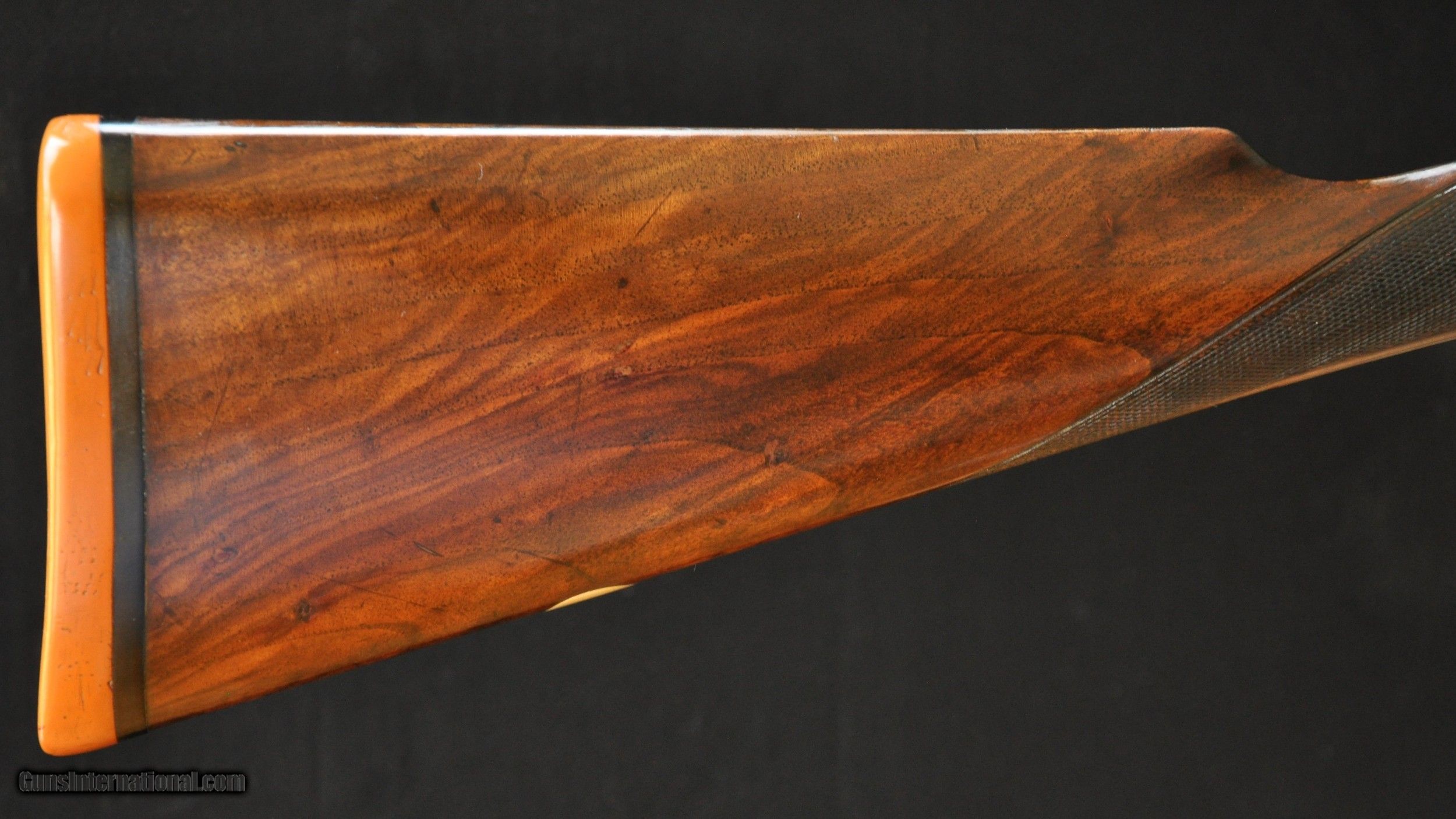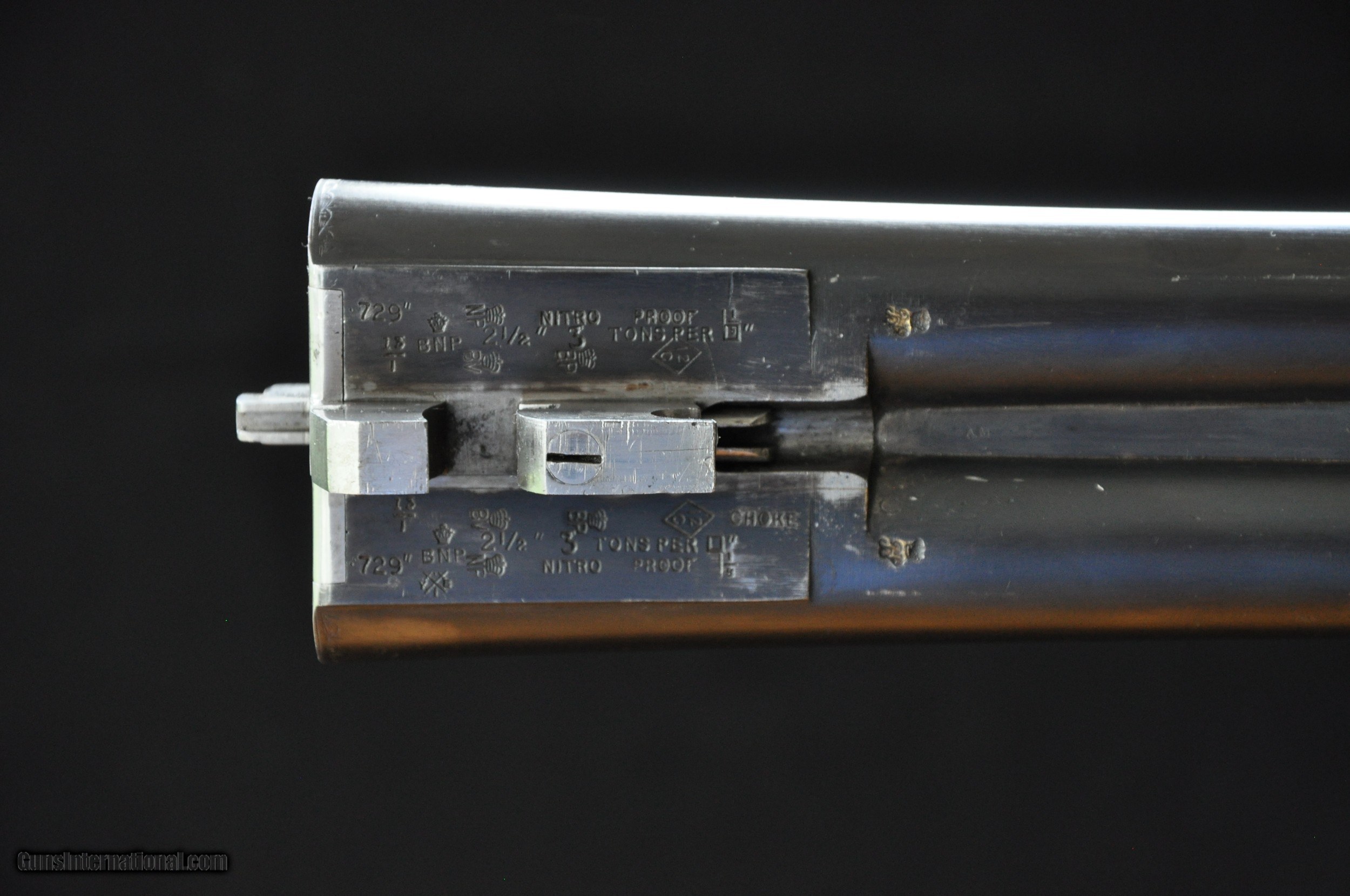 Description: **** SOLD ****** Pending funds. Reduced to $2,199.00 from $2,699.00..... Charles Hellis sideplated inlet church panel boxlock ejector with orignal 30" barrles, in original case with original label. Nitro proofed 2.5" chambers, nice quality wood and sharp chekering. Leather trunk case (handle broken) but a good solid case otherwise. Straps are in good condition as well. Right bore 728 and left bore is 731. Chokes are approximaltely as follows, left is extra full and right is about quarter or so. Minium wall is 23 left an 23 right. LOP to end of the Silvers pad is 14 3/4 inches. Tight on face, ejectors are stgrong, no cracks or issues. Slight cast for right handed shooter. Insured shipping is $40.00 and can ship to you as this is a pre1898 made antique firearm. Made in London England. * Gun is for sale locally and therefore subject to being sold here. SOLD Antique: Yes Manufacturer: Charles Hellis & Sons Model: BLE Caliber Info: 12 Bore: 12 Chambers: 2 Ejectors: Yes Condition: Very Good |