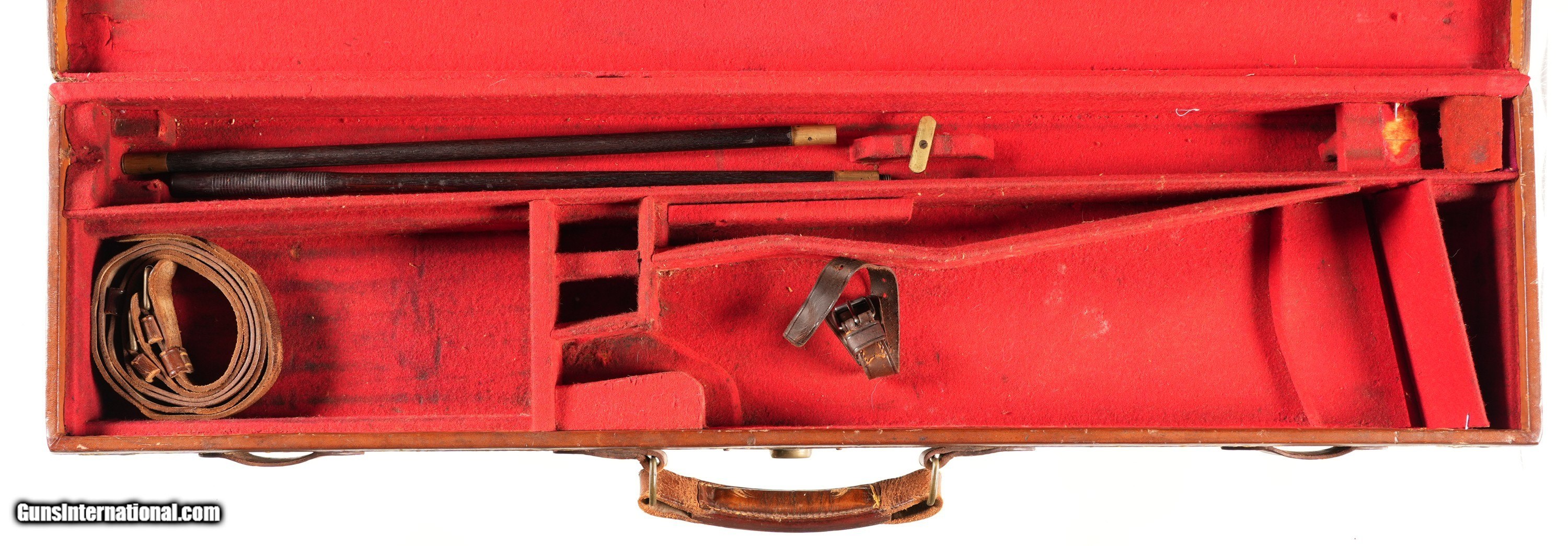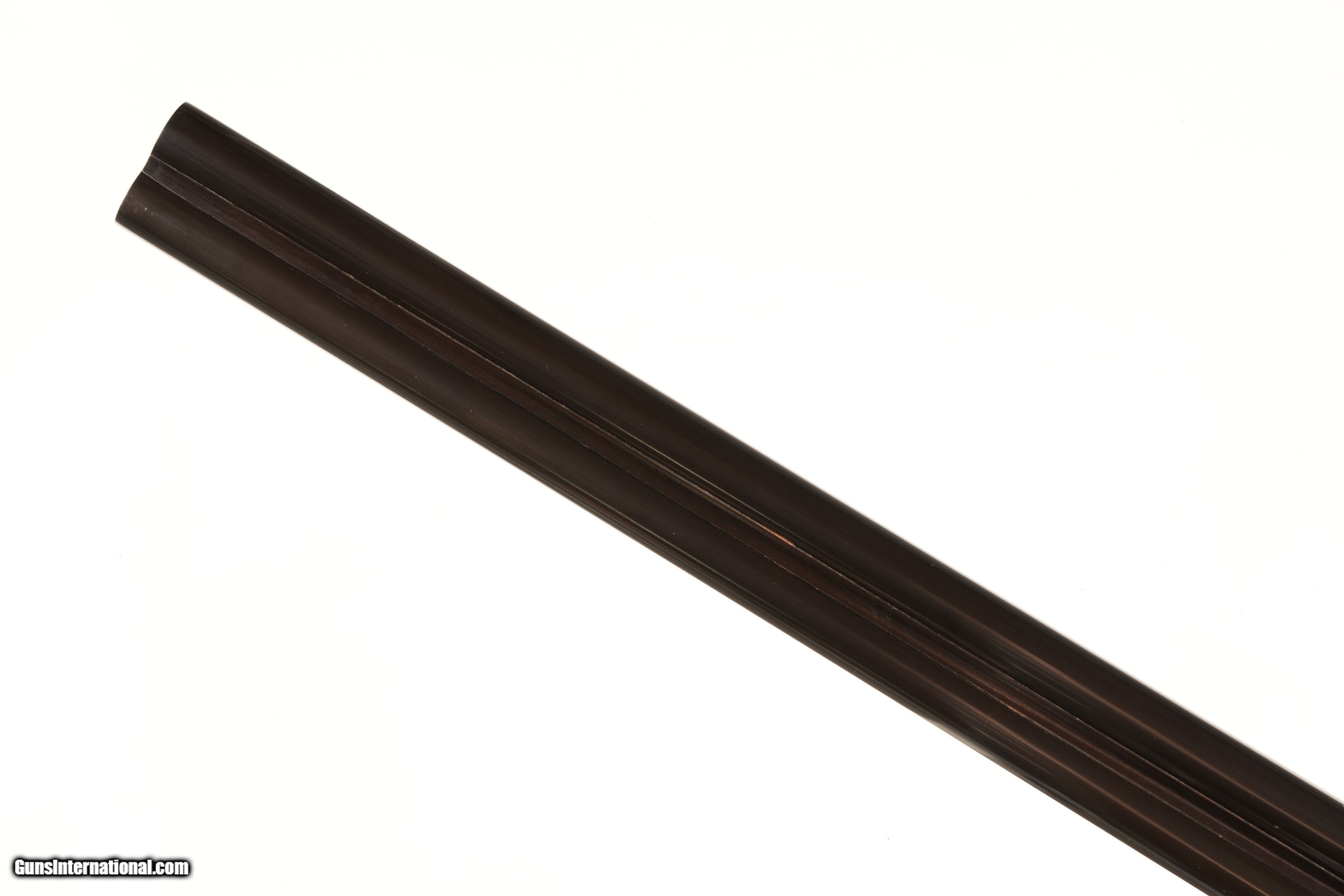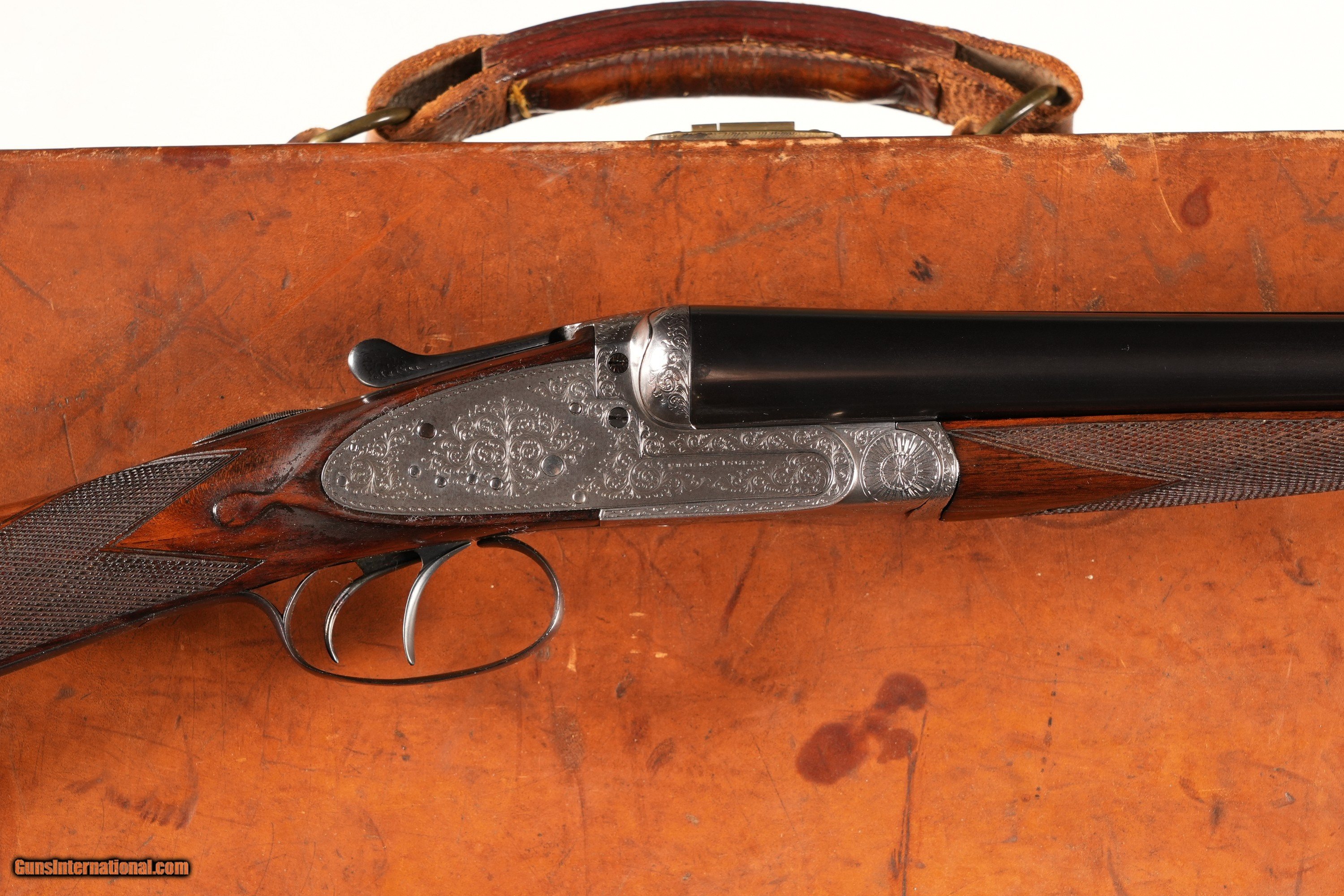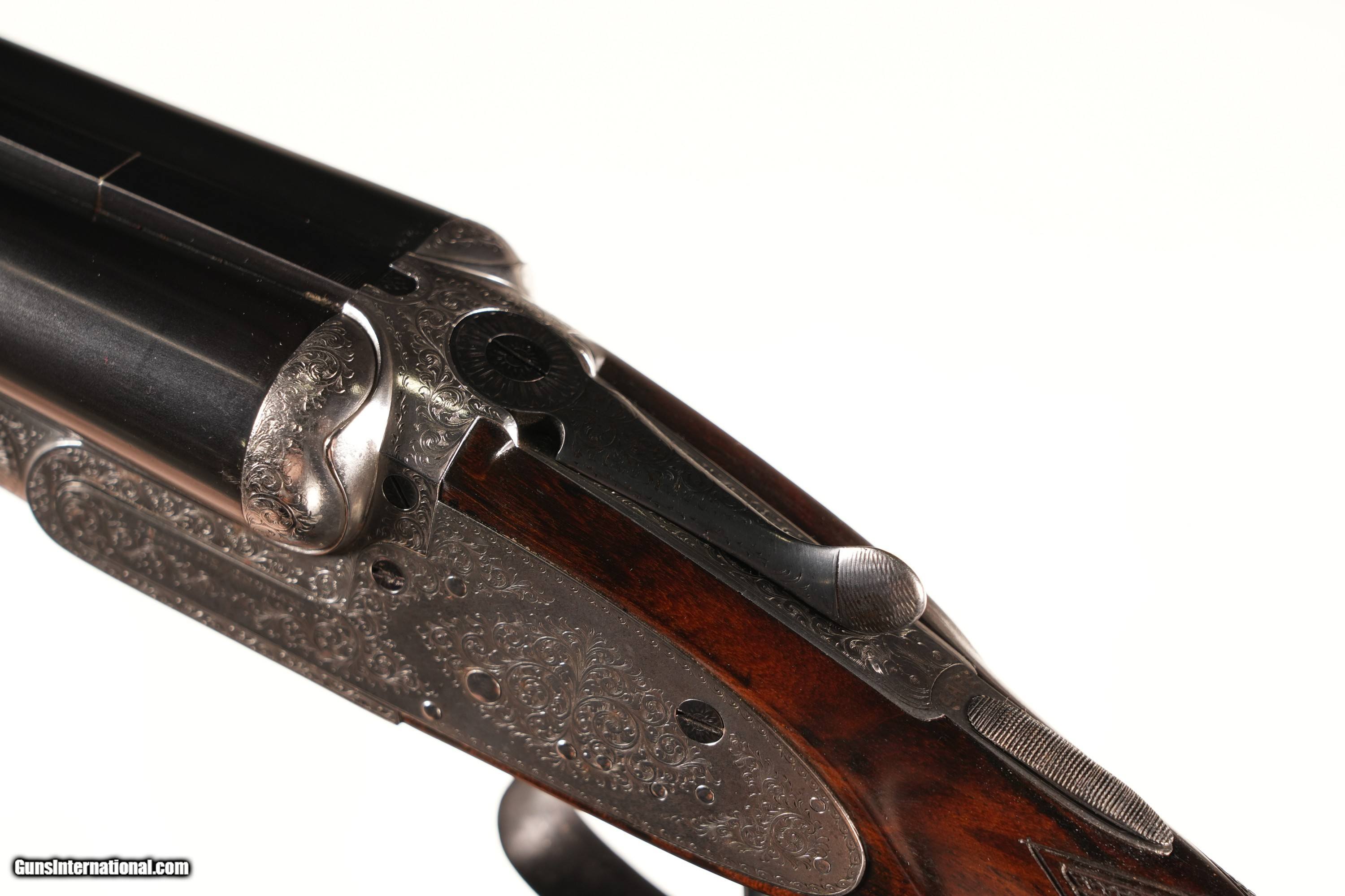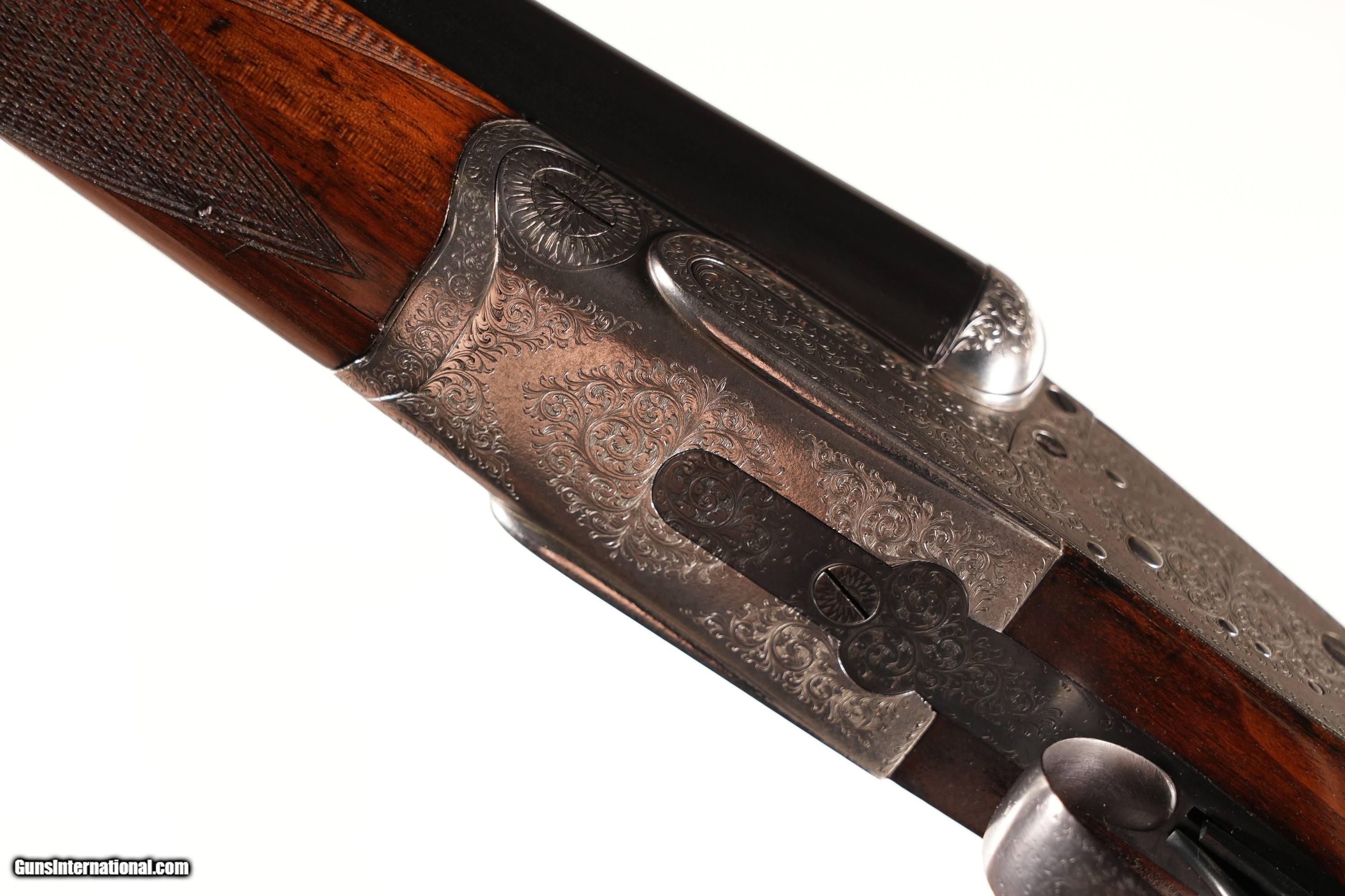 Description: Charles Ingram Glasgow Scotland. 9 pin side lock with gold lined cocking indicators; Ejectors. 2 1/2" chambers proved 1 1/8 oz. Choked IC & Cyl, Double trigger. 14 7/8" LOP over 1" pad. 1 5/8" DAC 2 1/4" DAH . Housed in leather trunk pattern case. Condition, Very good as refinished with good checkering. Engraving and legends are soft. LB .022 RB .024, Barrel retain 99% blue finish with brilliant bore. Locks and and receiver are bright. Stocks are very good with 2 small cracks in forearm. Mechanically fine • Free Shipping, No Credit Card Fees. • Lay-a-way available for this firearm. • 1/3 Down, a 1/3 in 30 Days 1/3 in 60 Days. SOLD Manufacturer: Charles Ingram Model: Sidelock Serial Number: A5115 Barrel Length: 30 |
