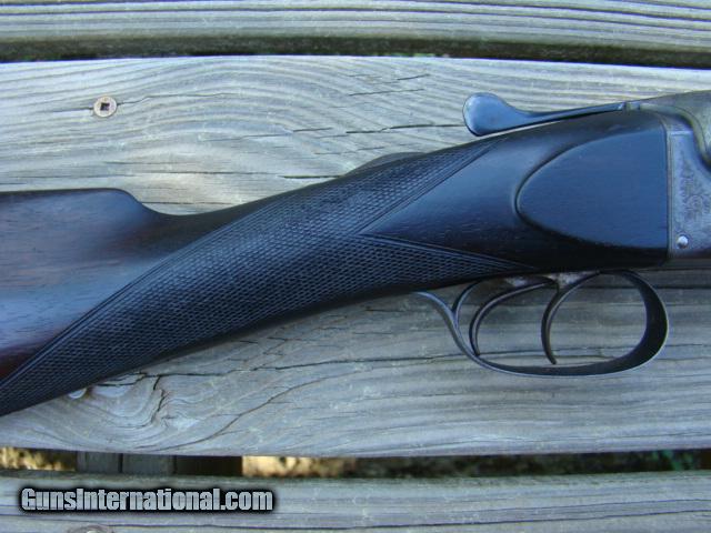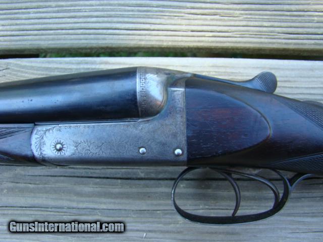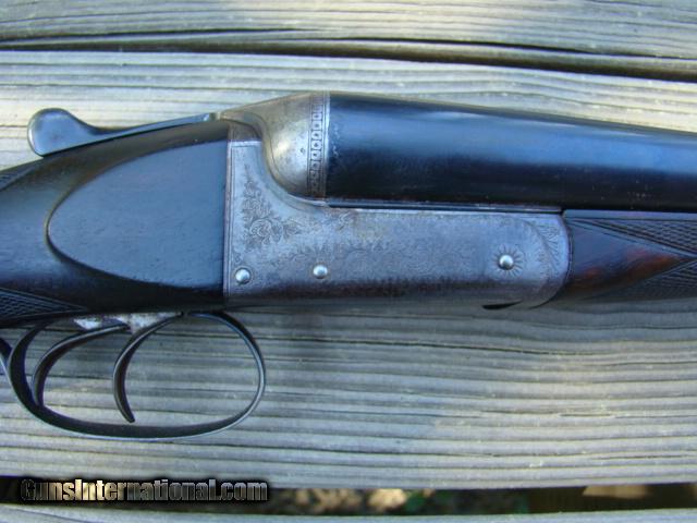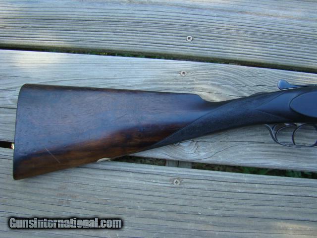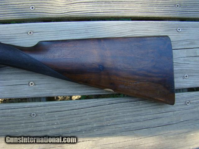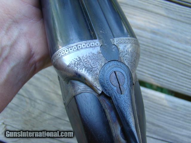 Description: Sleeved barrels with excellent bores, wonderful crisp engraving, 12ga, 2&1/2" chambers. Locks up tight, built on a Webley screw grip action. Nice condition overall, rear trigger guard screw mucked up. SOLD Curio/Relic: Yes |