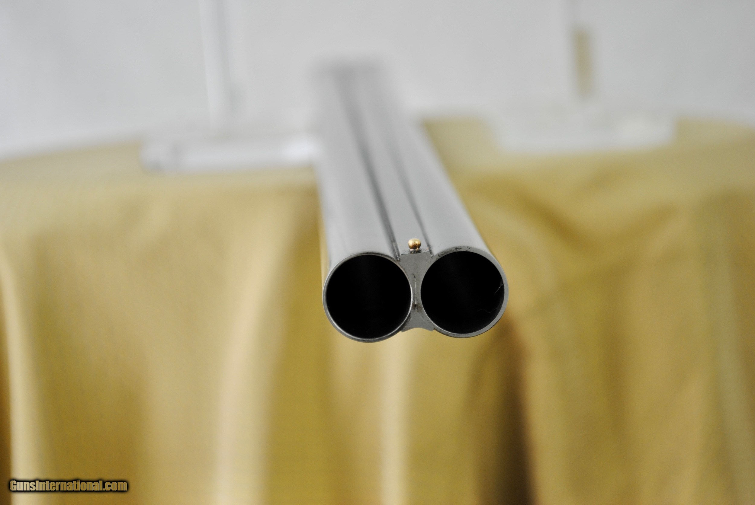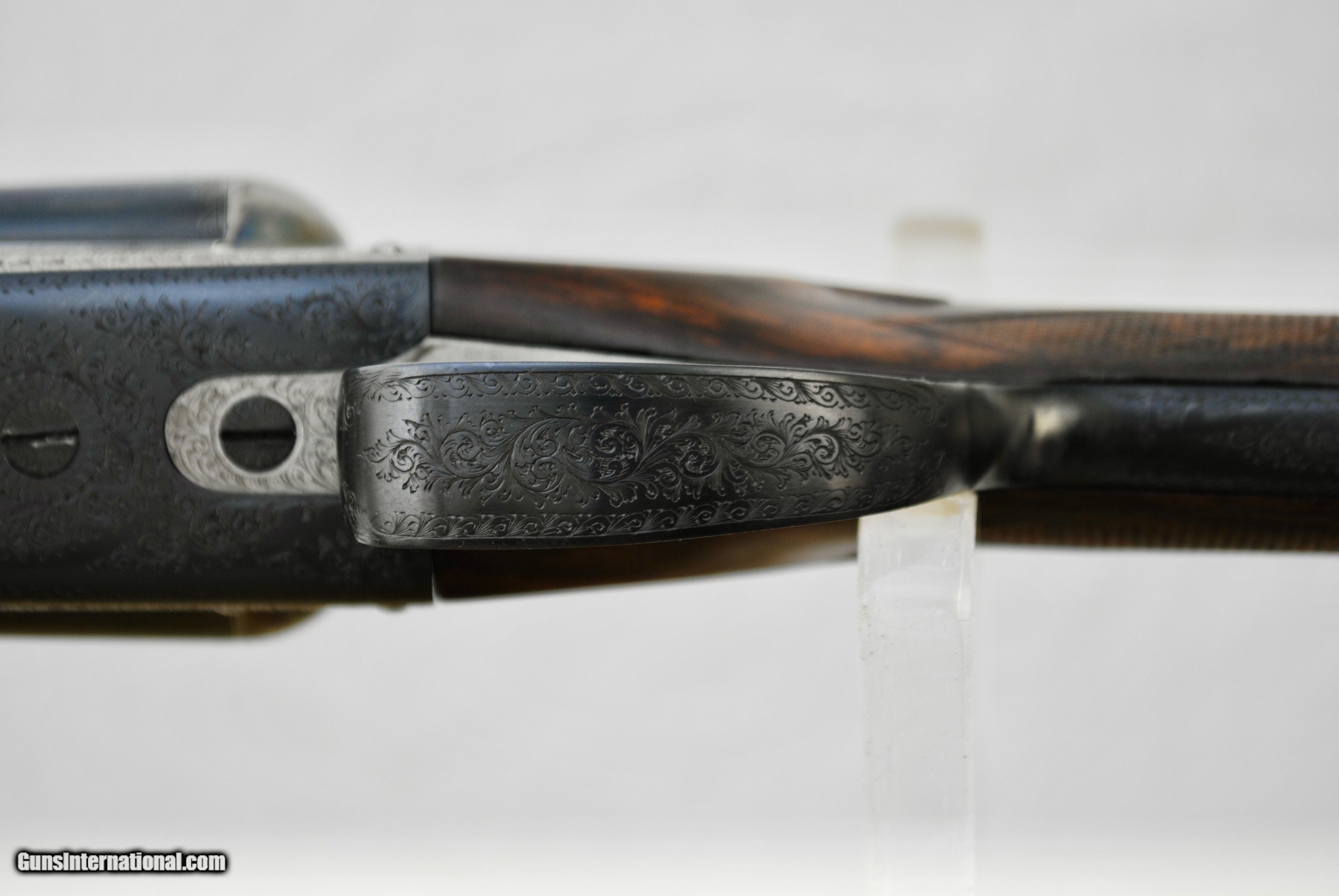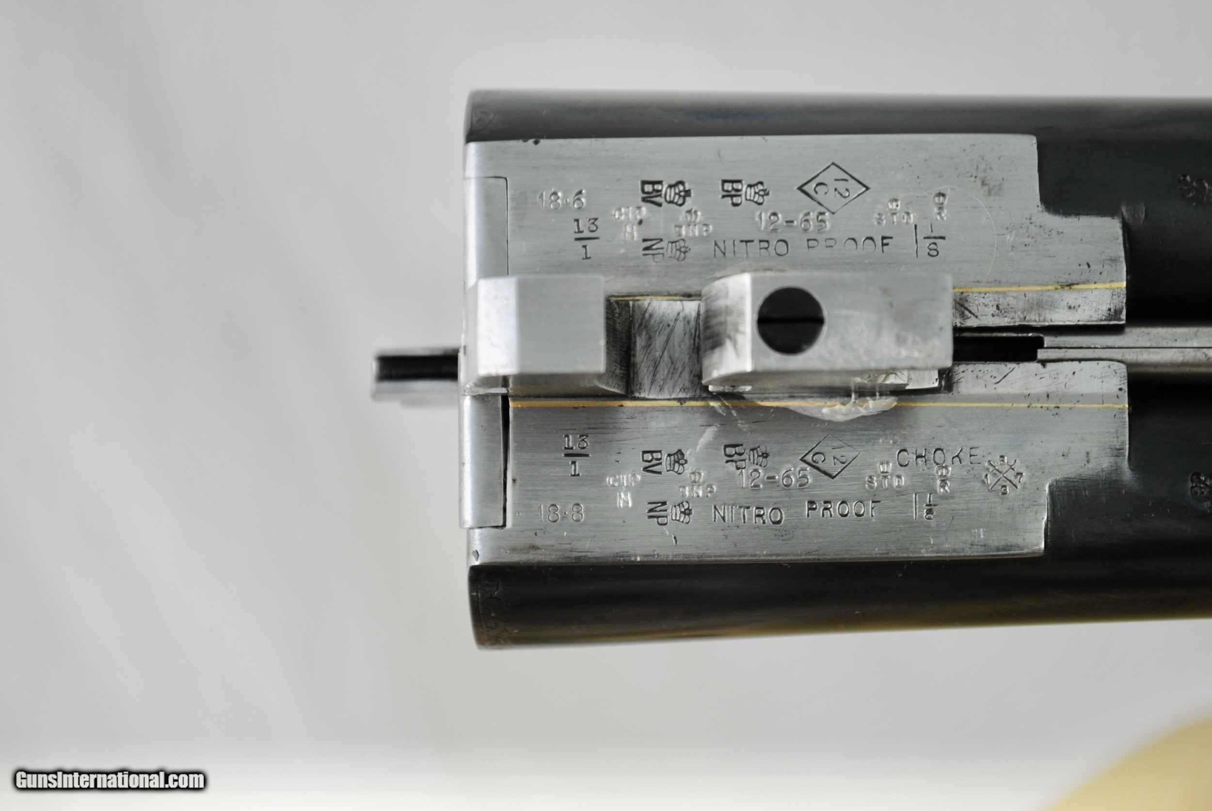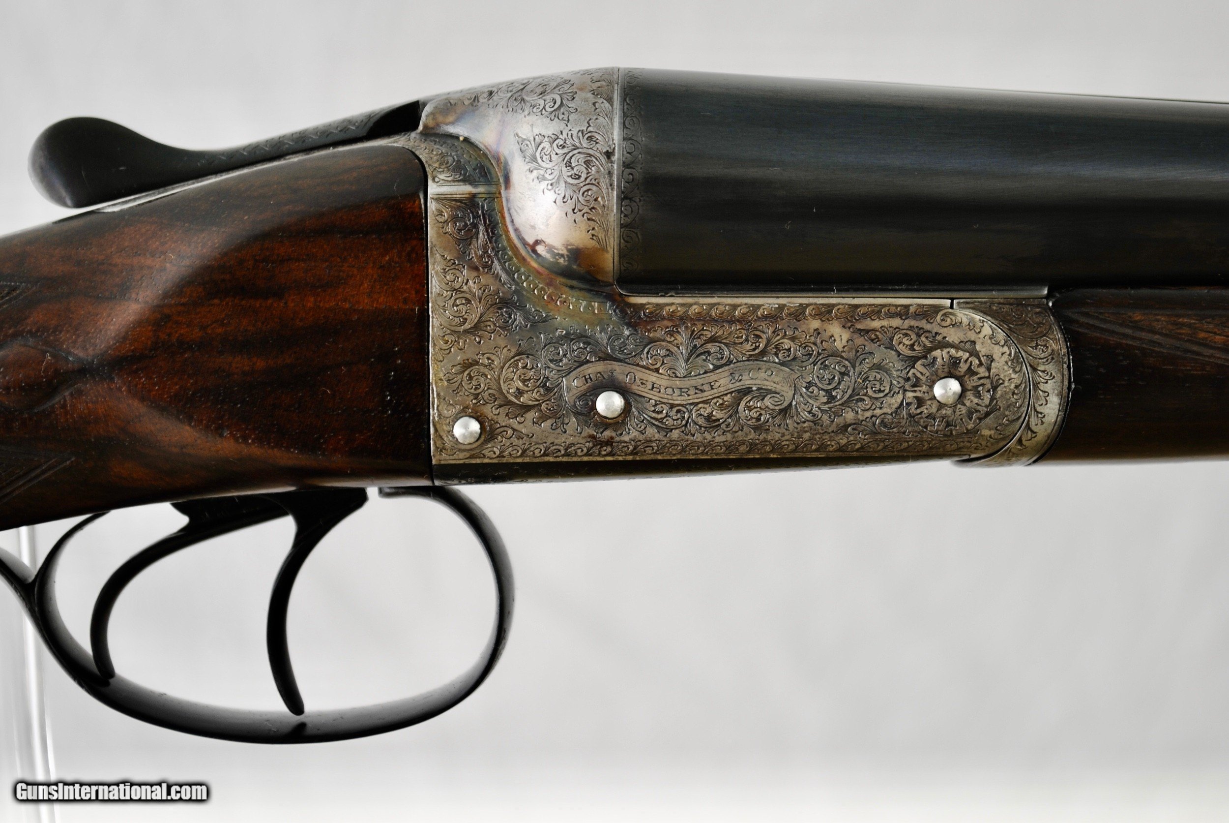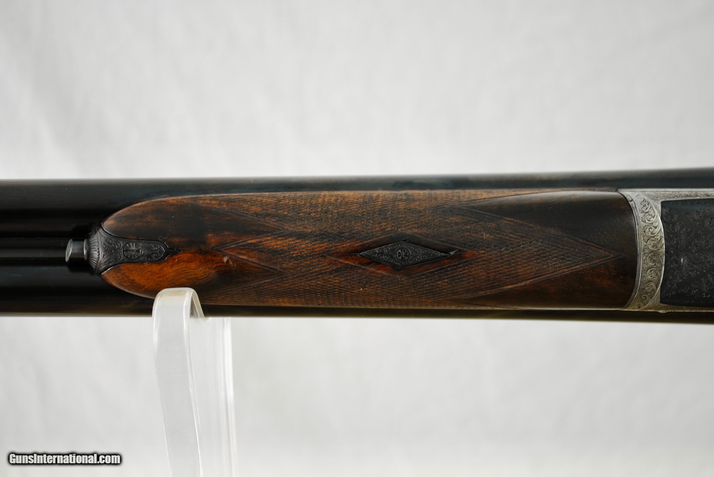 Description: Charles Osborne, best quality boxlock ejector English made in 1920. This gun features supurb Holland style acanthus scroll engraving and highly figured wood. Original case colors. Straight grip. Rib extension third fastener. Well timed ejectors. Barrels are 30" with 2 3/4" chambers. Right barrel measures .729 with 9/1000 choke (IC) while left barrel is .736 with 20/1000 choke (Mod). Gun is tight on face, recently rejointed. No cracks to wood. No loose ribs. Manual safety. Auto safety mechanism is included if you want to install it. Weight of gun is 6 LBS 8 OZ. Horn butt plate. Vacant stock oval. LOP - 14 3/8". Drop at Comb - 1 1/2". Drop at Heel - 2 1/4". C&R OK. Shipping is $50. SOLD Curio/Relic: Yes Shotgun Gauge: 12 Gauge |