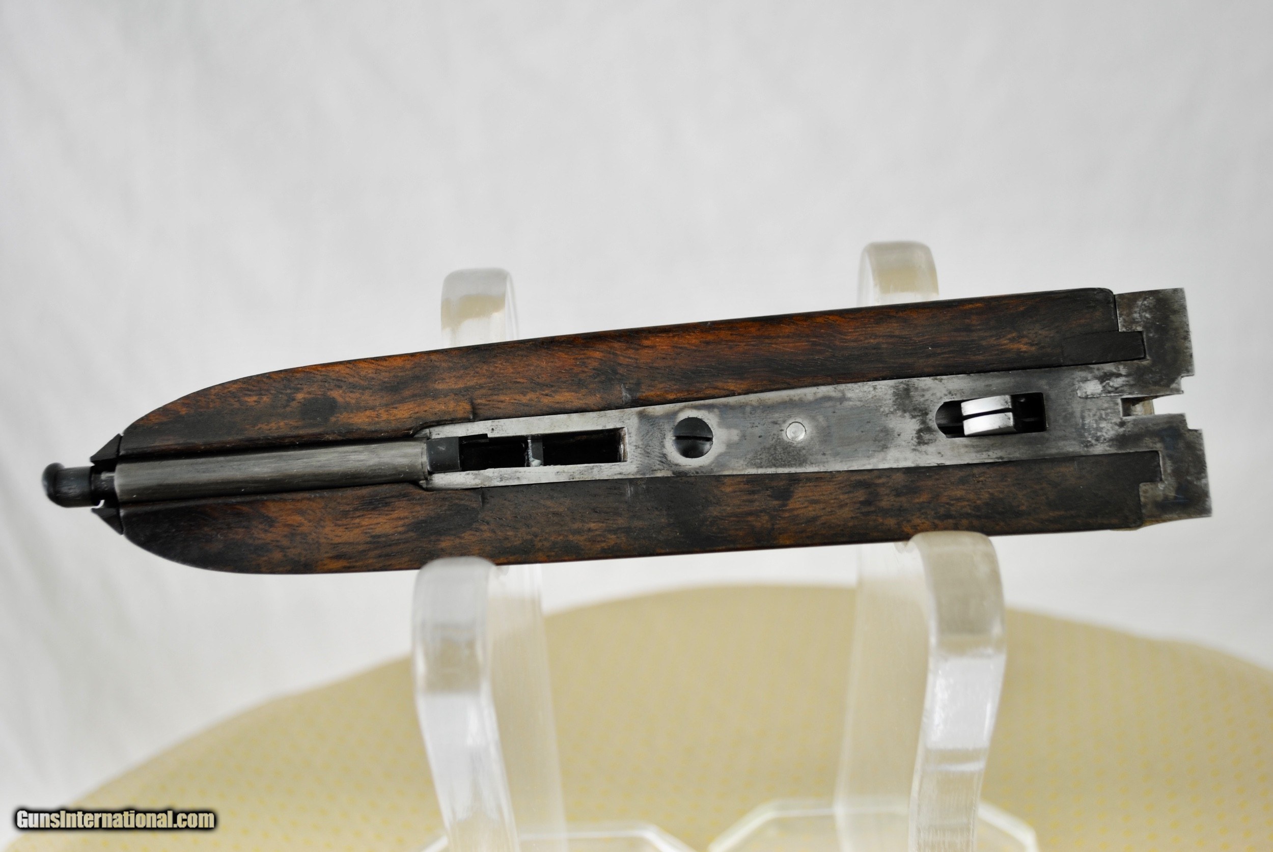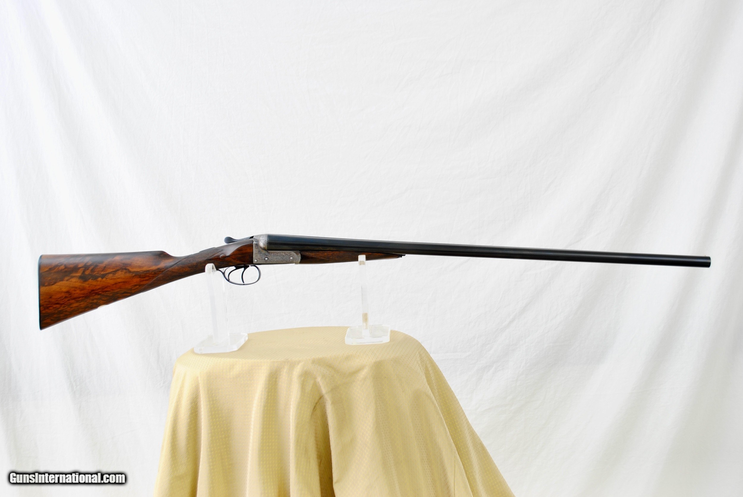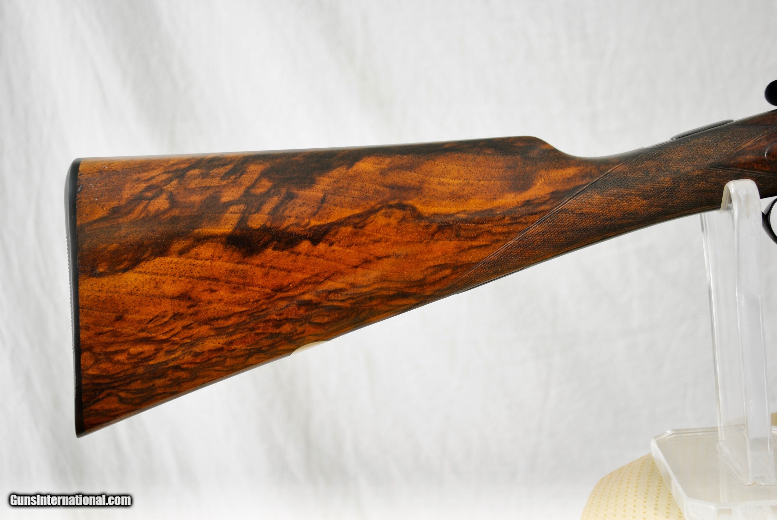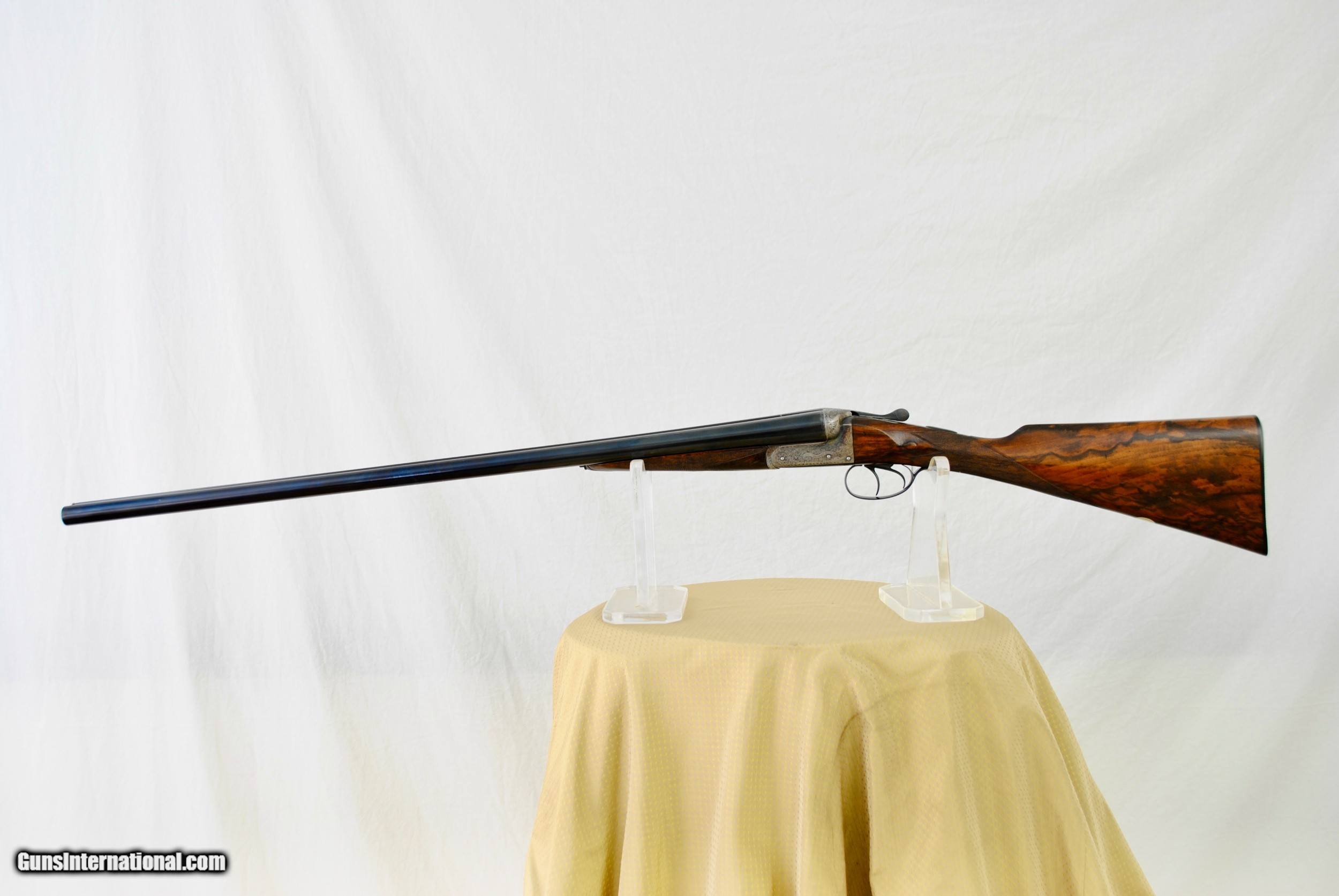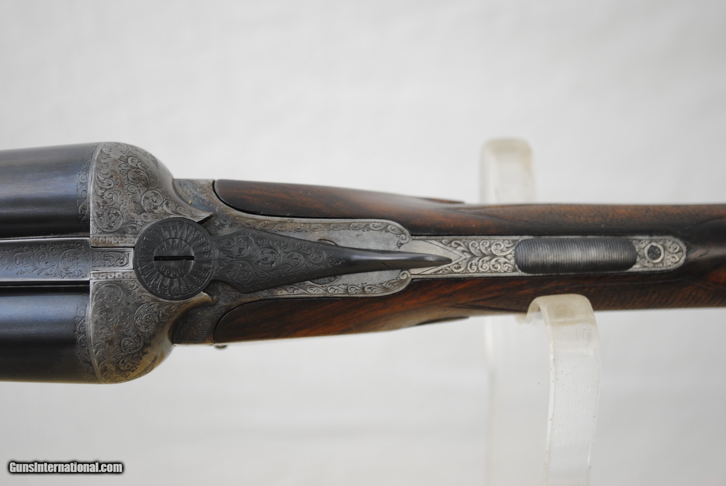 Description: Charles Osborne, best quality boxlock ejector English made in 1920. This gun features supurb Holland style acanthus scroll engraving and highly figured wood. Original case colors. Straight grip. Rib extension third fastener. Well timed ejectors. Barrels are 30" with 2 3/4" chambers. Right barrel measures .729 with 9/1000 choke (IC) while left barrel is .736 with 20/1000 choke (Mod). Gun is tight on face, recently rejointed. No cracks to wood. No loose ribs. Manual safety. Auto safety mechanism is included if you want to install it. Weight of gun is 6 LBS 8 OZ. Horn butt plate. Vacant stock oval. LOP - 14 3/8". Drop at Comb - 1 1/2". Drop at Heel - 2 1/4". C&R OK. Shipping is $50. SOLD Curio/Relic: Yes Shotgun Gauge: 12 Gauge |