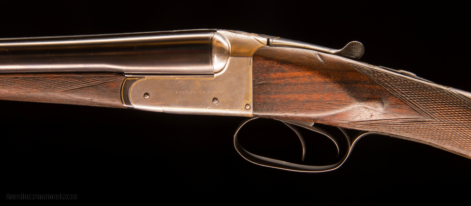 Description: Newly rejoined ! Gold lines but no central engraving I find extremely elegant on this gun. SOLD Manufacturer: Charles Smith & Sons. Birmingham, 20 ga. Serial Number: 1826 Ejectors: No Barrels: 28 Barrel Type: Steel Action: Boxlock Gauge Info: 20 gauge Stock Comb: 1 9/16 Stock Heel: 2 7/16 Stock Cast: 1/8 LOP: 13 7/8 Weight: 5 lbs. 14 oz. Choke Left: .036 extra full Choke Right: Cyl. Proof:Nitro: 2 1/2" BNP 3 tons Minimum Wall Thickness Left: .035 Minimum Wall Thickness Right: .038 |