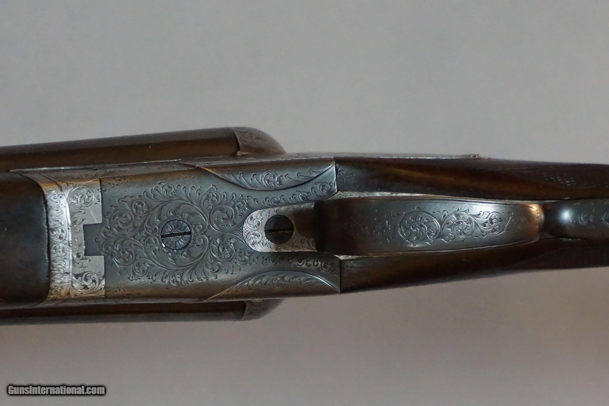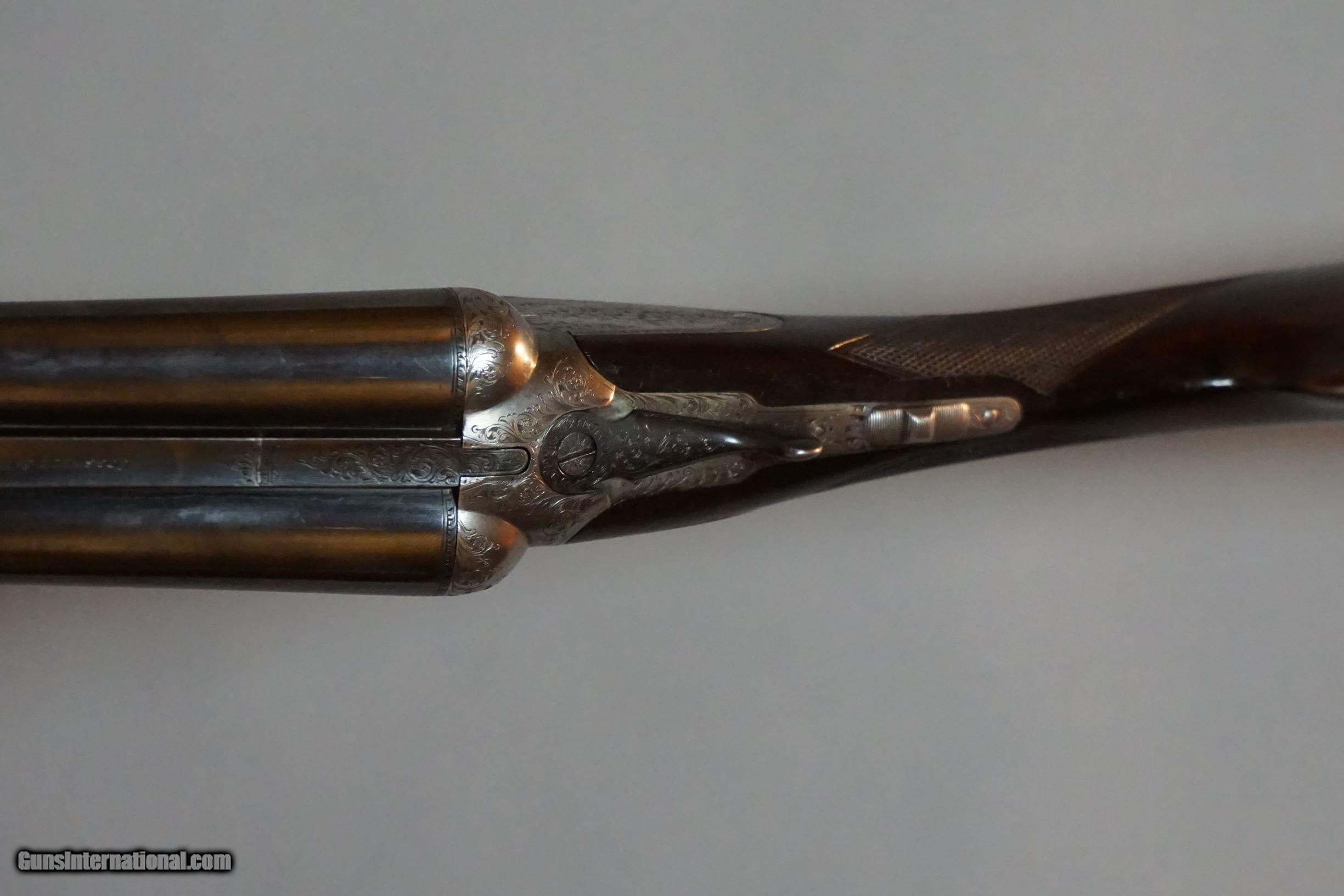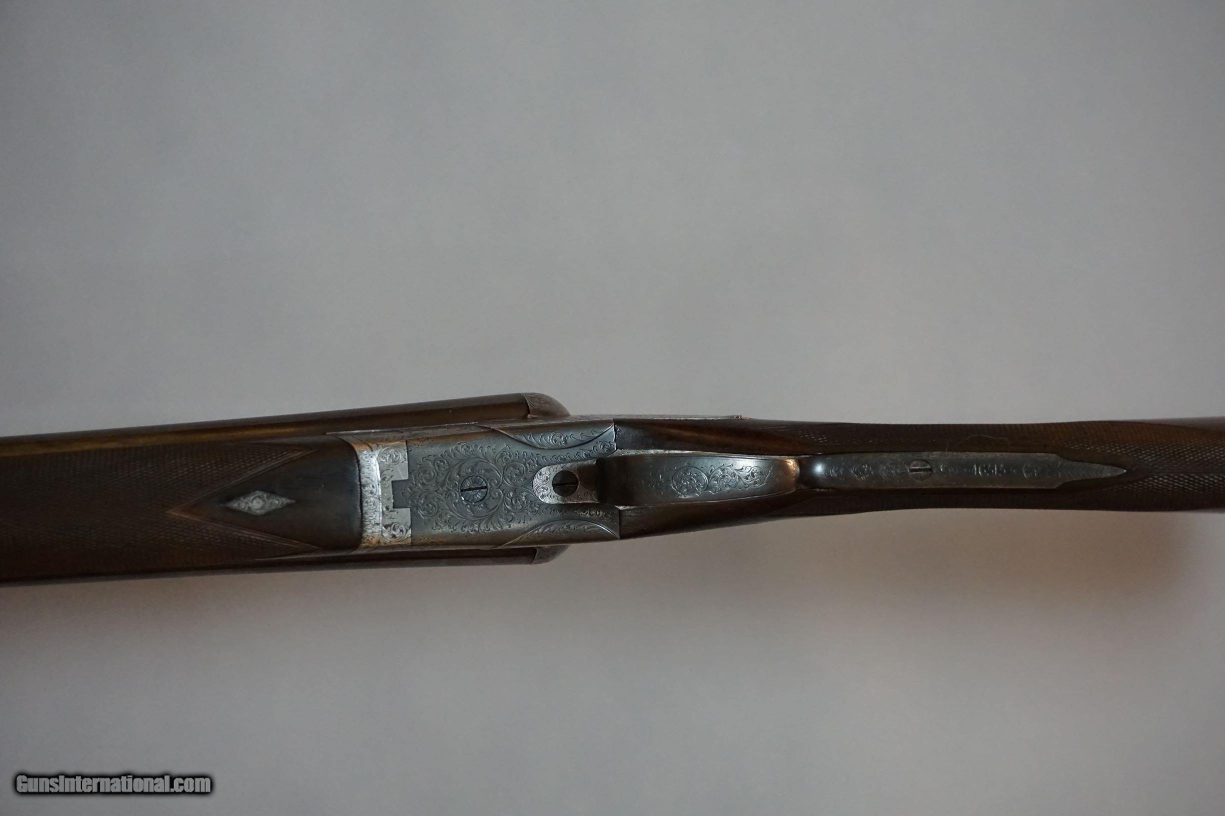Description: This Cogswell and Harrison patent self opener actioned shotgun was completed on the 22nd of October 1913 and remains ready for the field. Nice stock dimensions of 14&13/16" x 1&5/8" x 2&1/4" over a Slivers pad. Barrels tight to the action and measure .731" and .733", choked .006" and .018". Comes with a factory letter. SOLD |